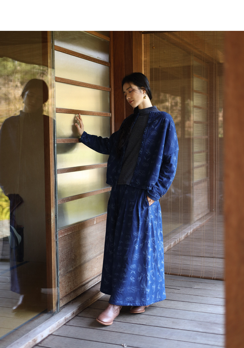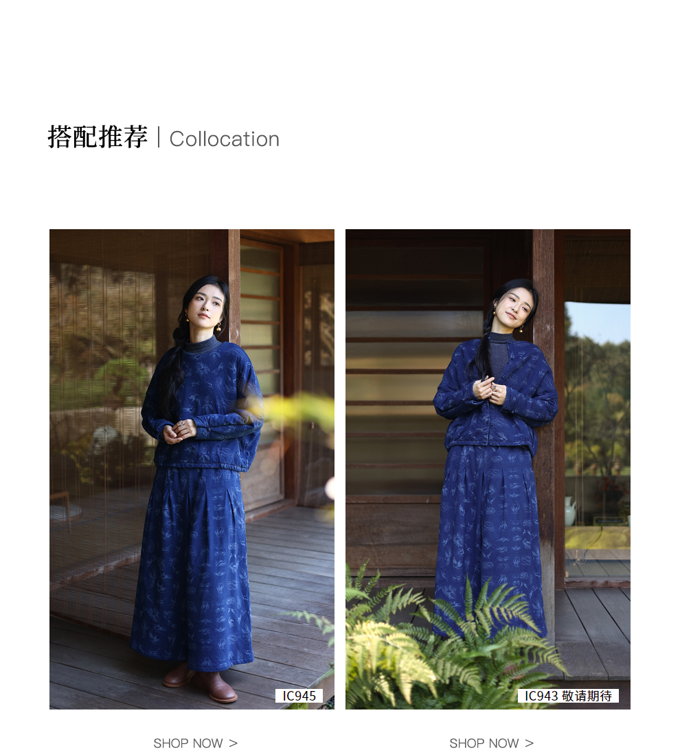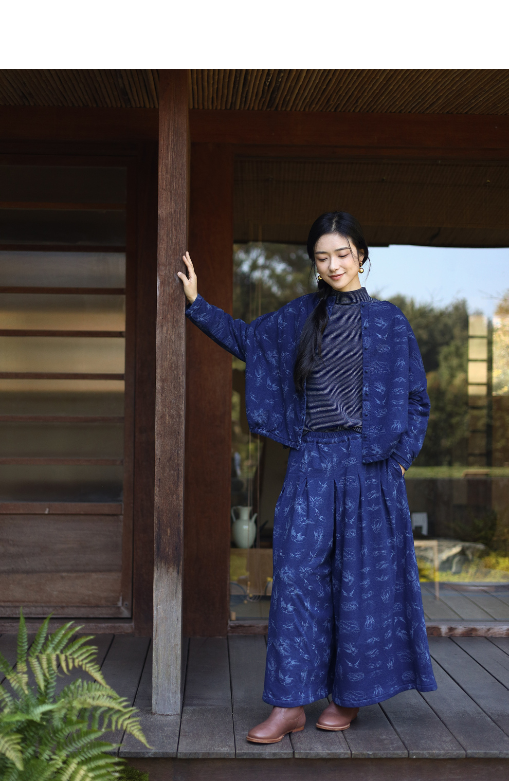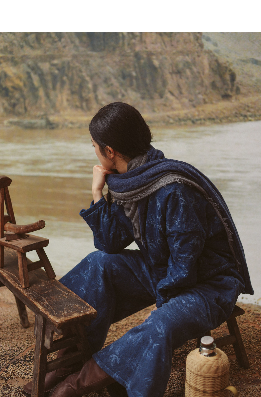 绽放999朵/【IP黄河记忆系列】牛仔针织印花松紧腰绗棉阔腿裤裙子