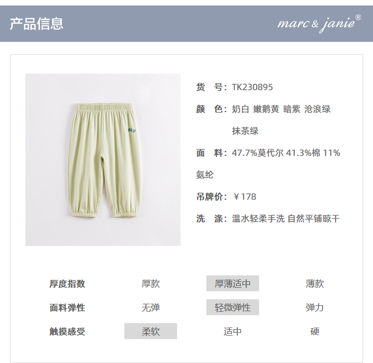 马克珍妮夏装新款 男女童莫代尔棉束脚裤 儿童防蚊裤230895