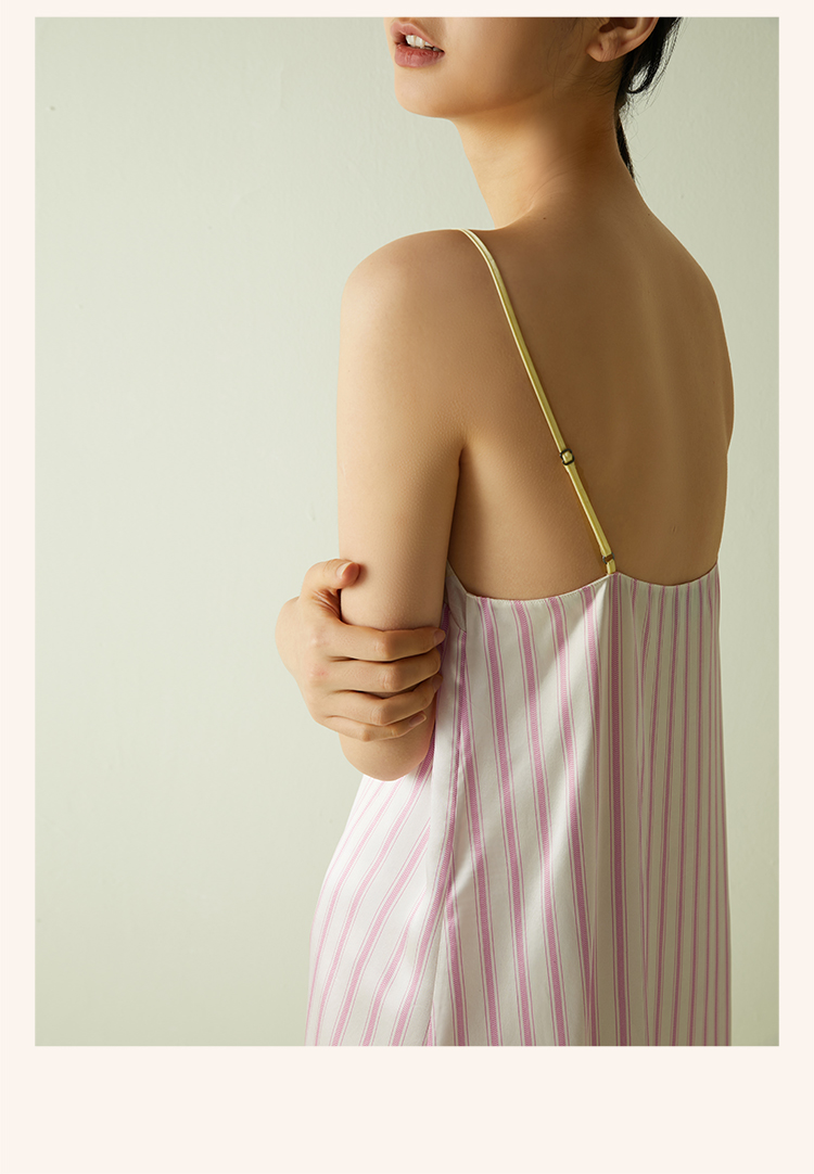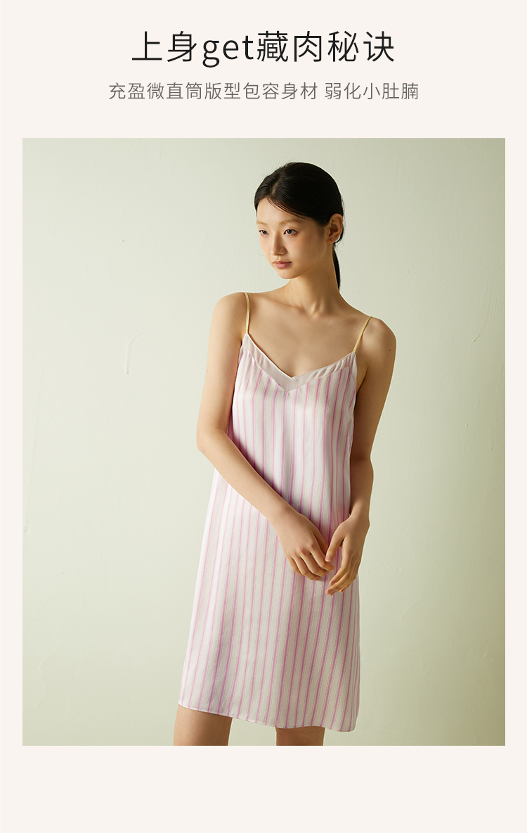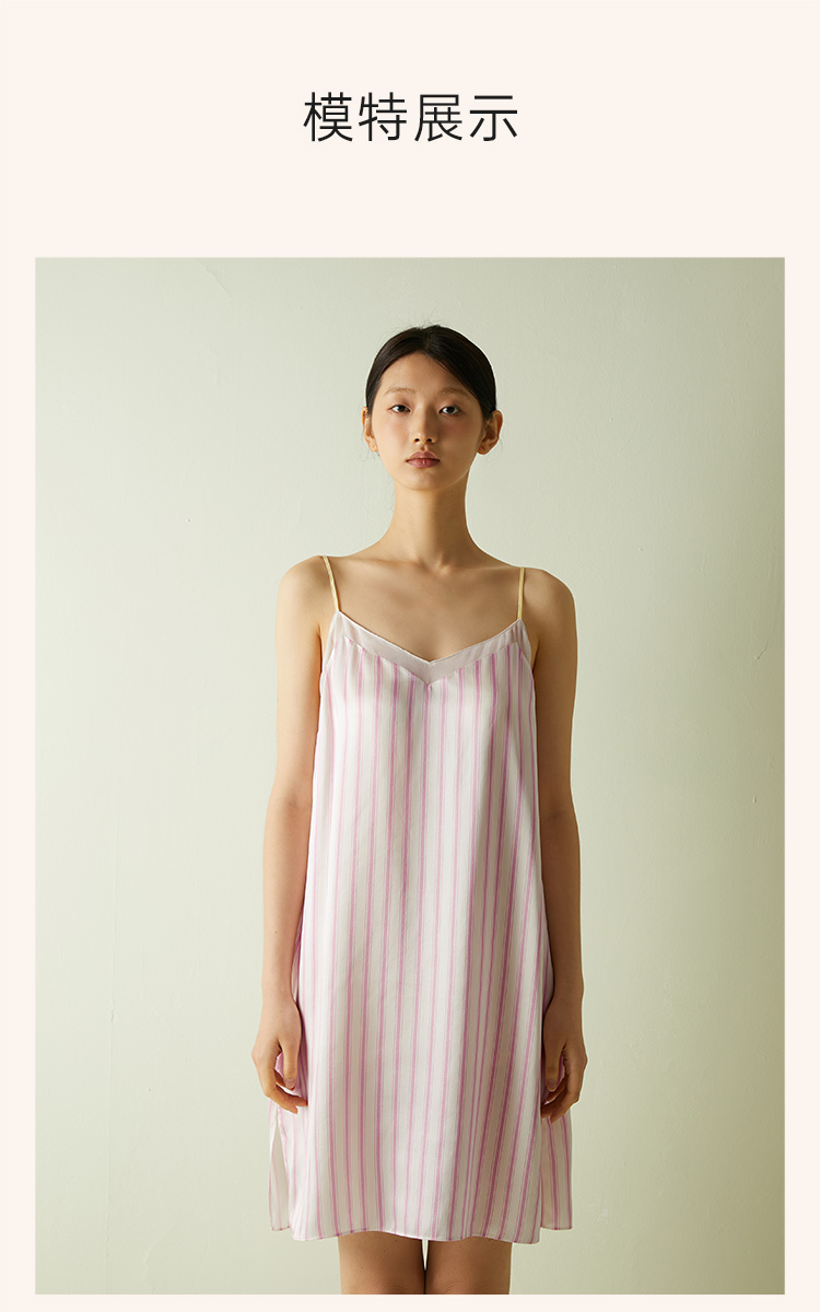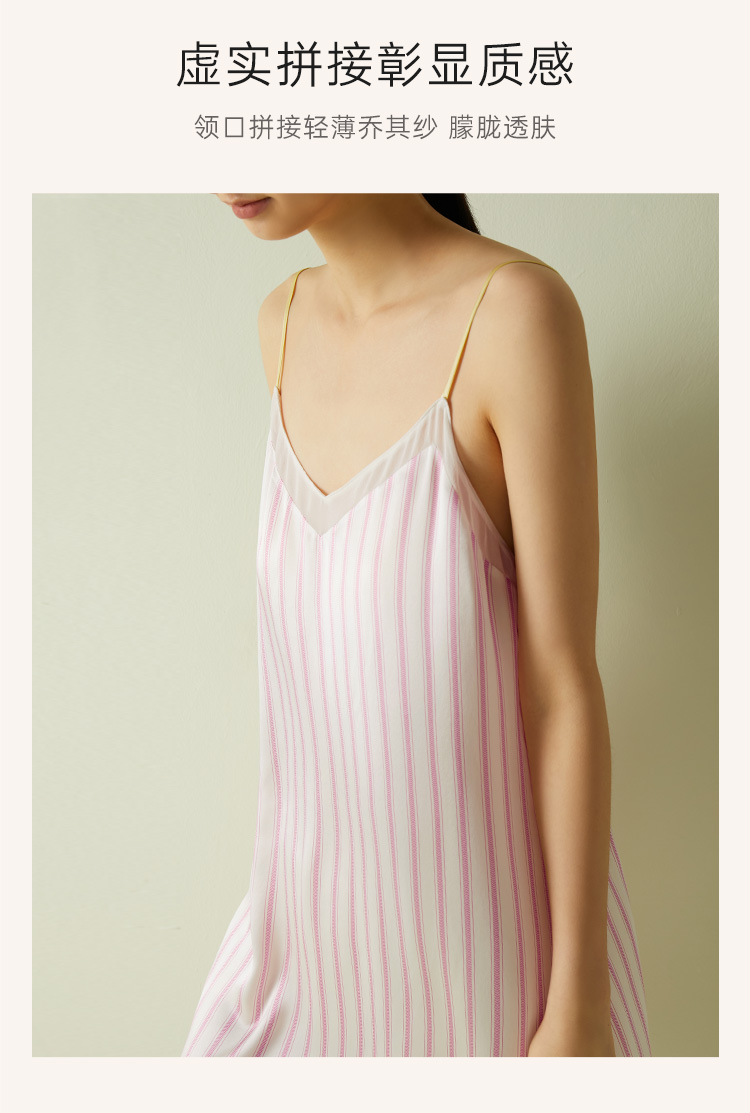 桑罗真丝吊带裙粉色条纹多巴胺连衣裙2024年夏季新款高级感睡裙