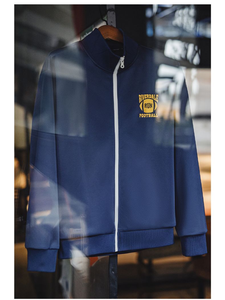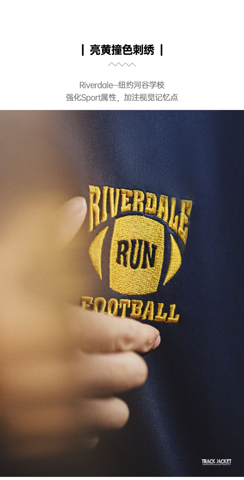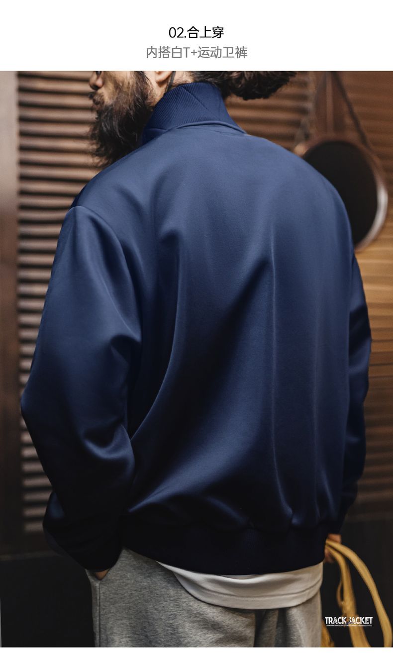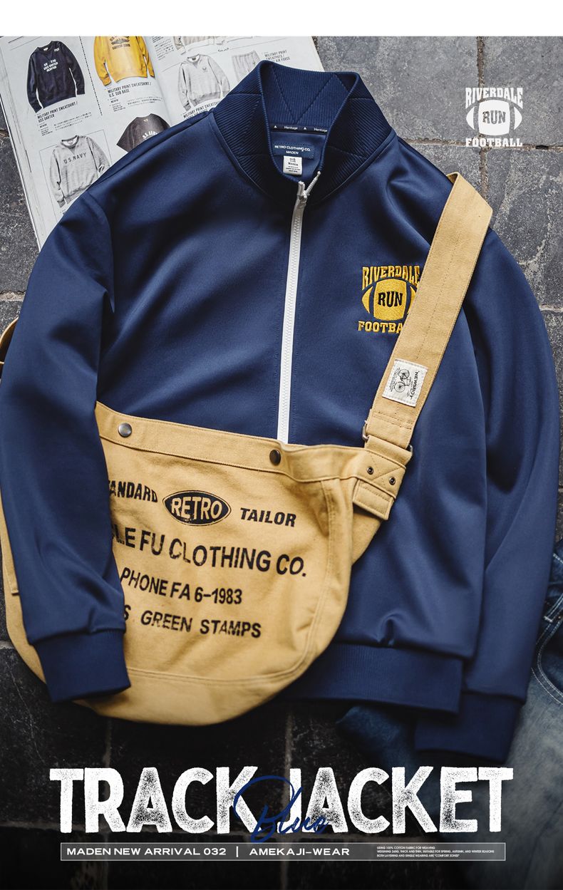 工装优选 美式休闲学院风撞色刺绣夹克空气层立领宽松开衫卫衣男春