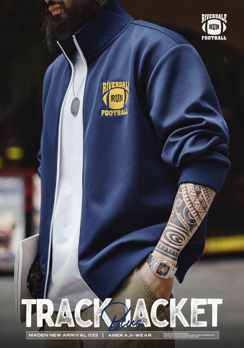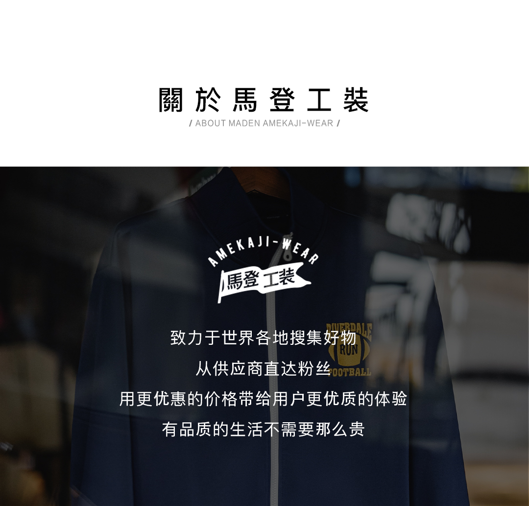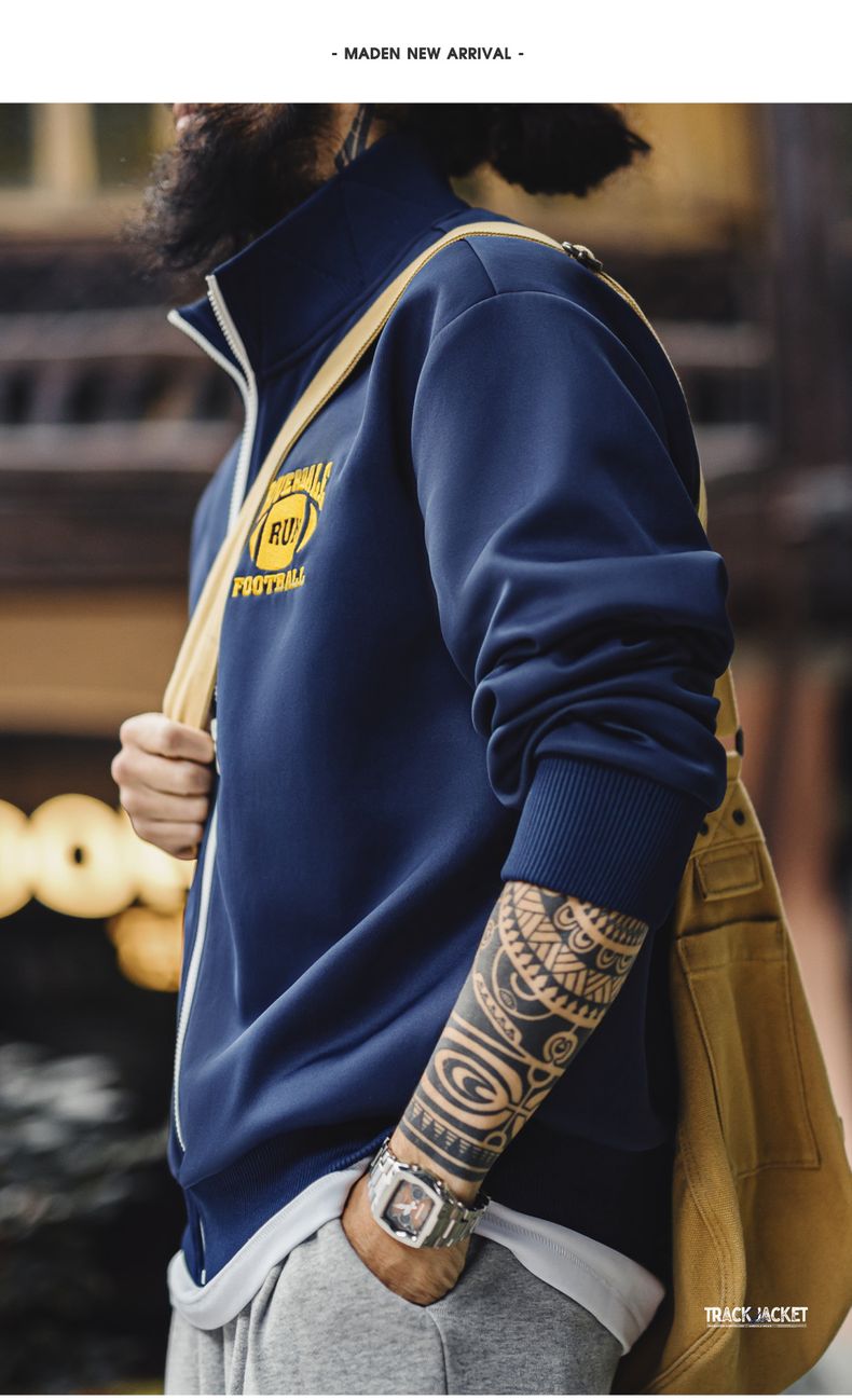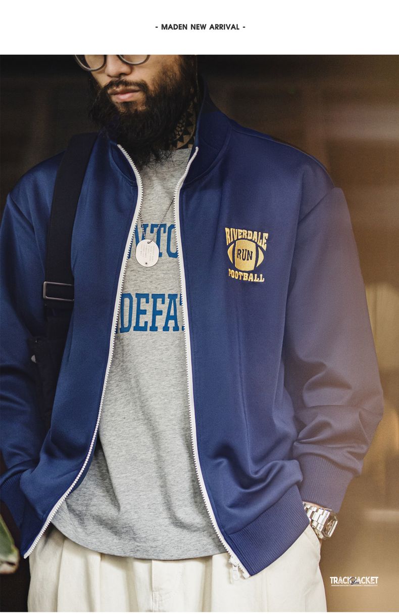 工装优选 美式休闲学院风撞色刺绣夹克空气层立领宽松开衫卫衣男春