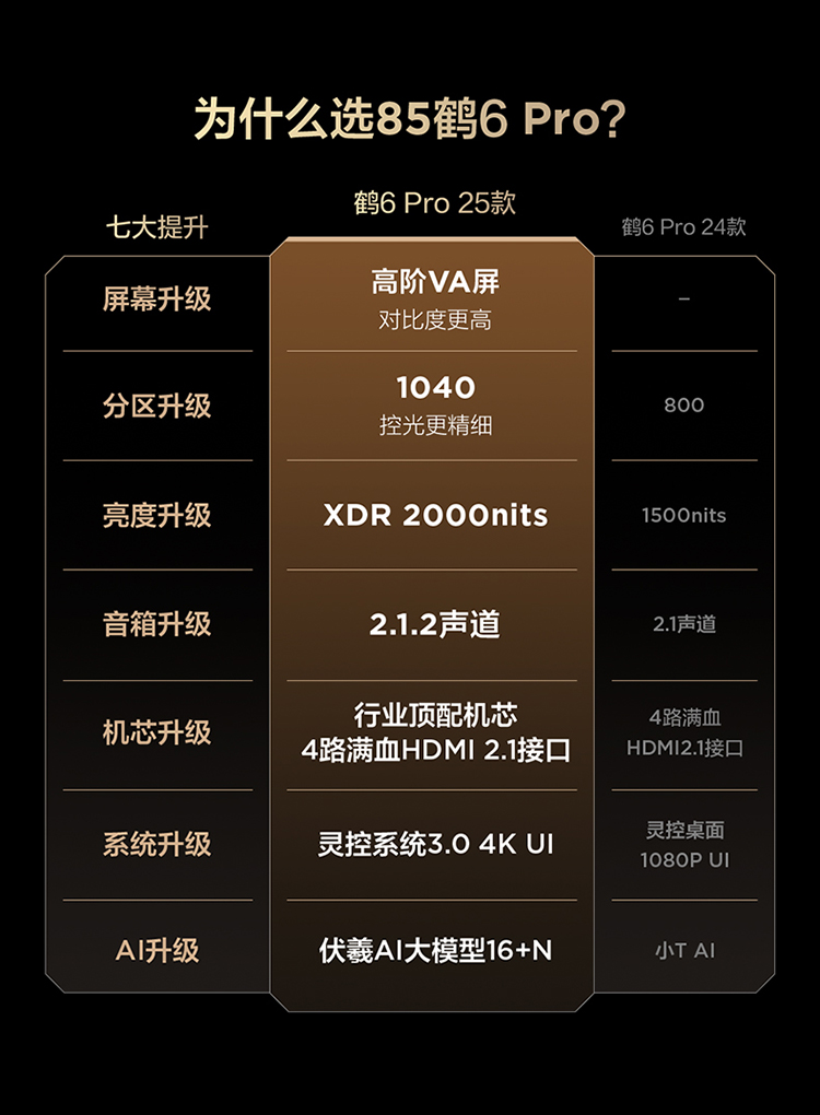 【FFALCON雷鸟】 鹤6 PRO 25款 85英寸 MiniLED满血机芯 一级能效智能平板电视机 85英寸 无开机广告 85S595C Pro