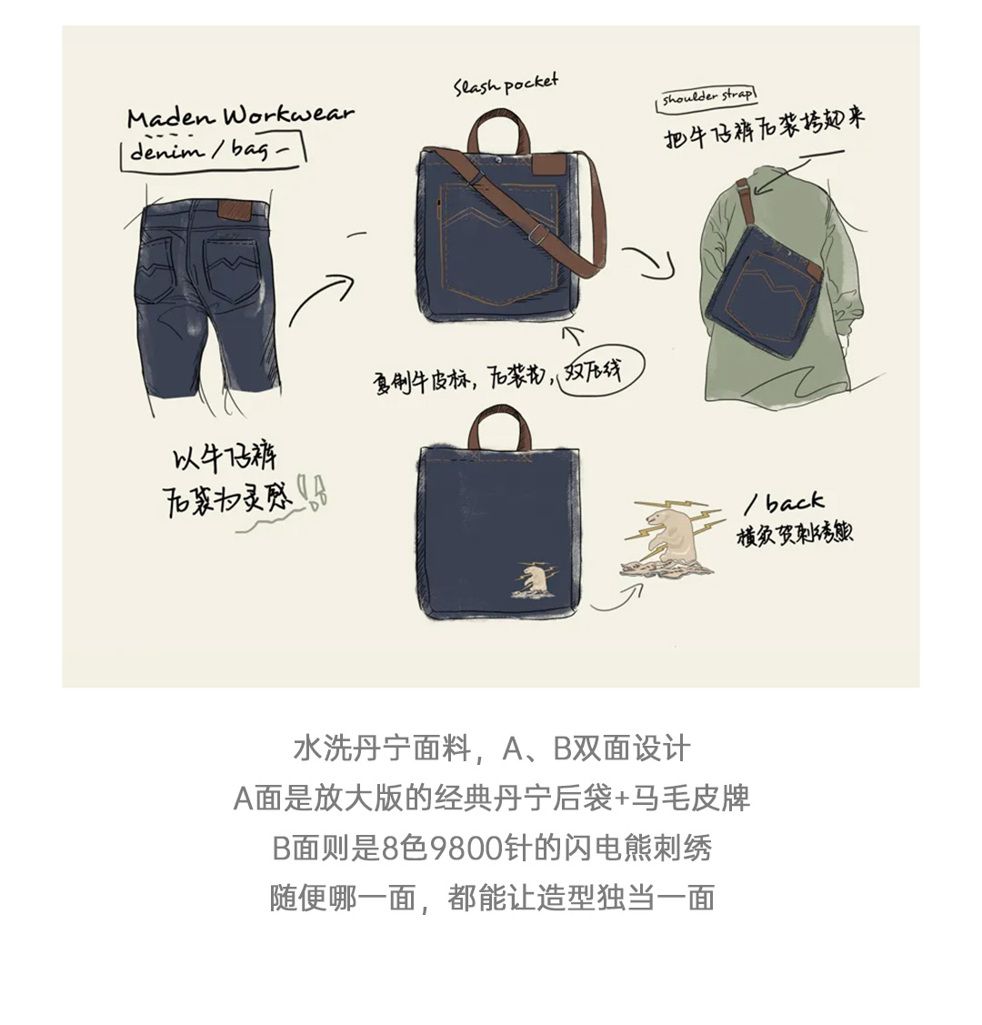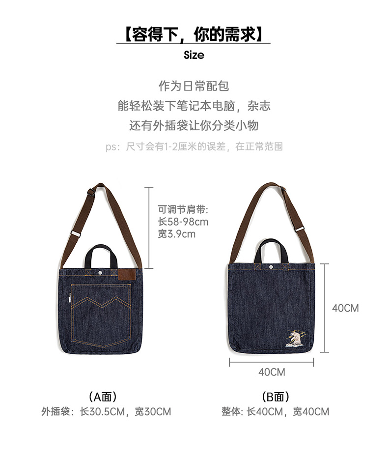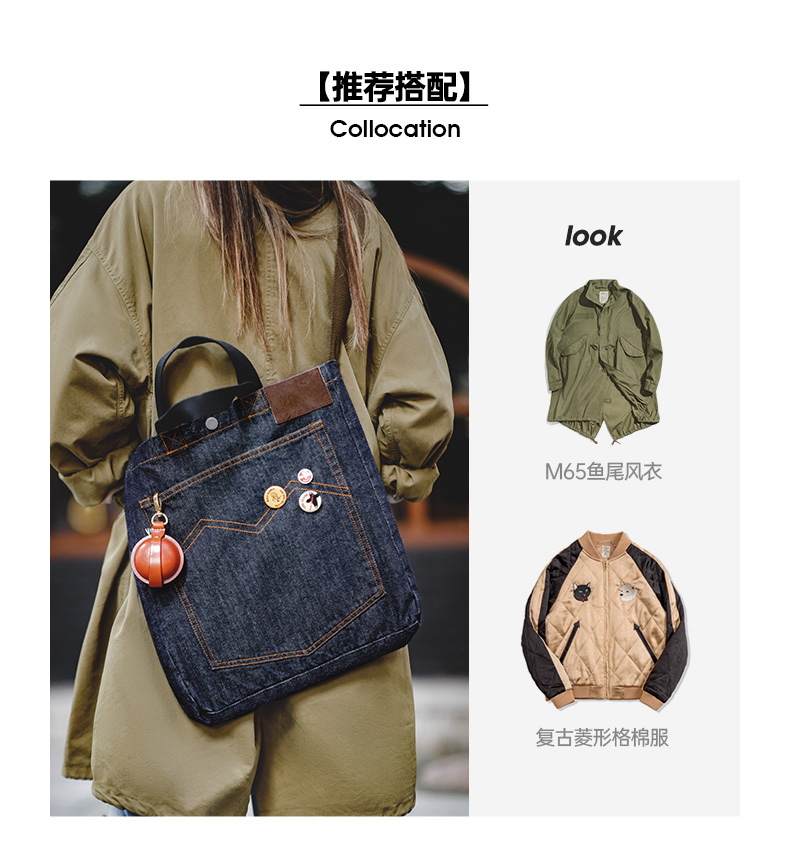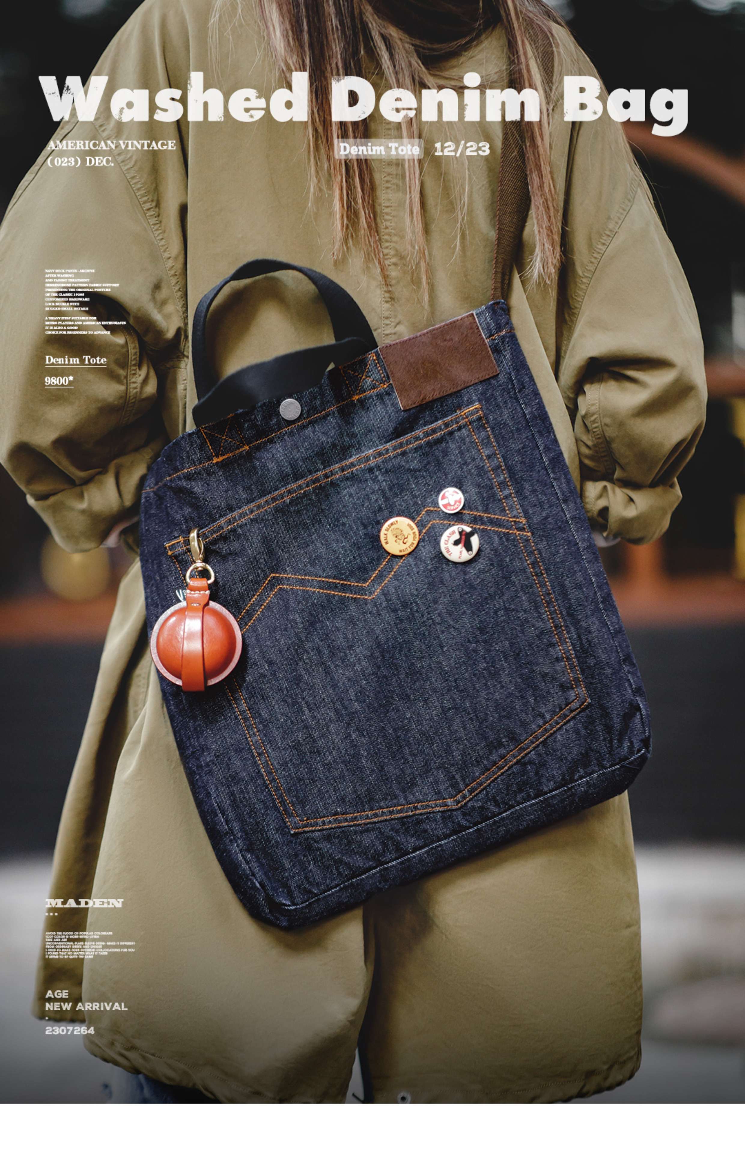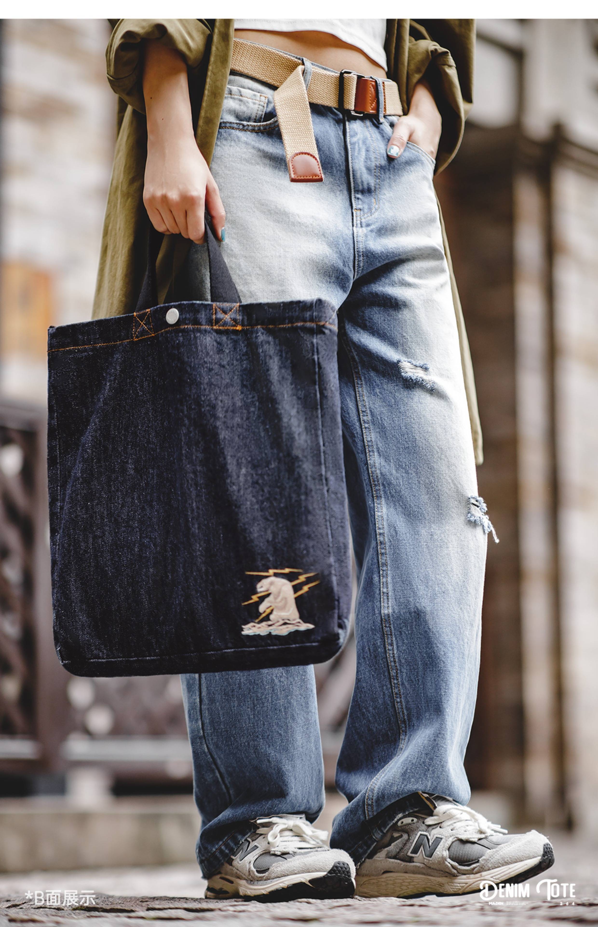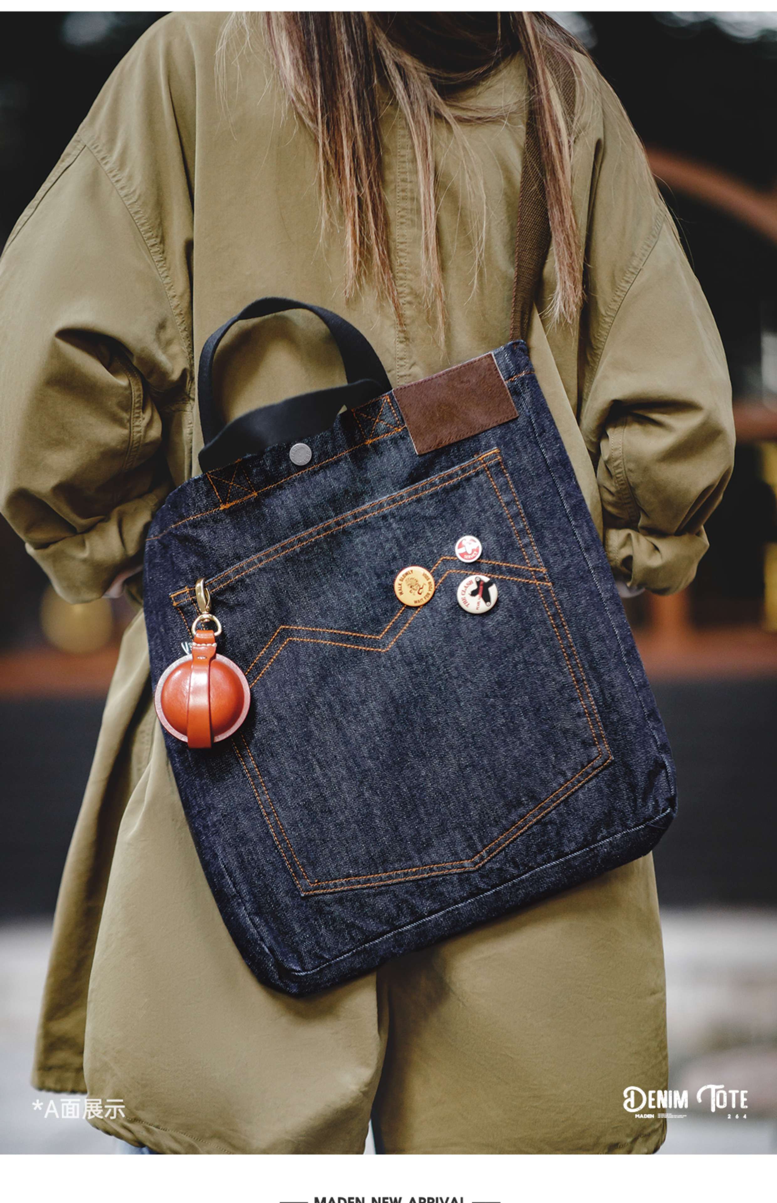 马登女装复古牛仔斜挎单肩托特包手提大容量小众设计平板包通勤包