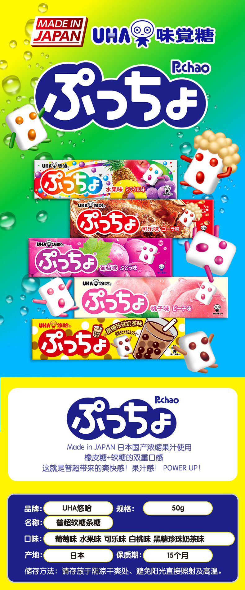 进口UHA悠哈普超黑糖珍珠奶茶味夹心软糖50g