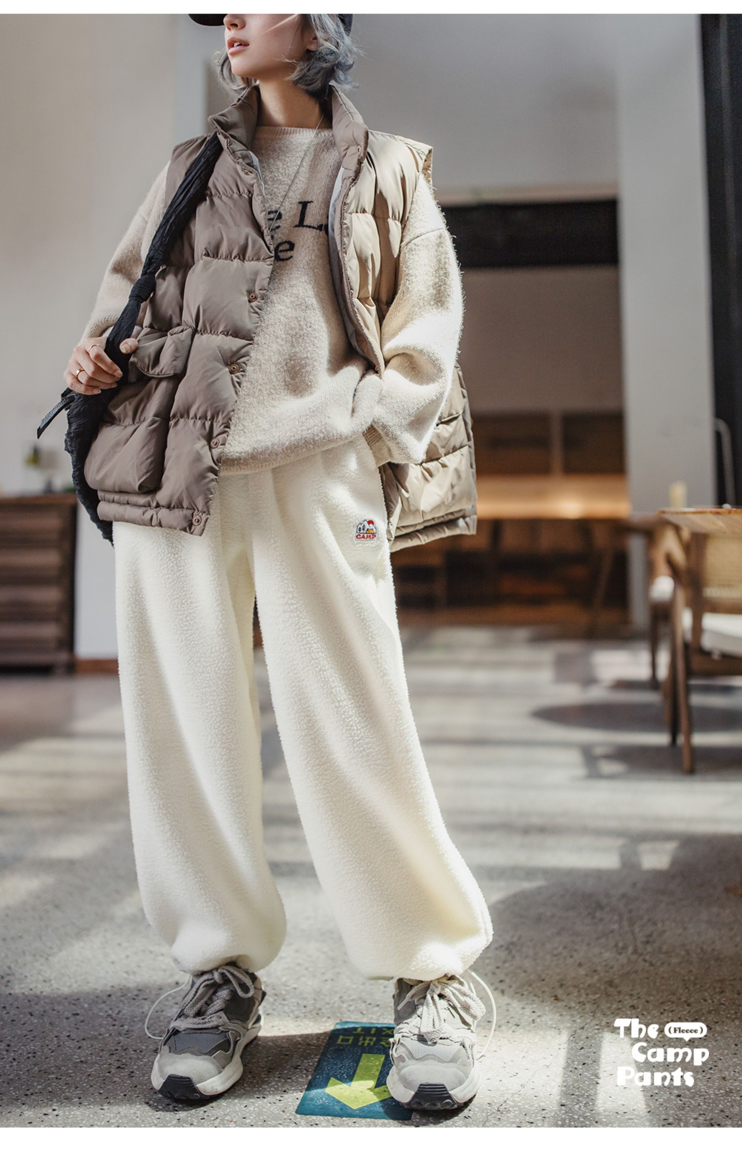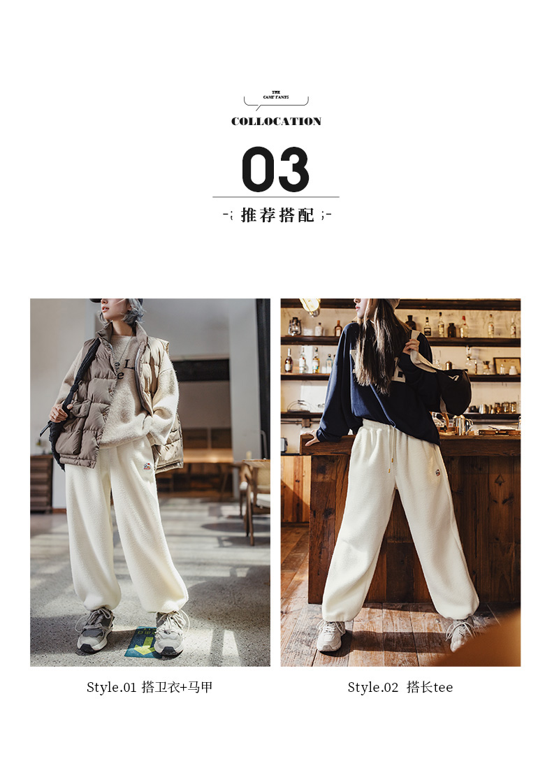 马登女装美式加绒摇粒绒休闲卫裤秋冬束脚针织保暖长裤运动直筒裤