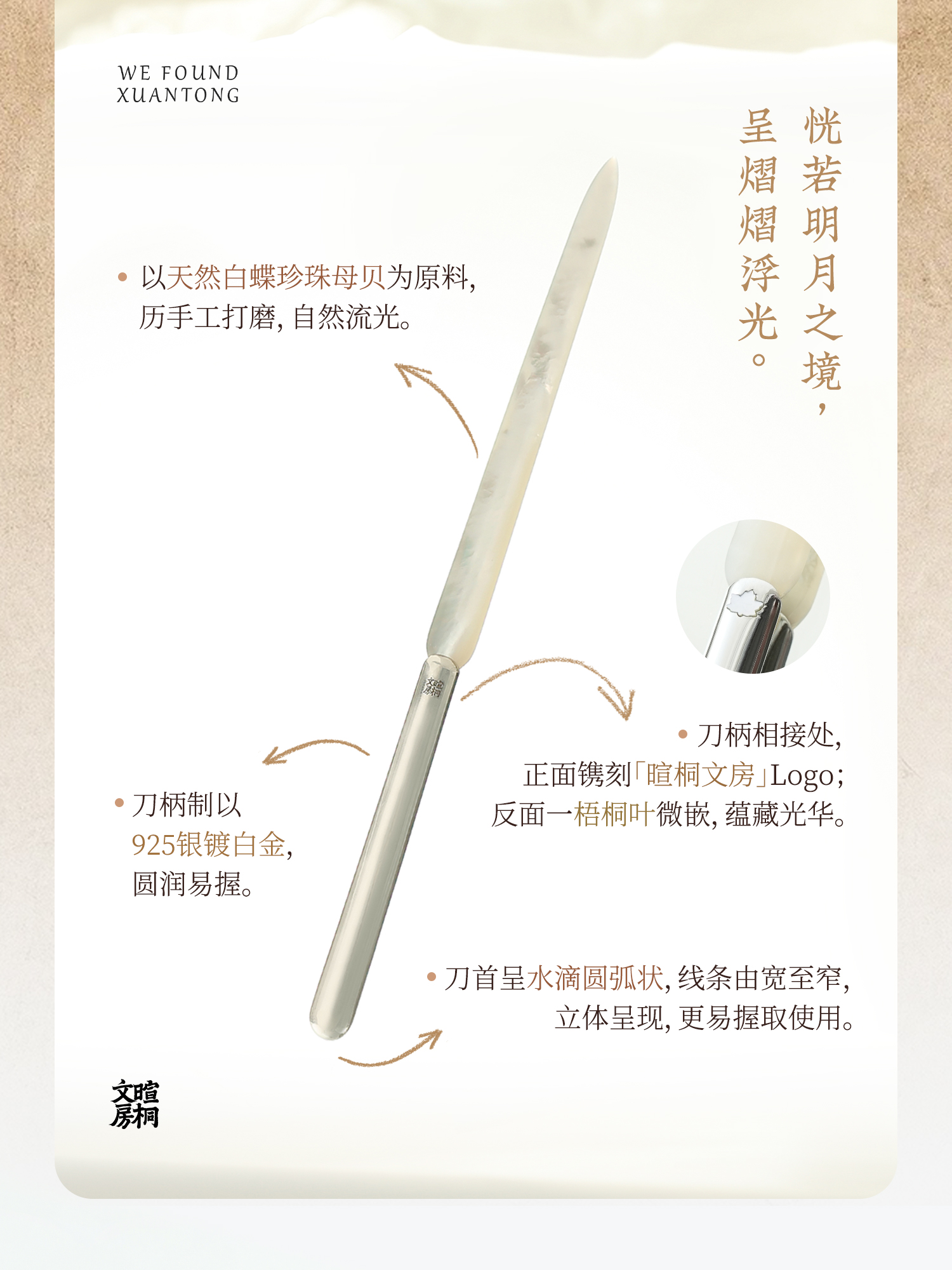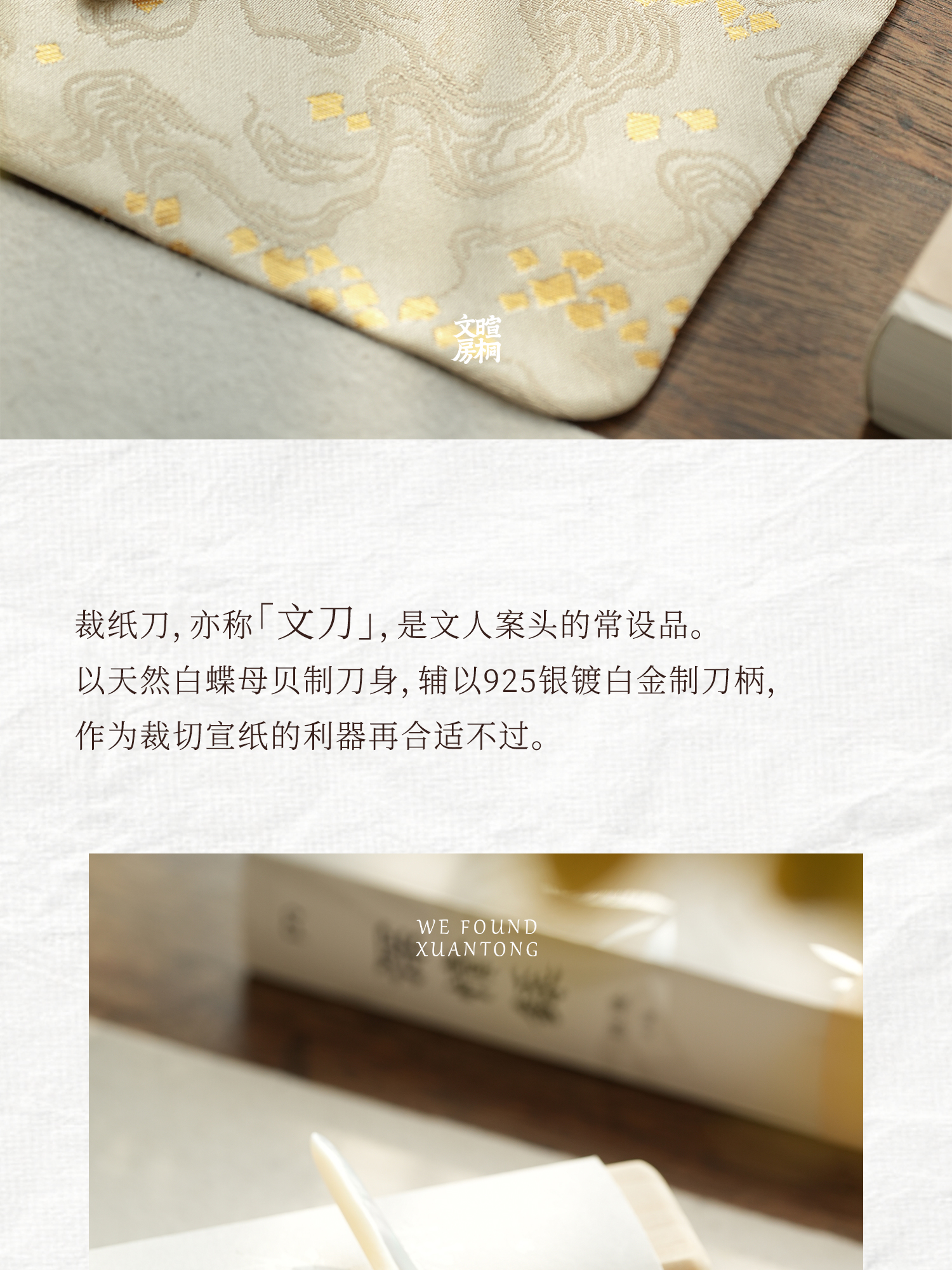 暄桐文房 拂衣 母贝裁纸刀 文房文刀