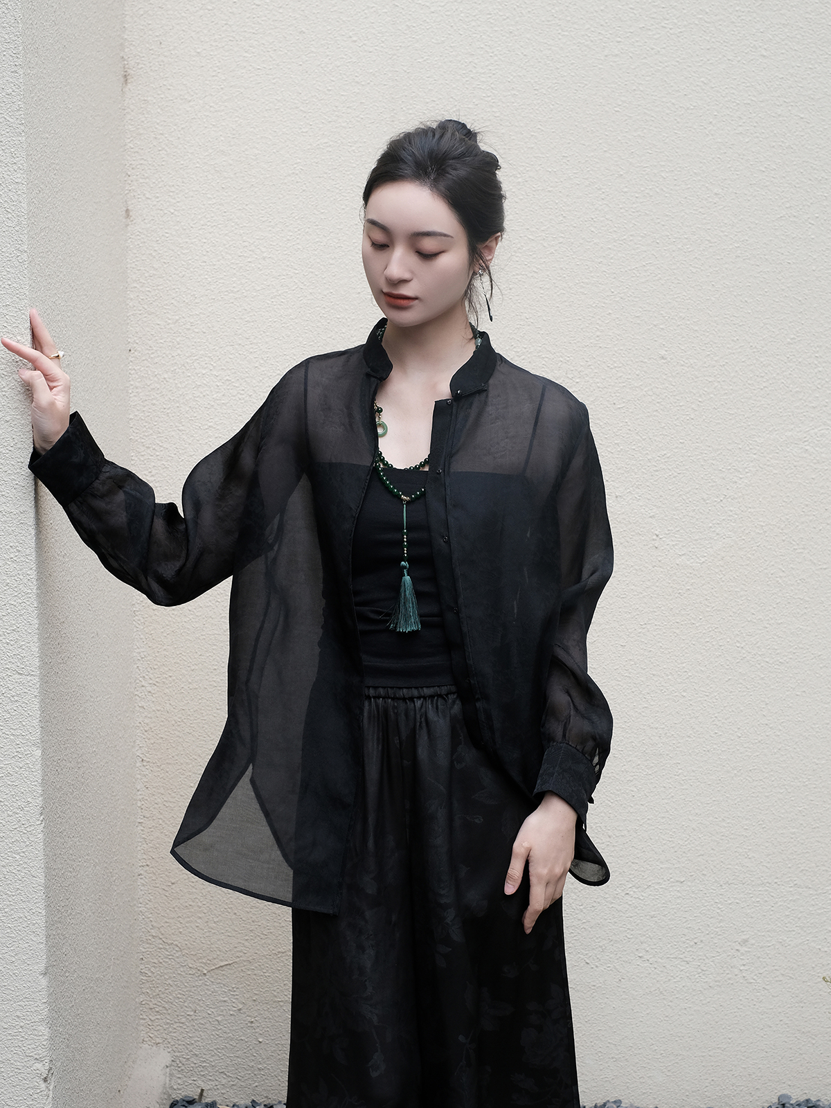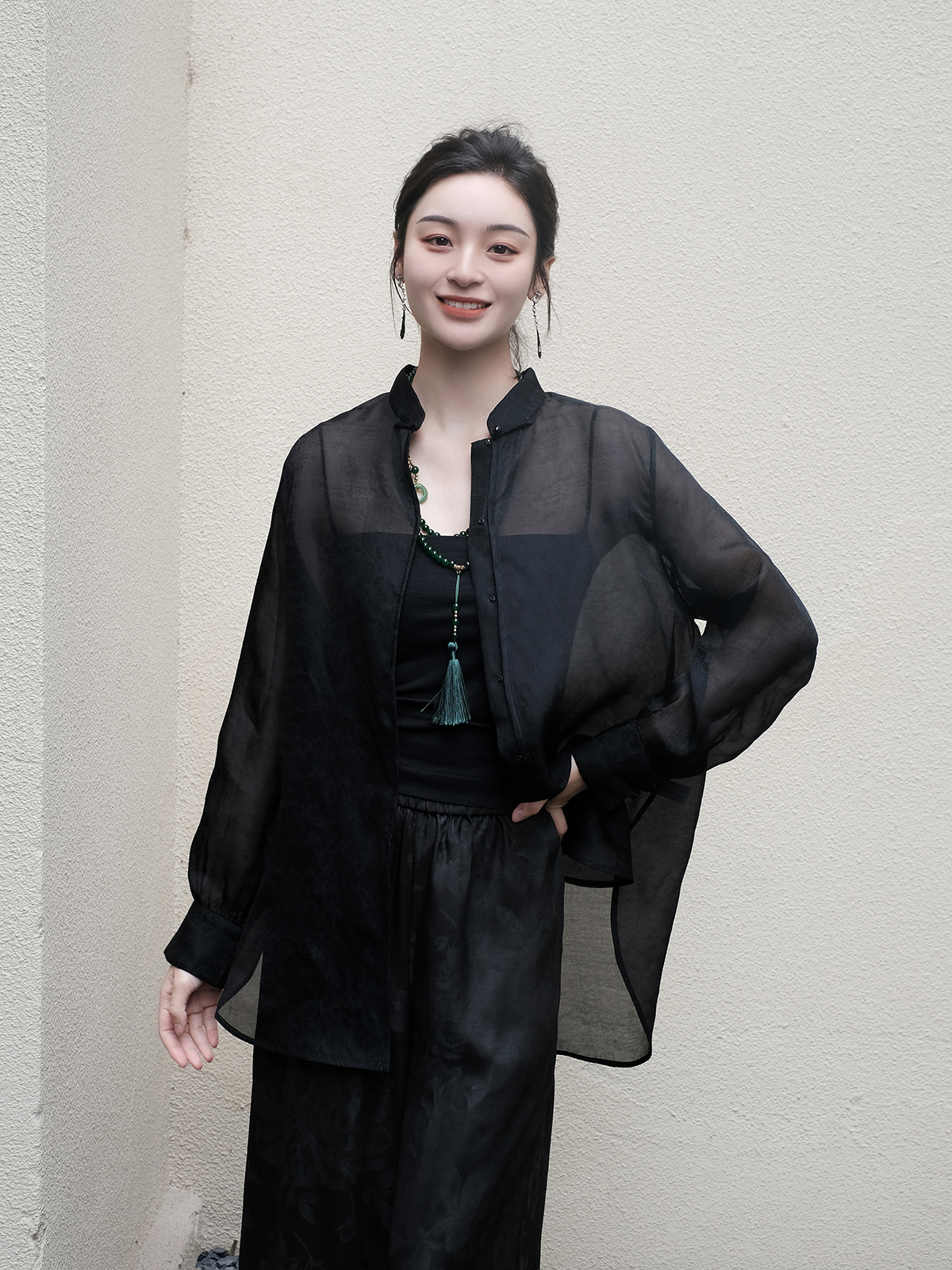 盛唐婧 |新中式真丝丝绒上衣