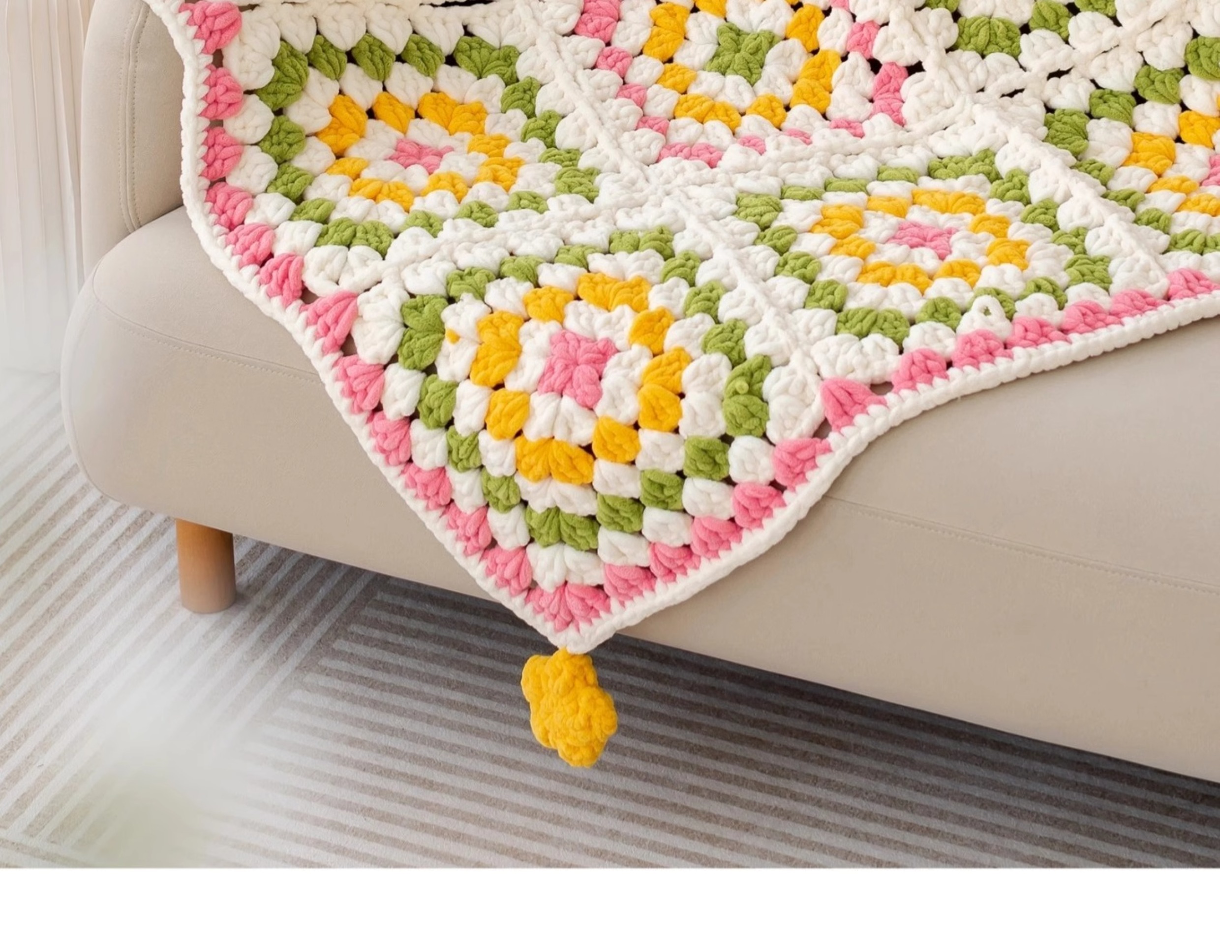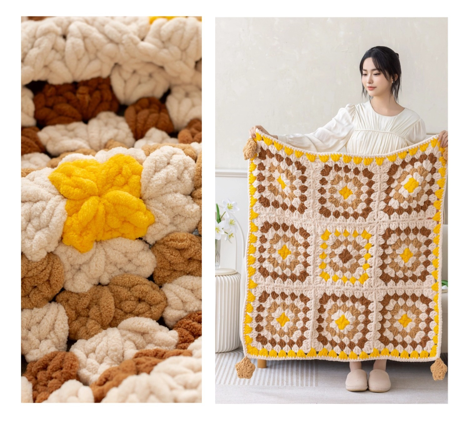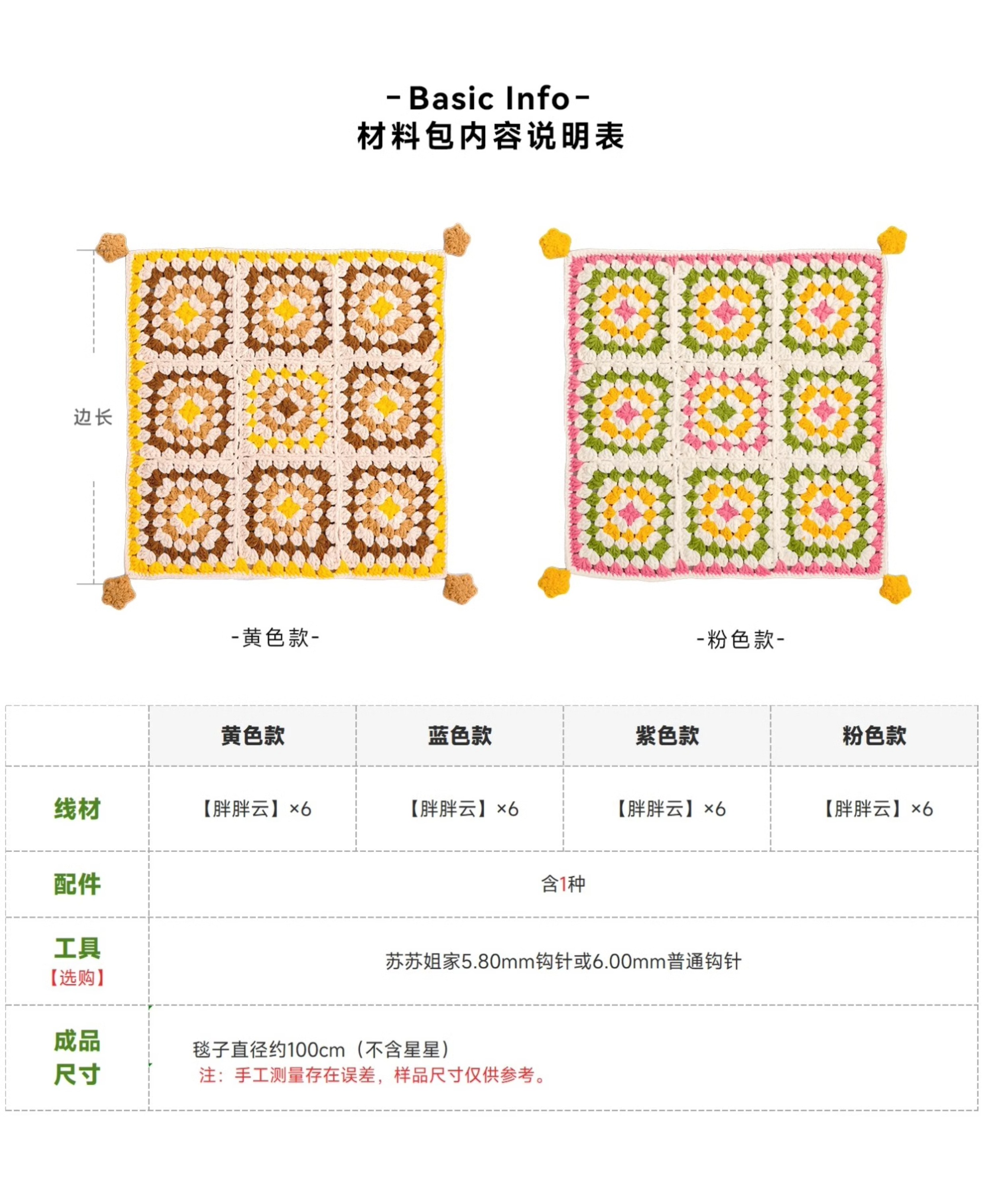 苏苏姐家胖嘟嘟方格毯手工diy编织钩针毯子毛线团自制材料包