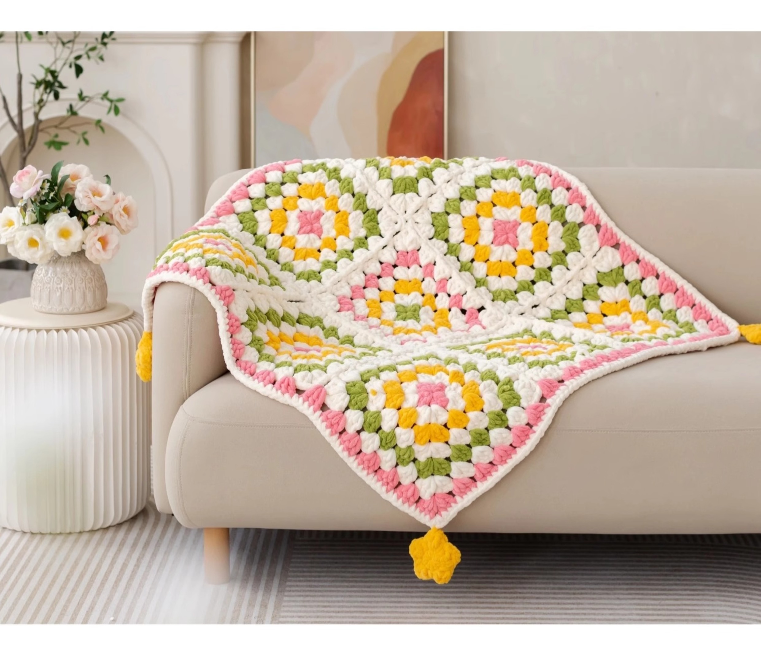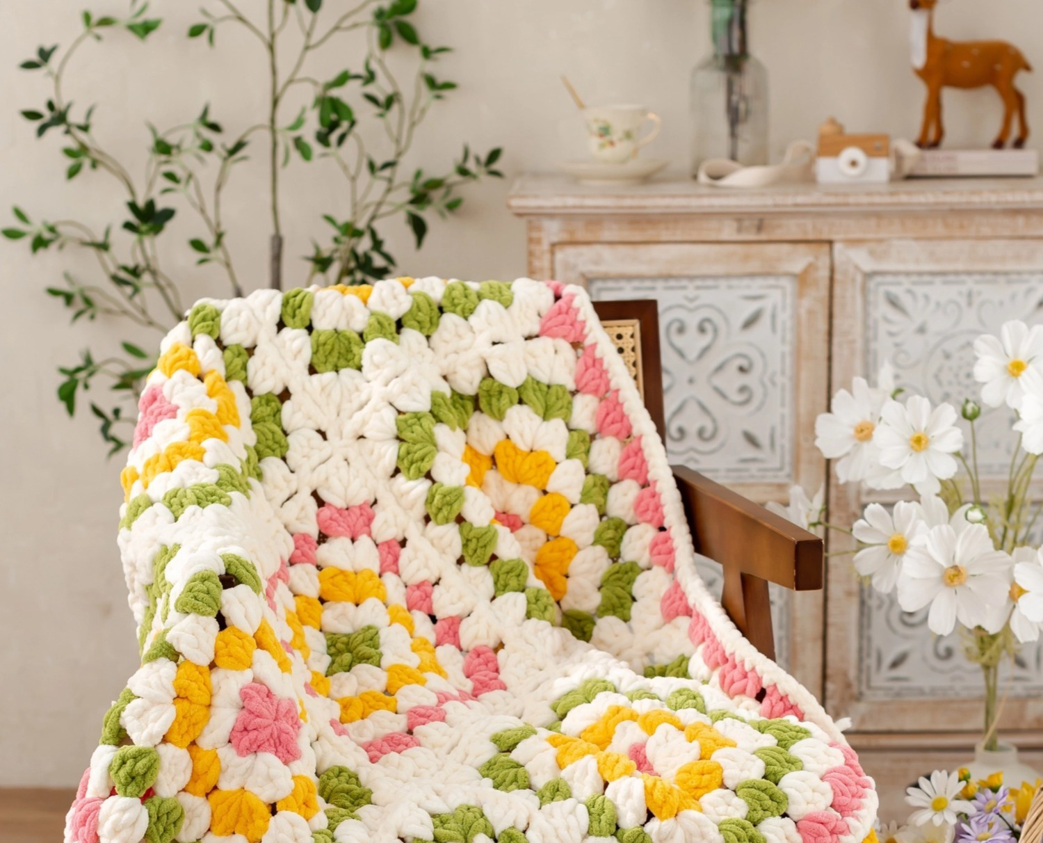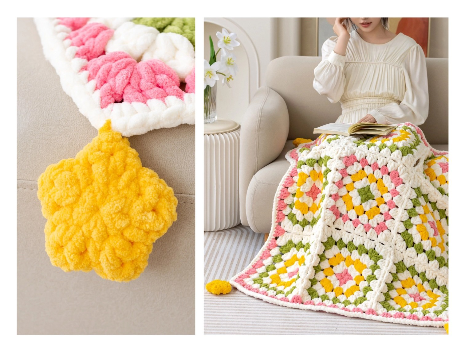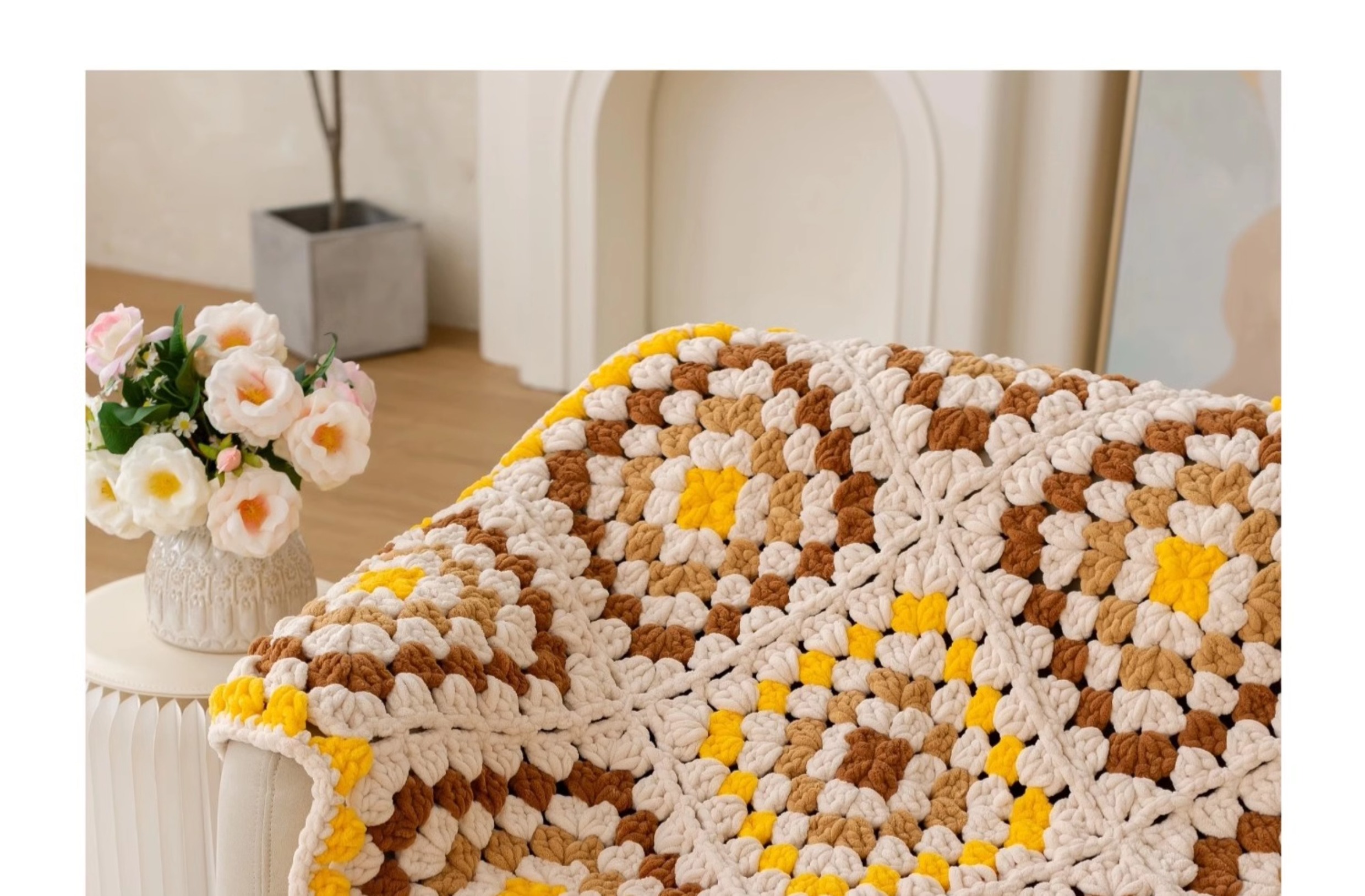 苏苏姐家胖嘟嘟方格毯手工diy编织钩针毯子毛线团自制材料包