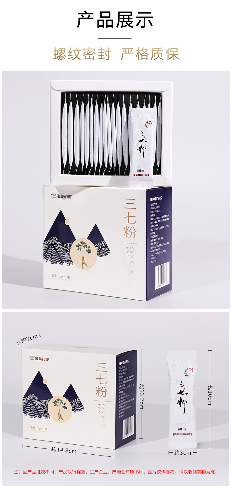 康美药业三七粉(3g*20袋)60g/盒 云南文山优质三七粉/田七粉粉质细腻可搭配丹参粉西洋参粉冲服煲汤