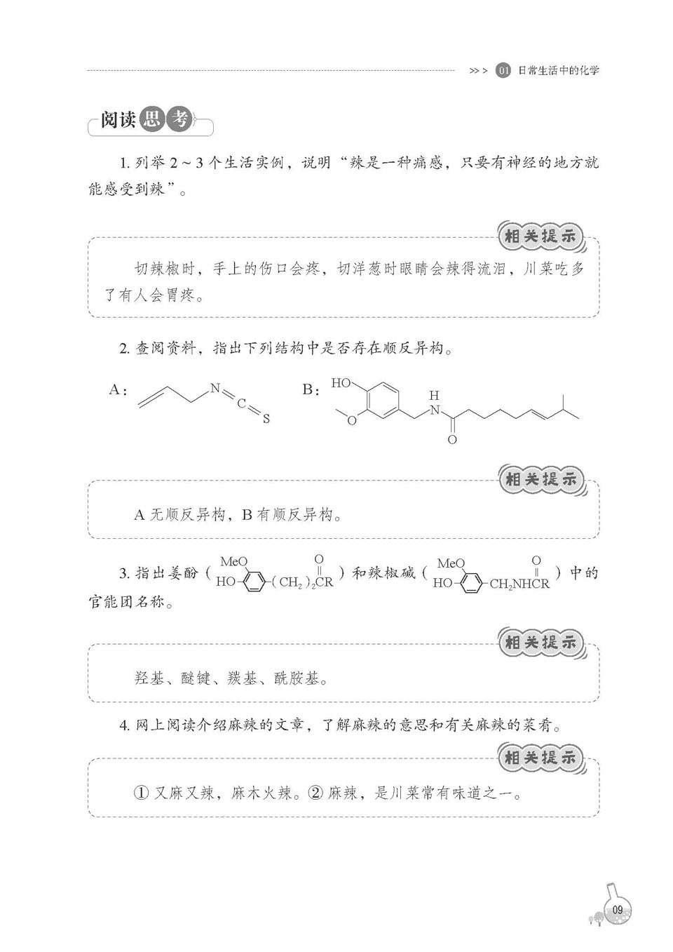 通过阅读,引起学生好奇心,激发学生求知欲,提高学生学习化学的积极性与主动性,培养学生善于观察日常生活,于生活中学习化学的能力。每篇短文后配以思考题,提升学生的科技阅读能