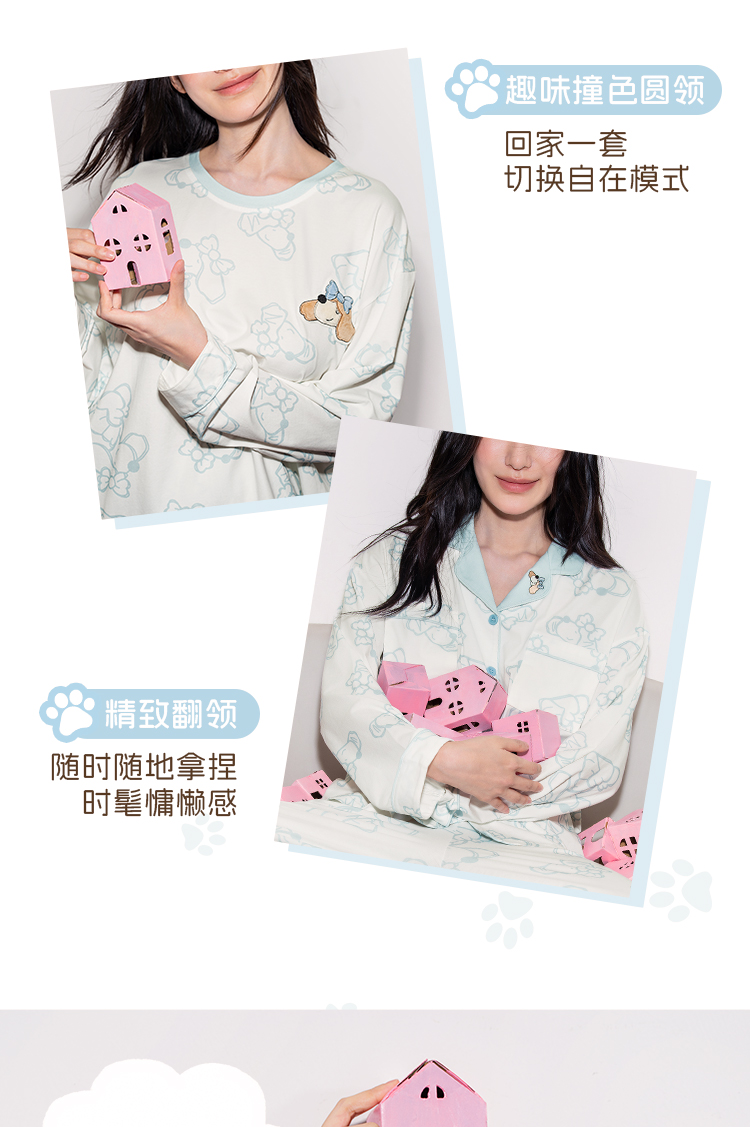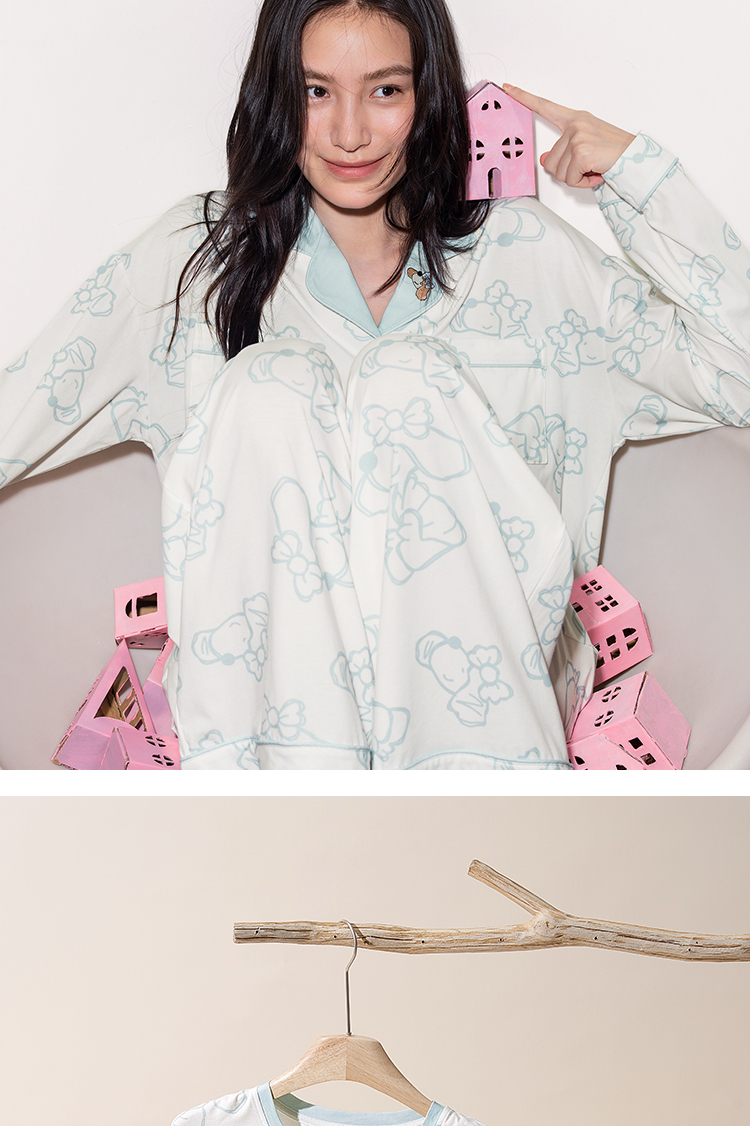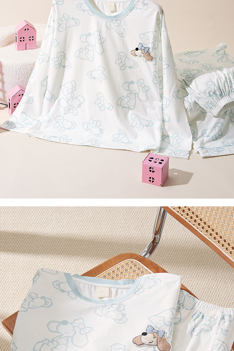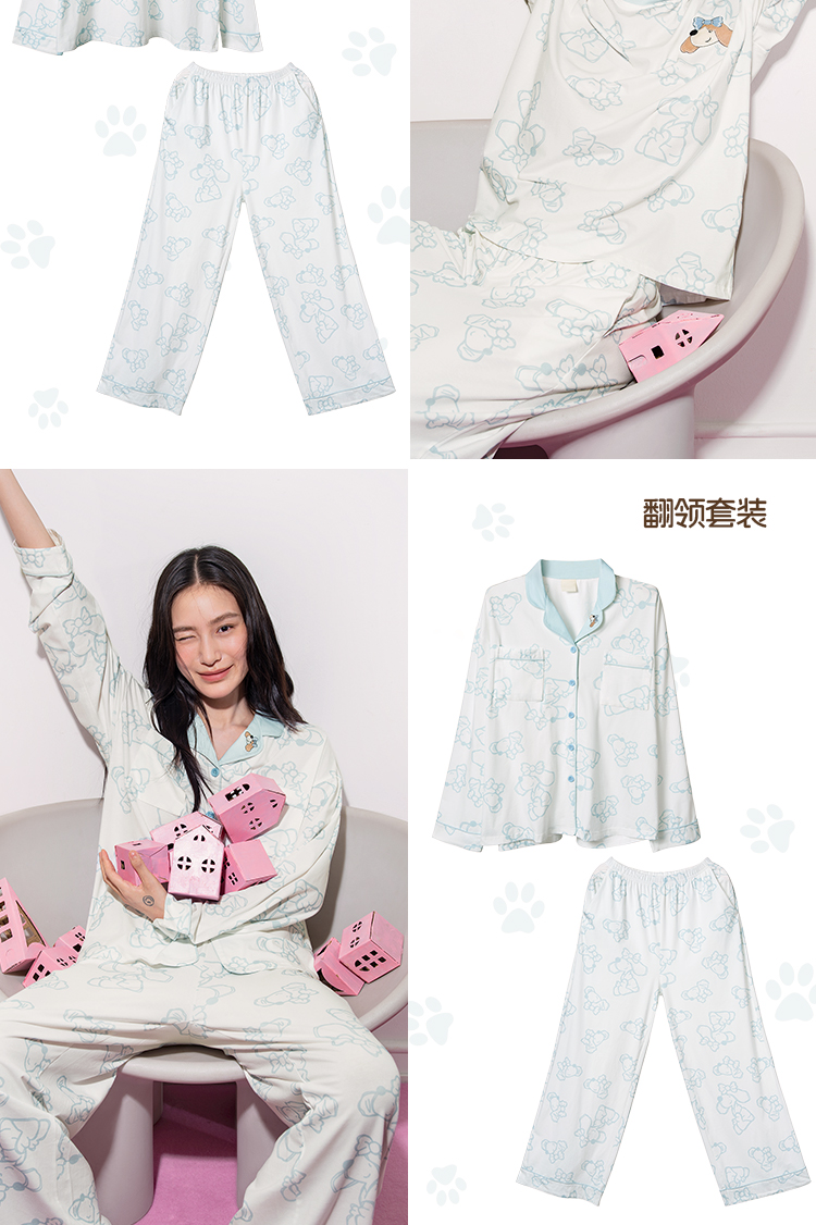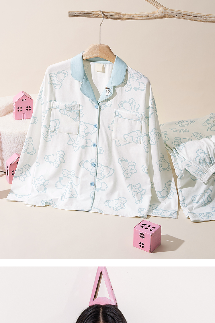 奶糖派奶糖抱抱团甜心结长袖长裤套头开襟家居服甜美可爱透气舒适