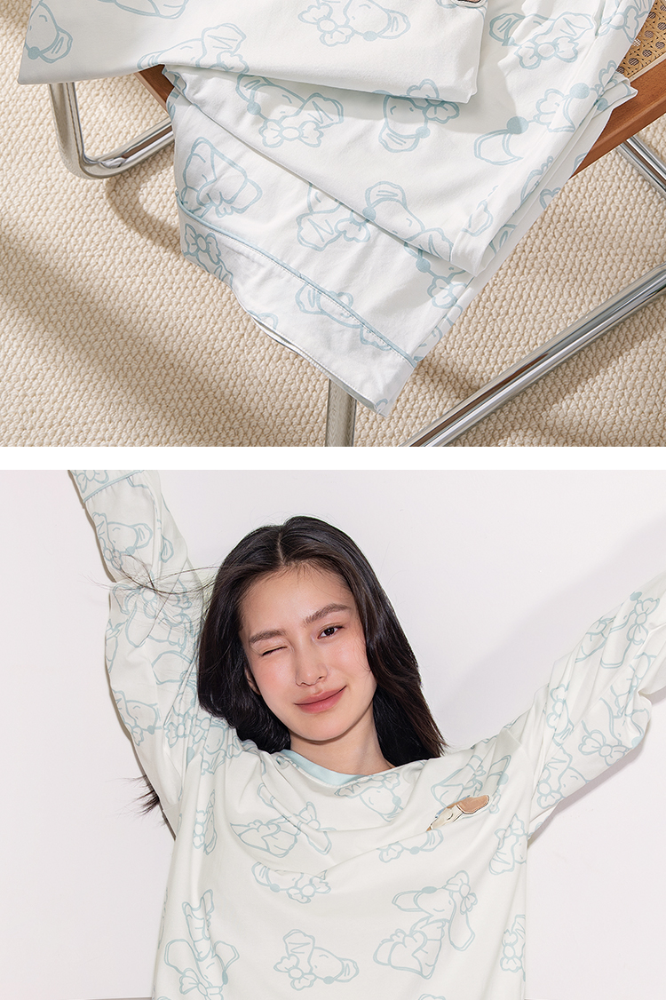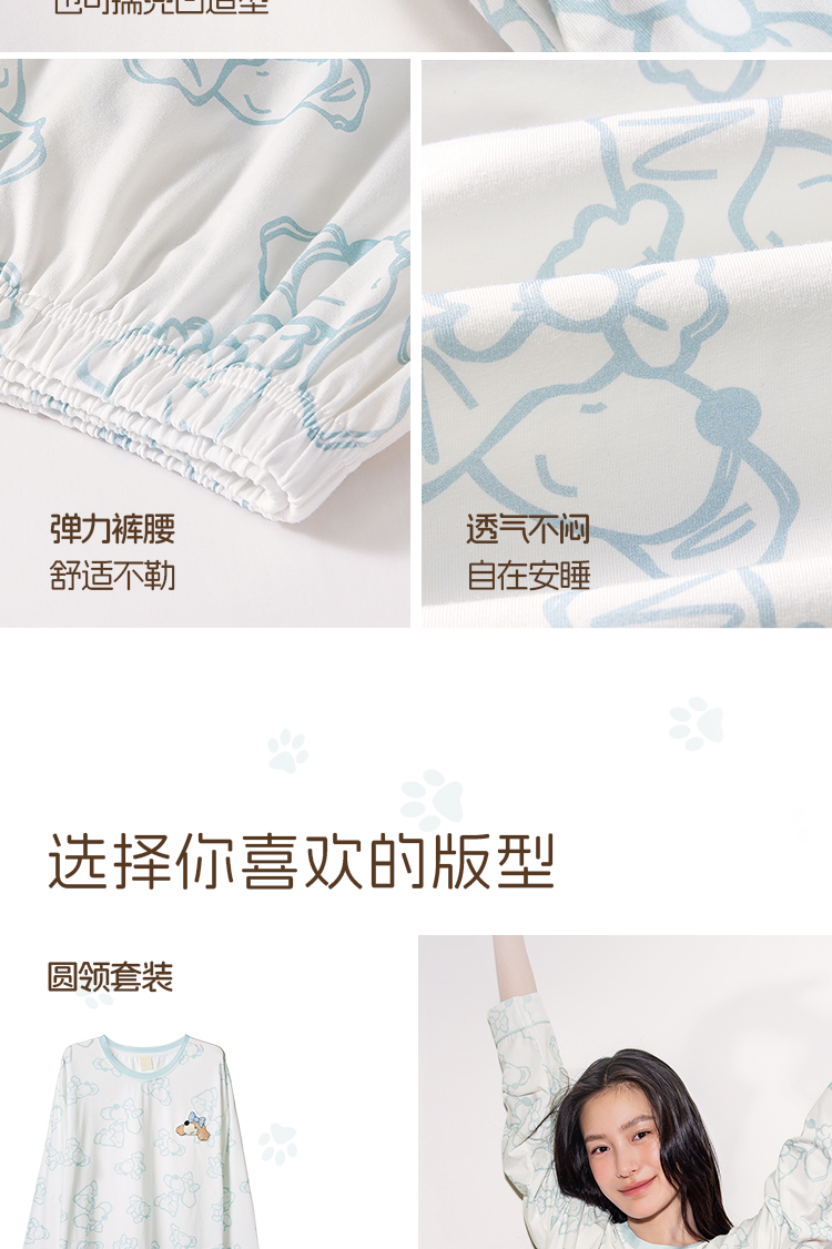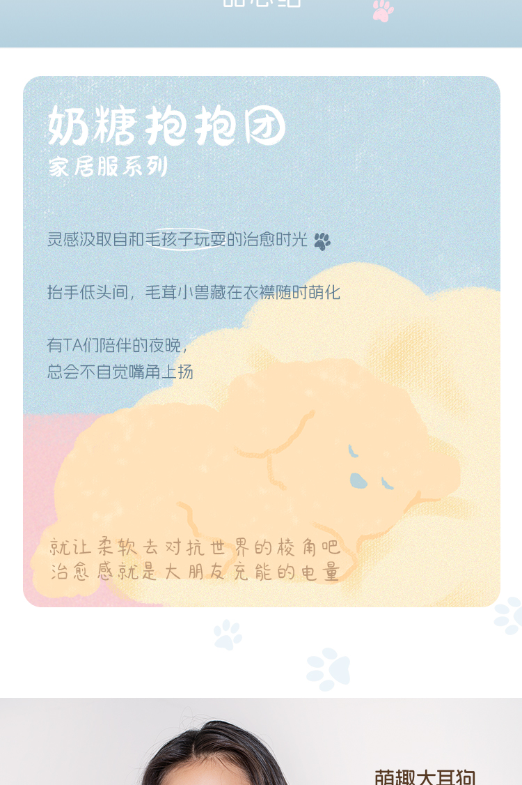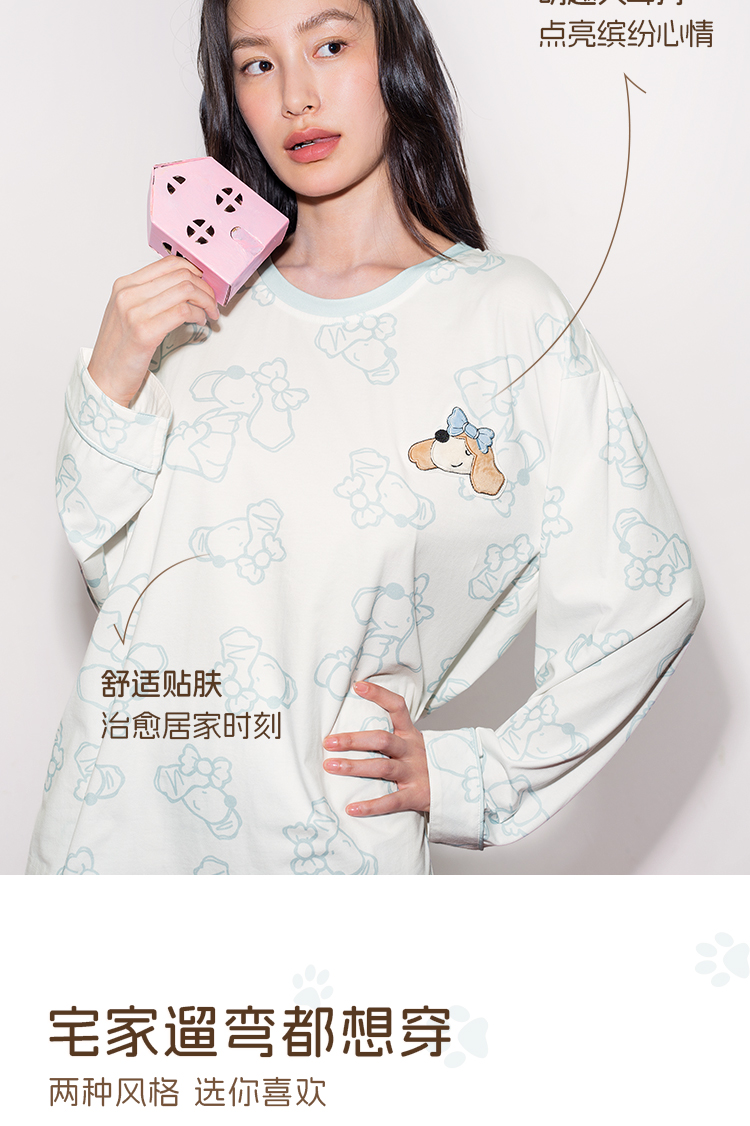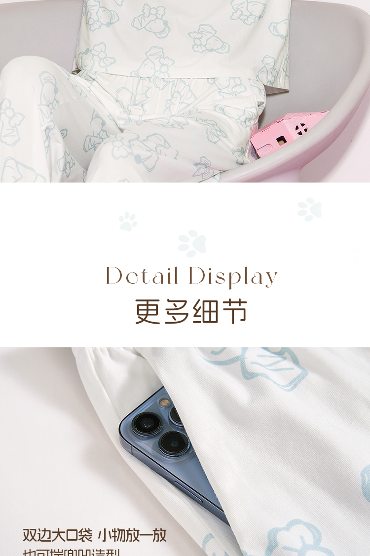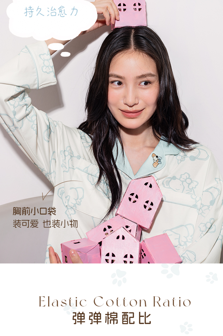 奶糖派奶糖抱抱团甜心结长袖长裤套头开襟家居服甜美可爱透气舒适