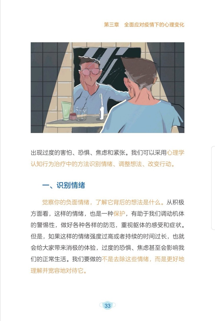 第一,以认知行为理论为本手册的科学支撑。认知行为疗法是科学、循证的心理治疗方法,具有短程、高效的特点。“自助”是认知行为疗法的特点之一,也刚好和本手册的主旨相符。本手册尝试以认知行为科学的角度来看待疫情下人们的心身反应,并提出相应的调适措施。