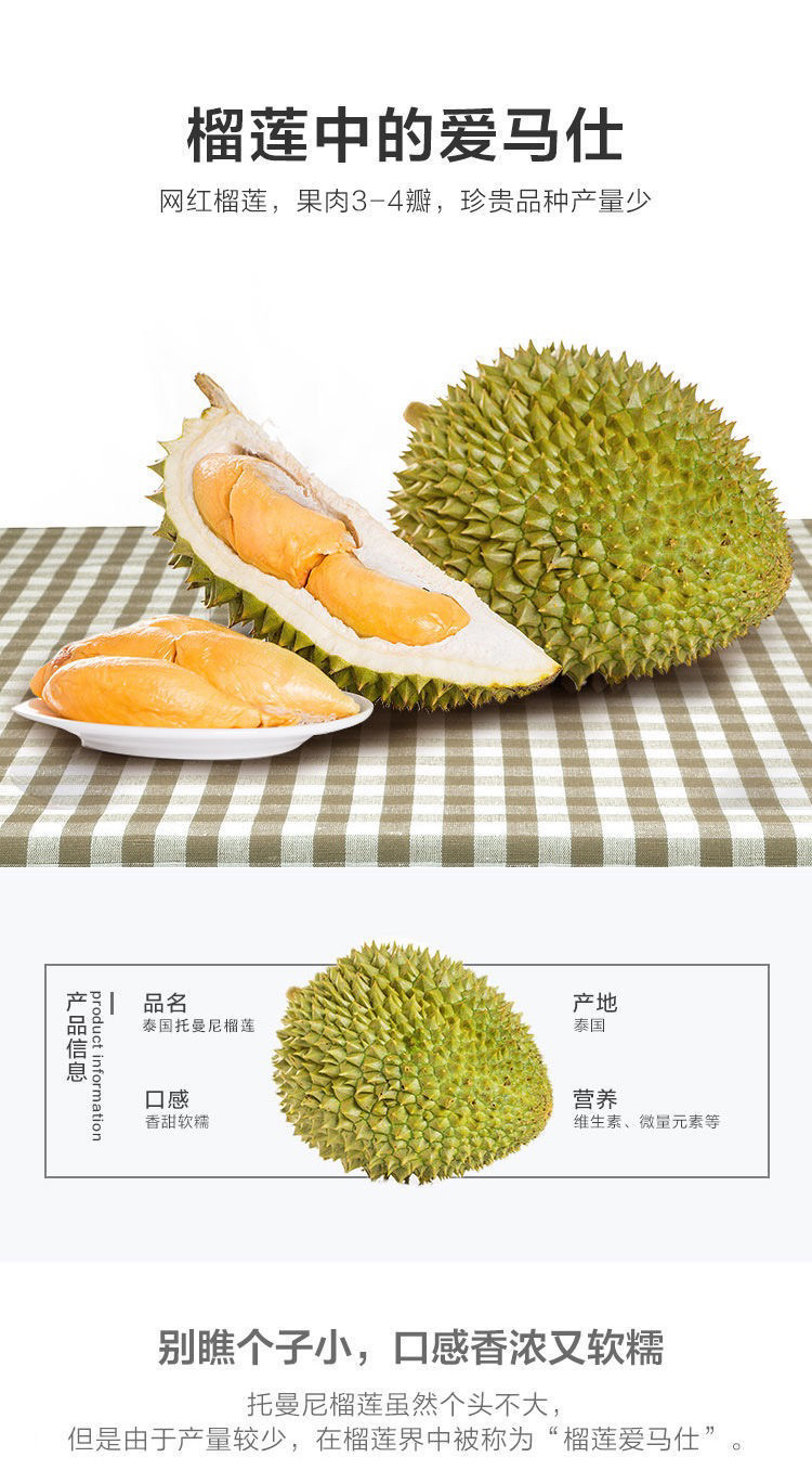 【巴掌秒杀】【香甜软糯】泰国托曼尼榴莲非金枕榴莲冻榴莲2-3斤