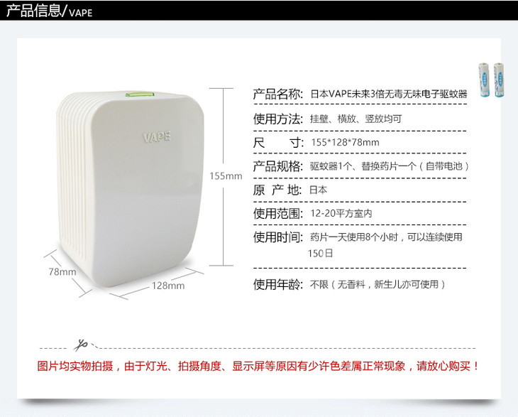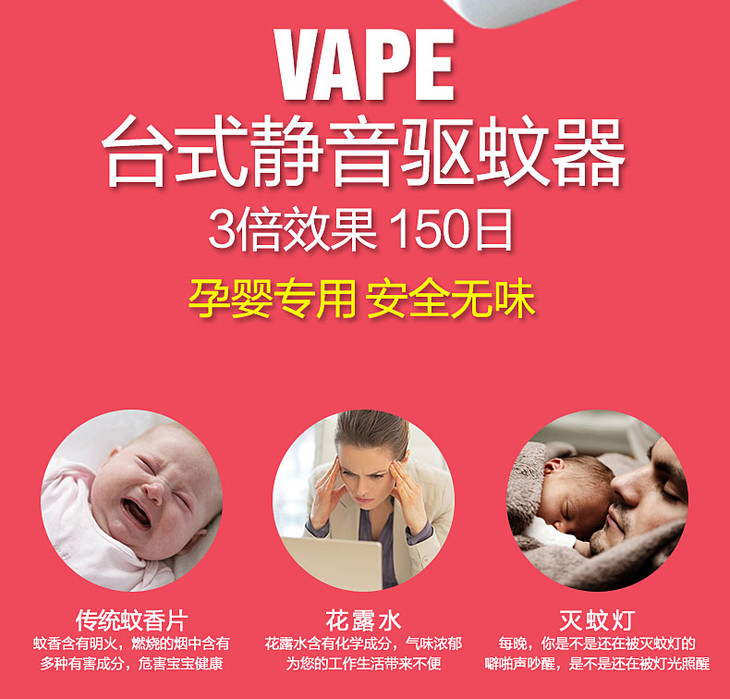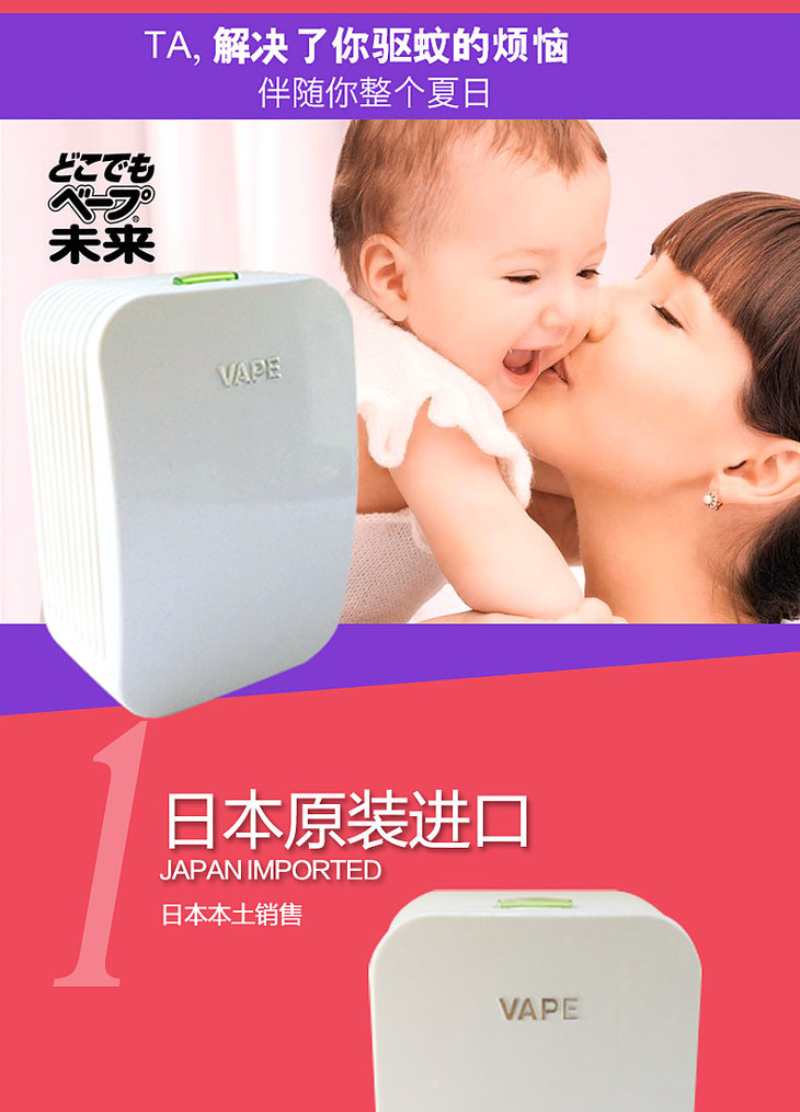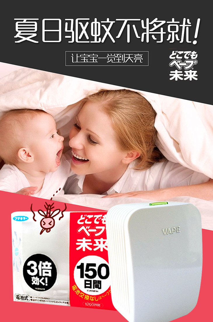 【保税区包邮直发】日本 VAPE未来 3倍效果静音电池防蚊驱蚊器 150日