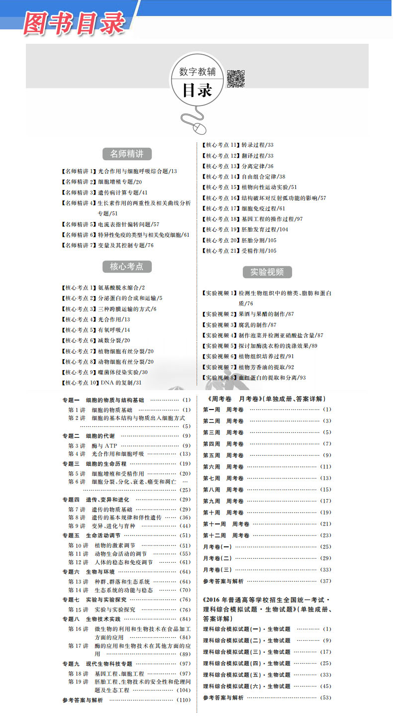 艺术生文化课考前100天 生物 2016版中国品牌教辅top100榜名师精讲核心考点大量周考月考及模拟试题