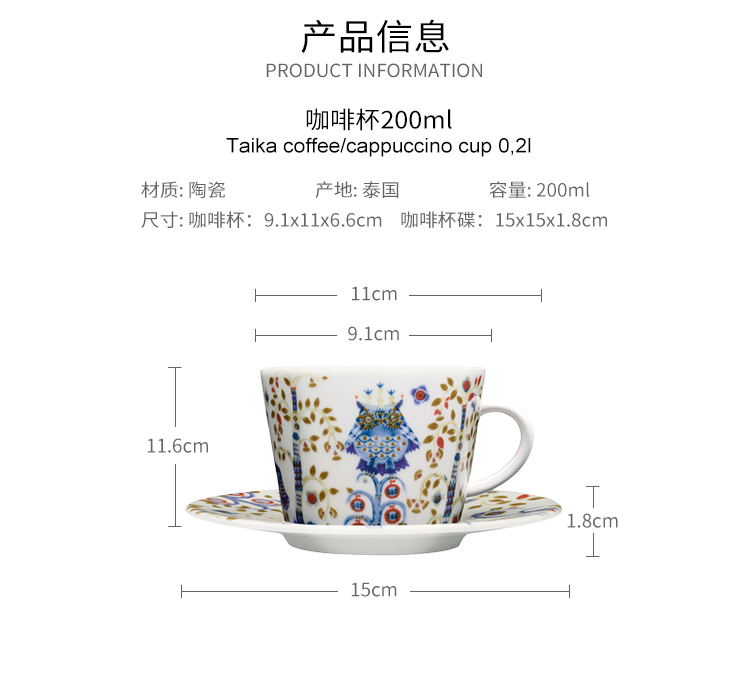 【6F】芬兰Iittala魔幻森林咖啡杯套装北欧风格200ml咖啡杯礼品杯碟套装 魔幻森林系列-蓝色咖啡碟