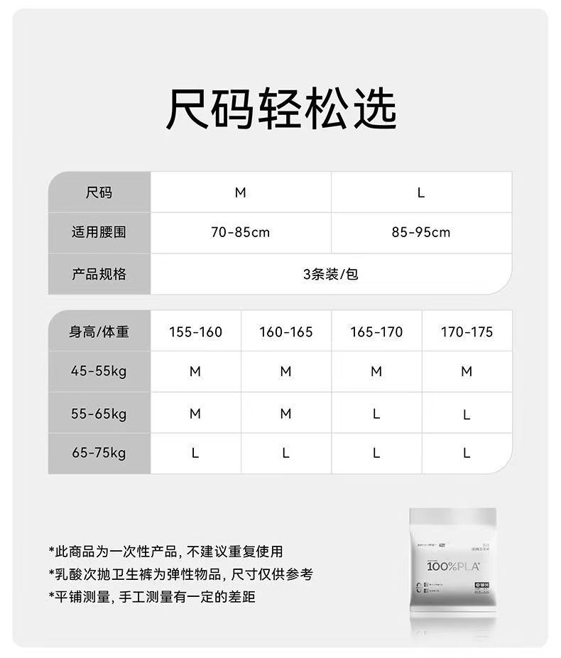 【VIP】菁羽乳酸次抛卫生裤M码/L码 一次性内裤 卫生巾
