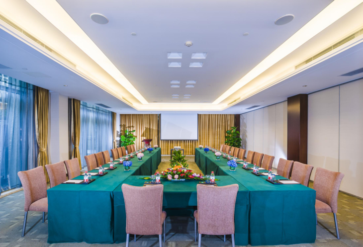 齐备的MICE设施使绿城蓝湾度假公寓成为举行各类会议及私人会晤的理想选择。酒店同时拥有2个大小不同的多功能厅。先进完善的设备,专业的会务团队,满足高档宴会和会议所需。