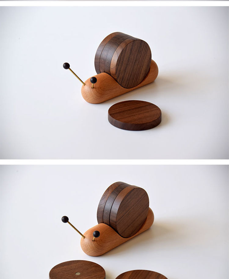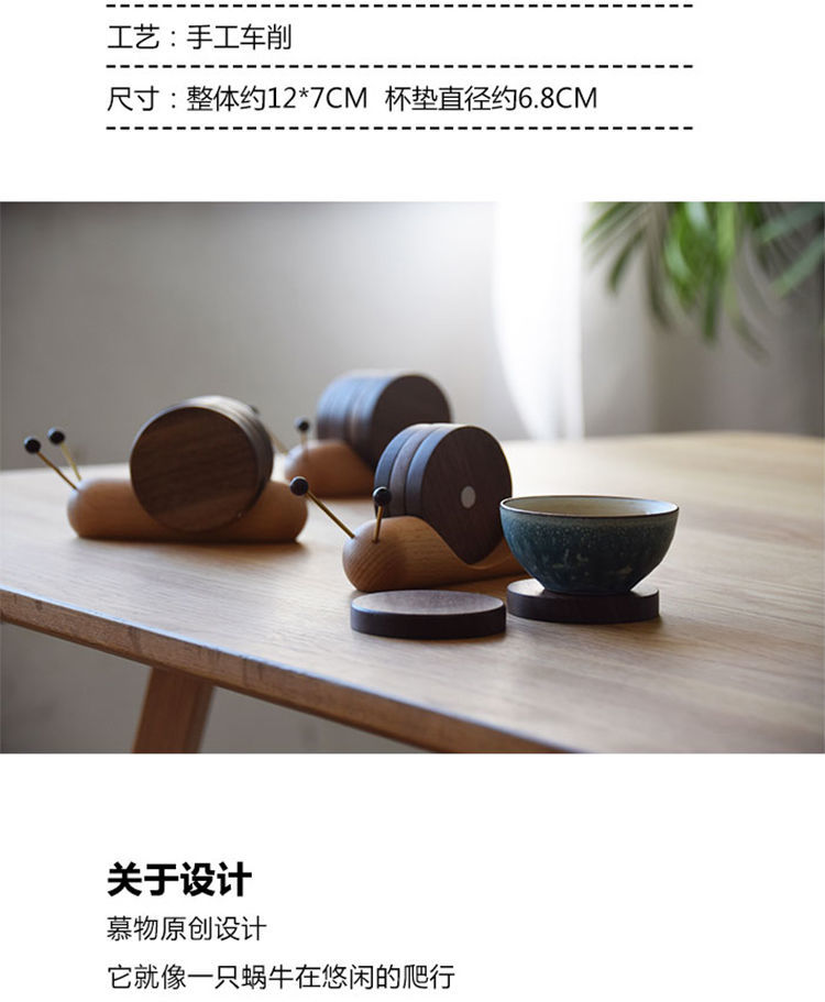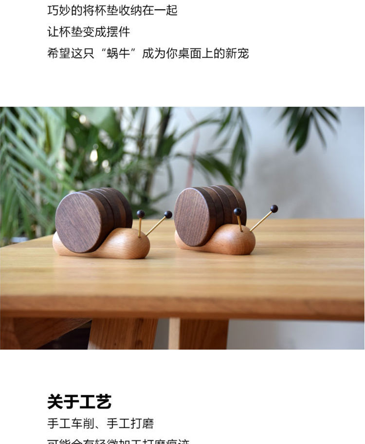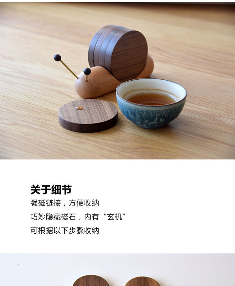 【蜗牛杯垫 】胡桃木隔热防烫4枚套装摆件磁铁吸附杯托茶杯碗垫子