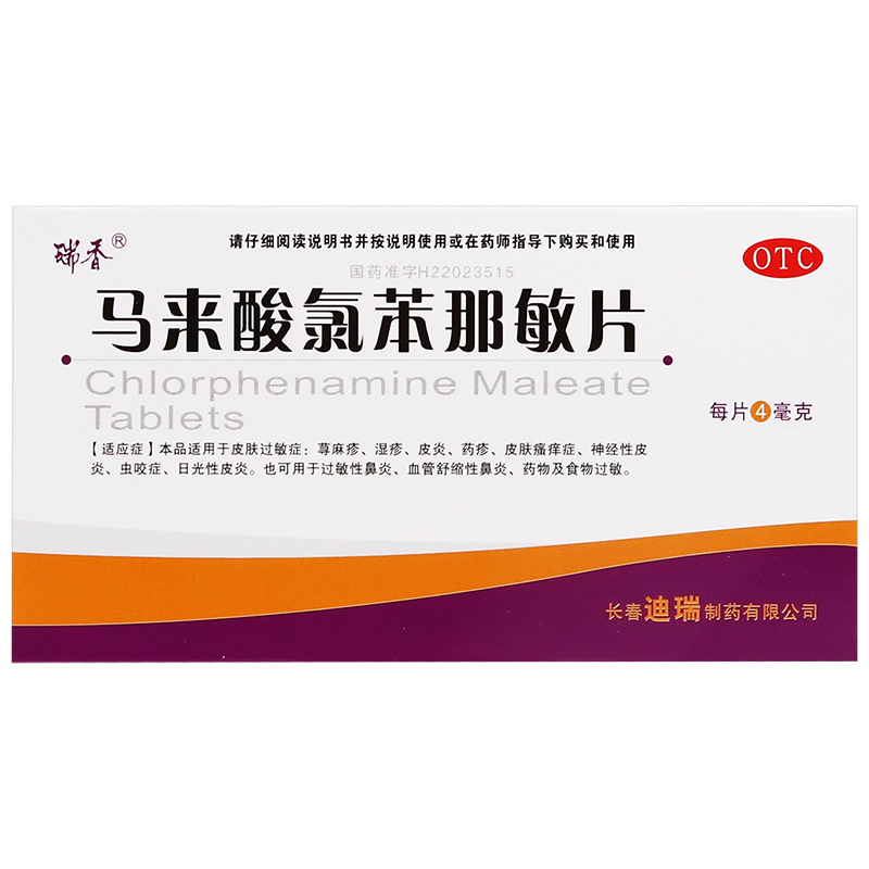 瑞香马来酸氯苯那敏片 4mg*24片/盒皮肤过敏症湿疹荨麻疹皮炎止痒