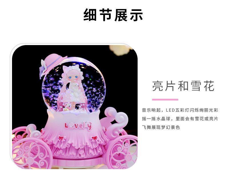 8-12岁女孩水晶球音乐盒公主马车旋转八音盒女生儿童生日毕业礼物