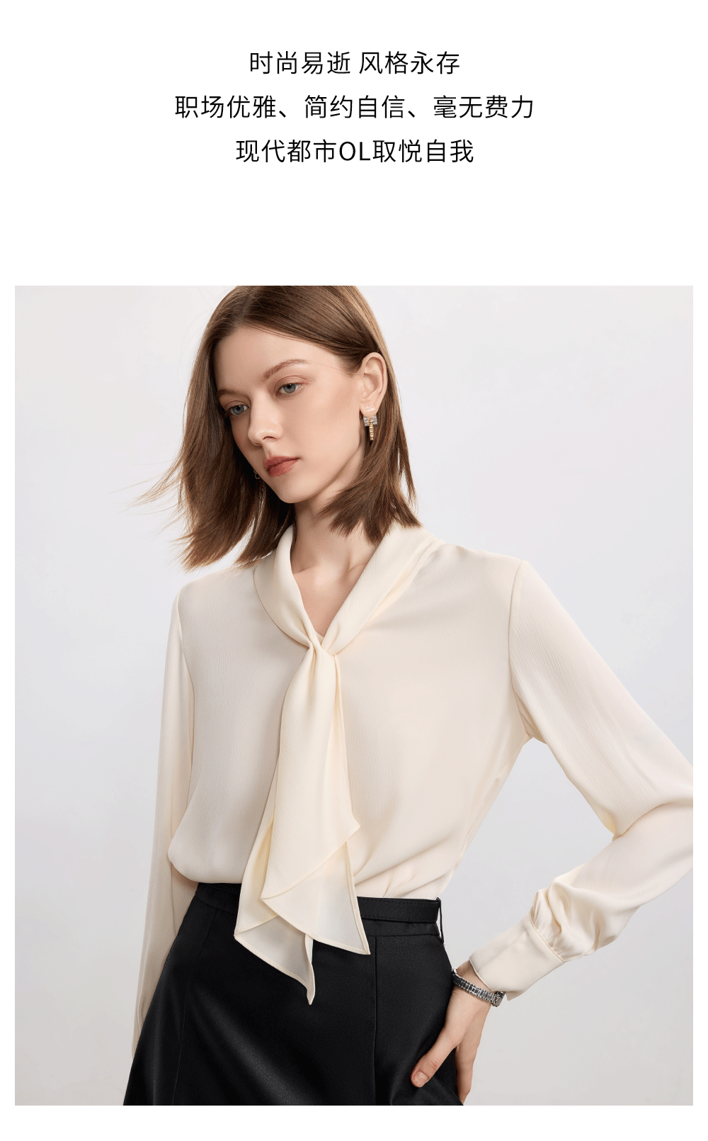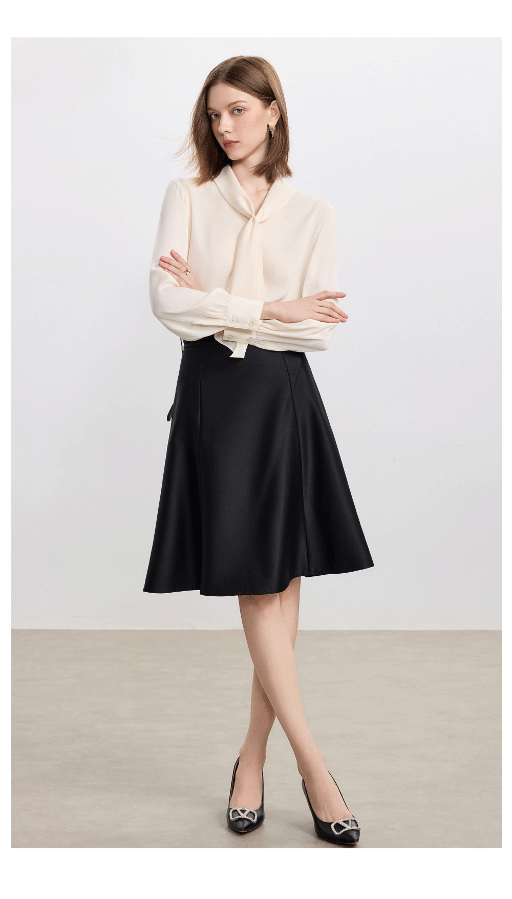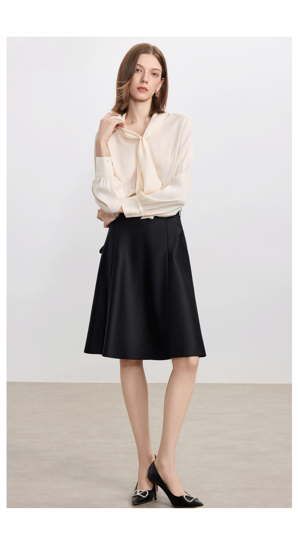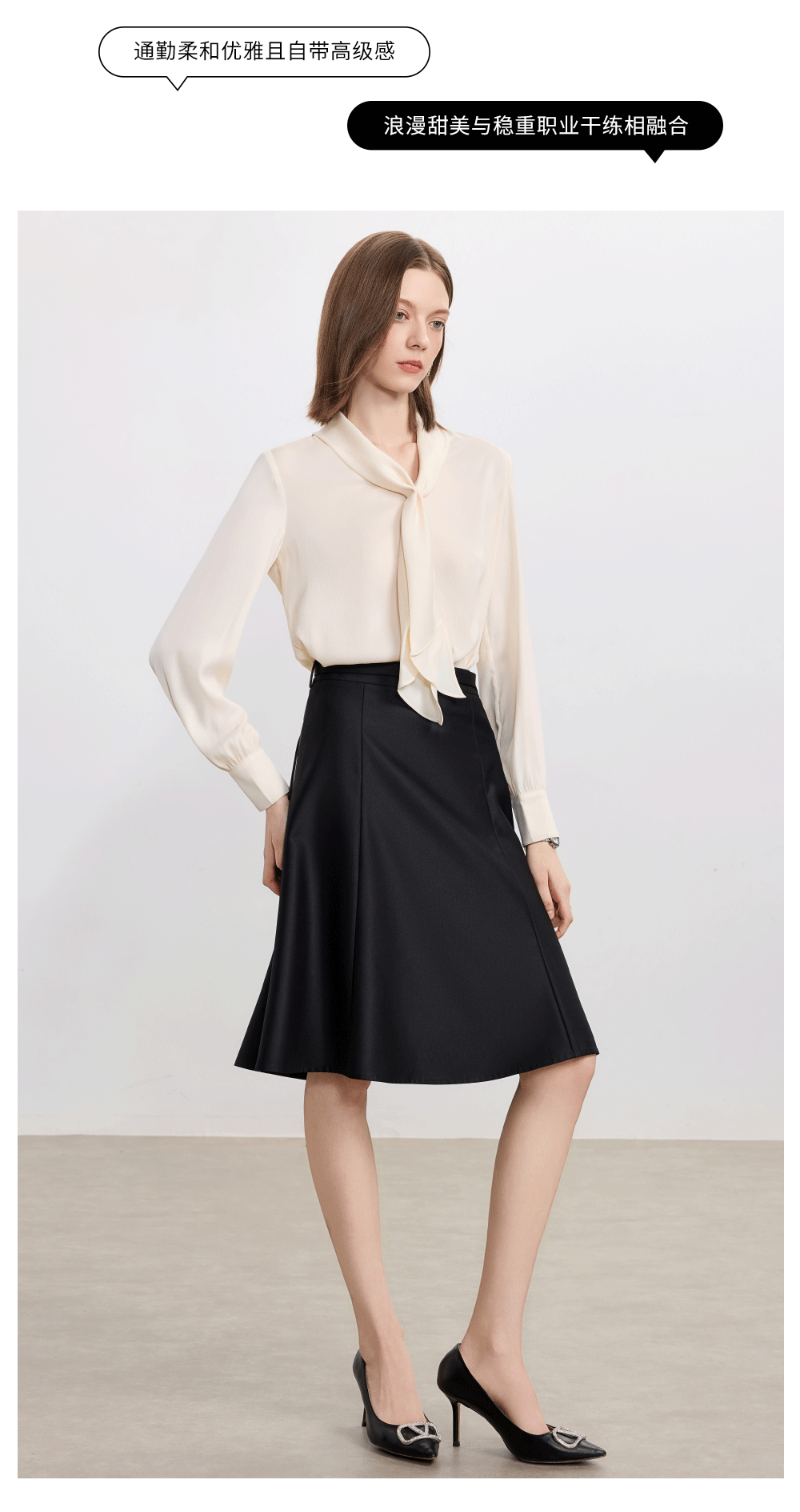 AD高端精致衬衫套装女2025新款正式场合轻奢飘带长袖衬衣黑色皮裙