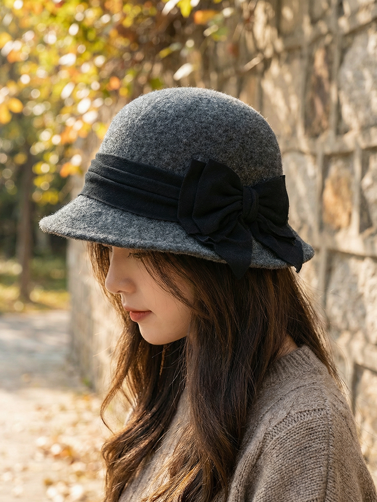 北京仓|CA4LA-CF POEM6-缎带 钩针 渔夫帽(灰色)[日本设计师]