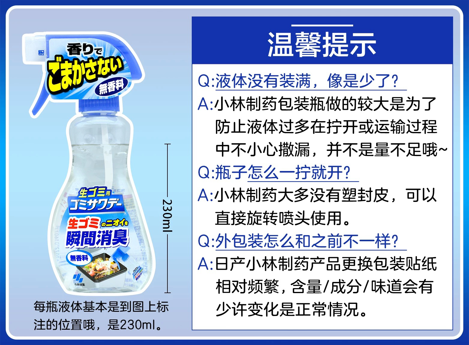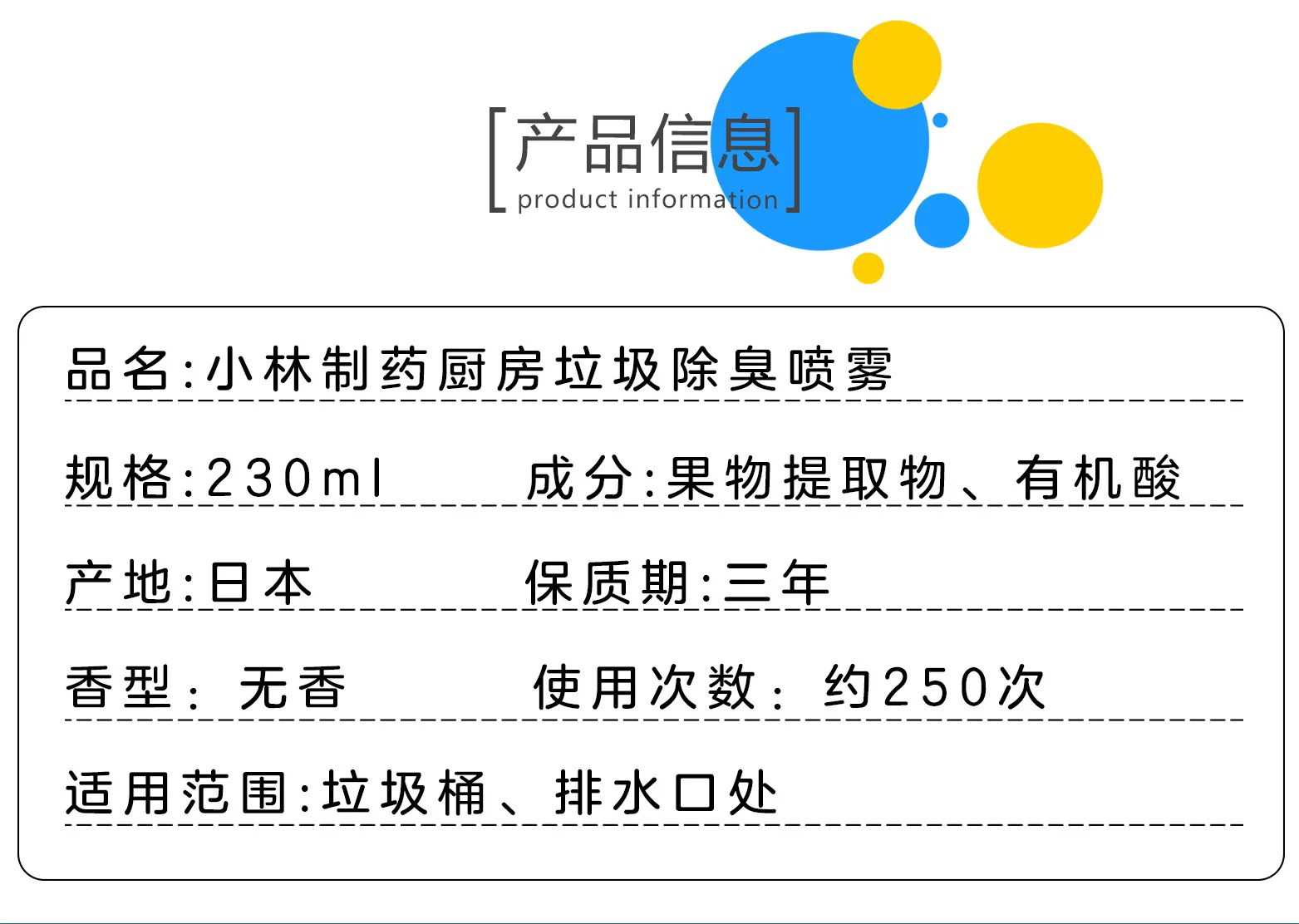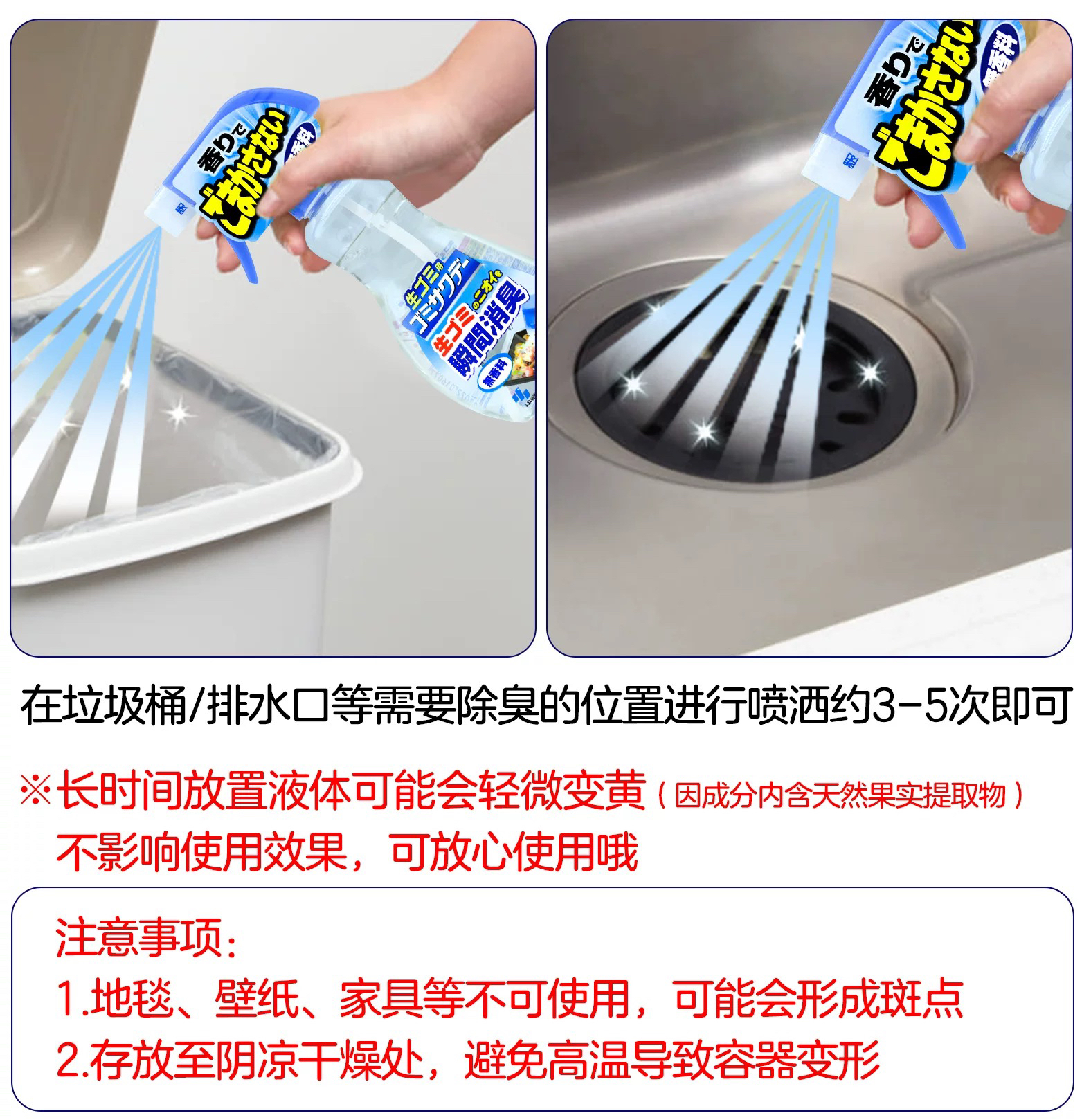 【瞬间除臭】小林制药 厨房垃圾桶 下水道 除臭味喷雾230ml空气清新剂分解异味消臭