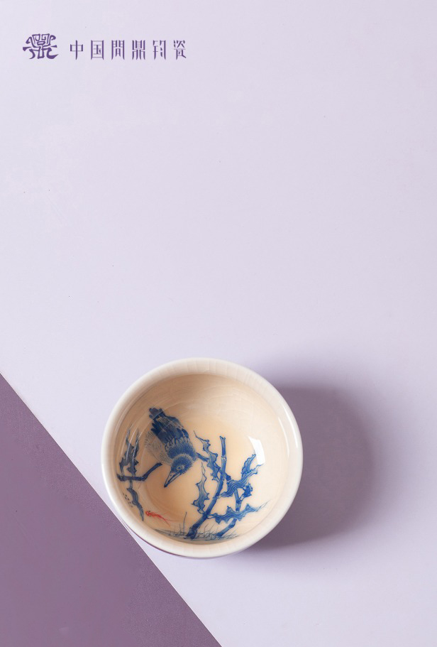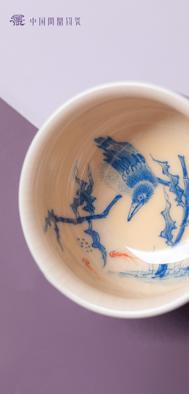 问鼎钧瓷鹅黄青花晖盈杯(芦苇鹭鸶)