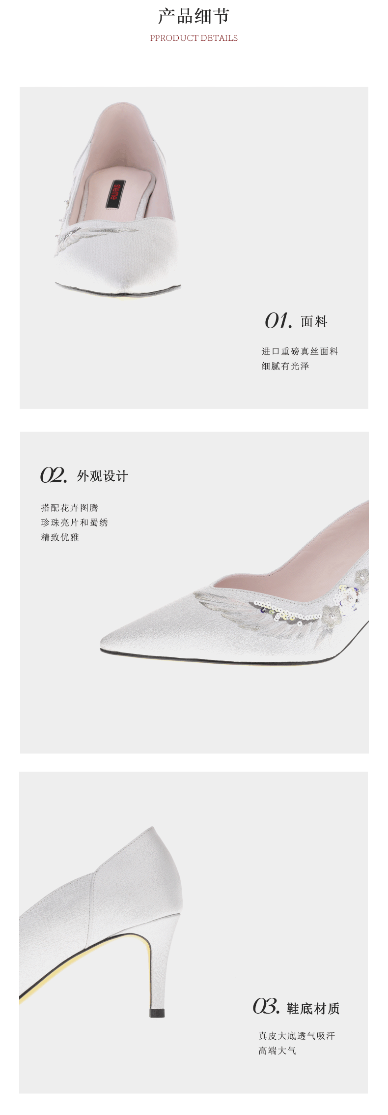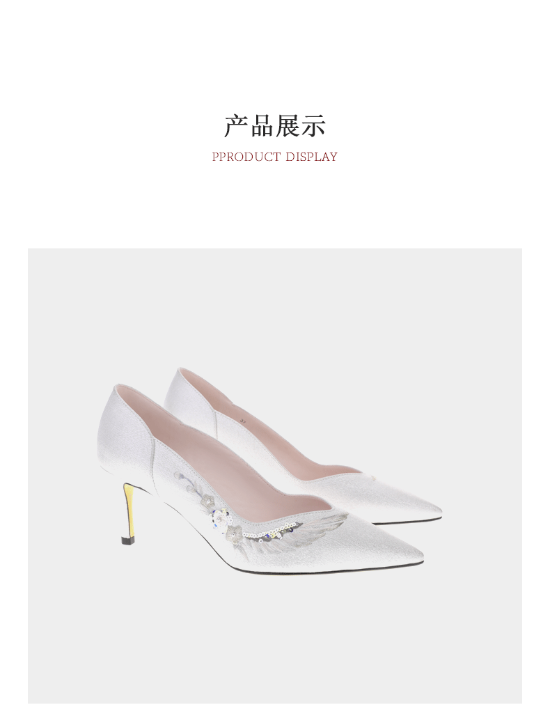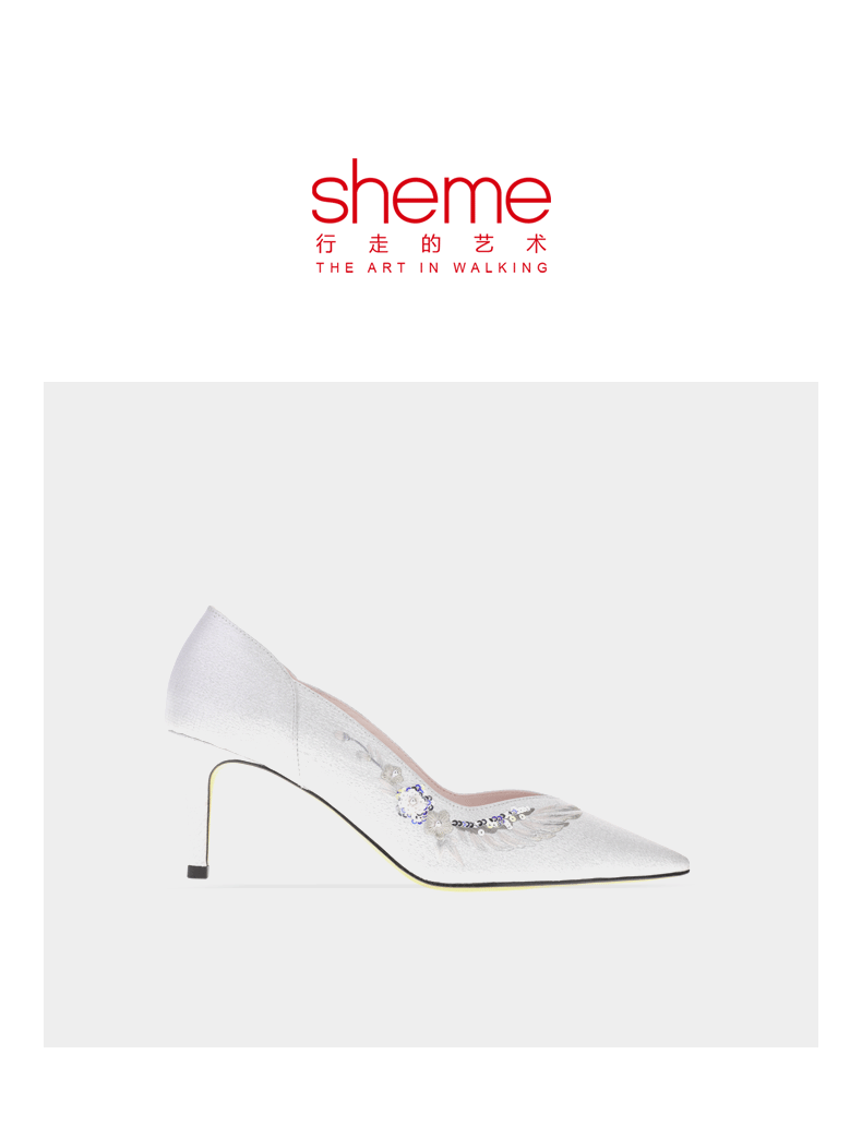 sheme原创设计刺绣珍珠亮片点缀优雅精致尖头中跟女士单鞋可定制