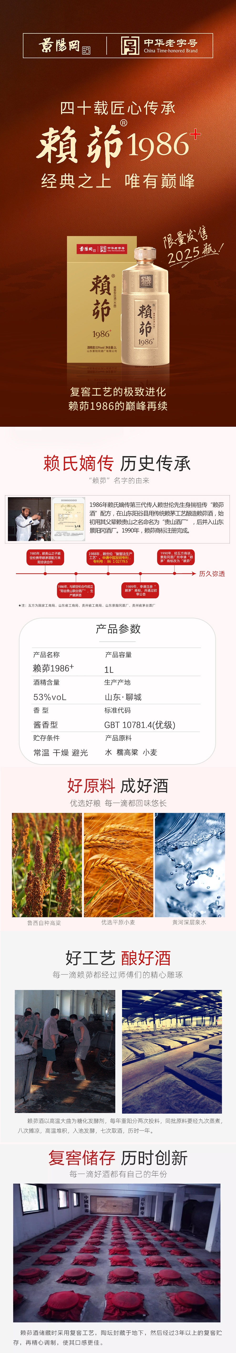 【封藏大典特别限量产品】景阳冈 53度赖茆1986+酱香型白酒1L装 高端礼盒用酒