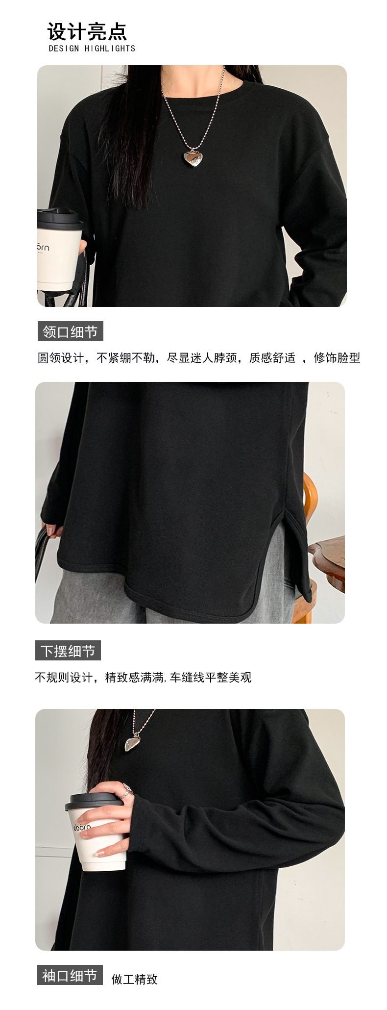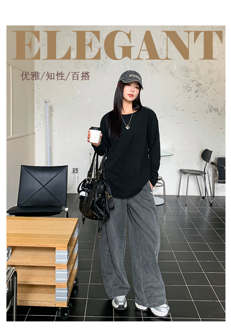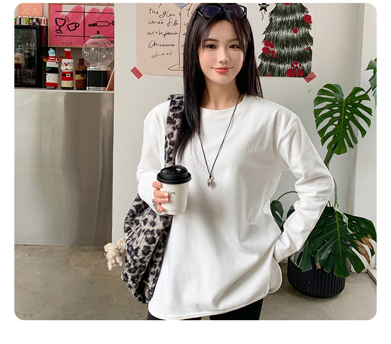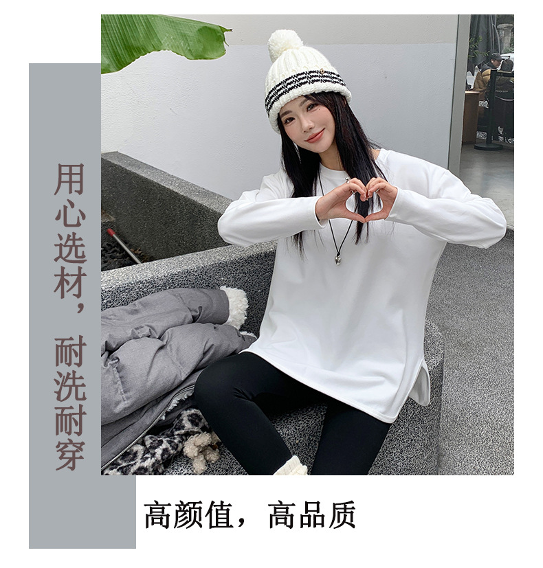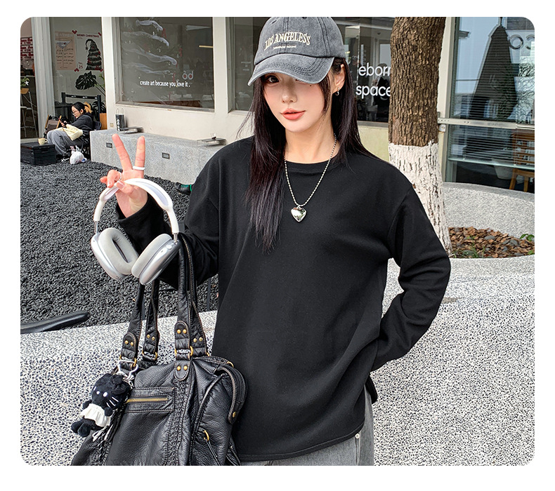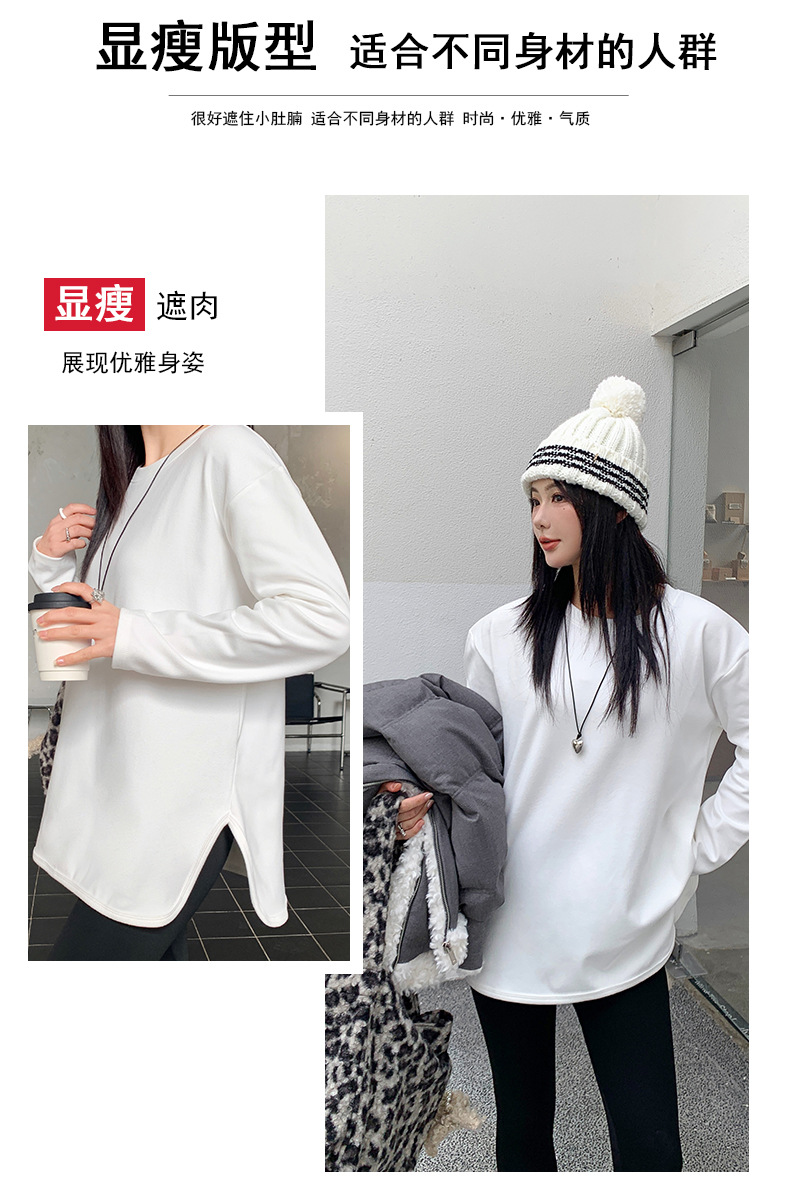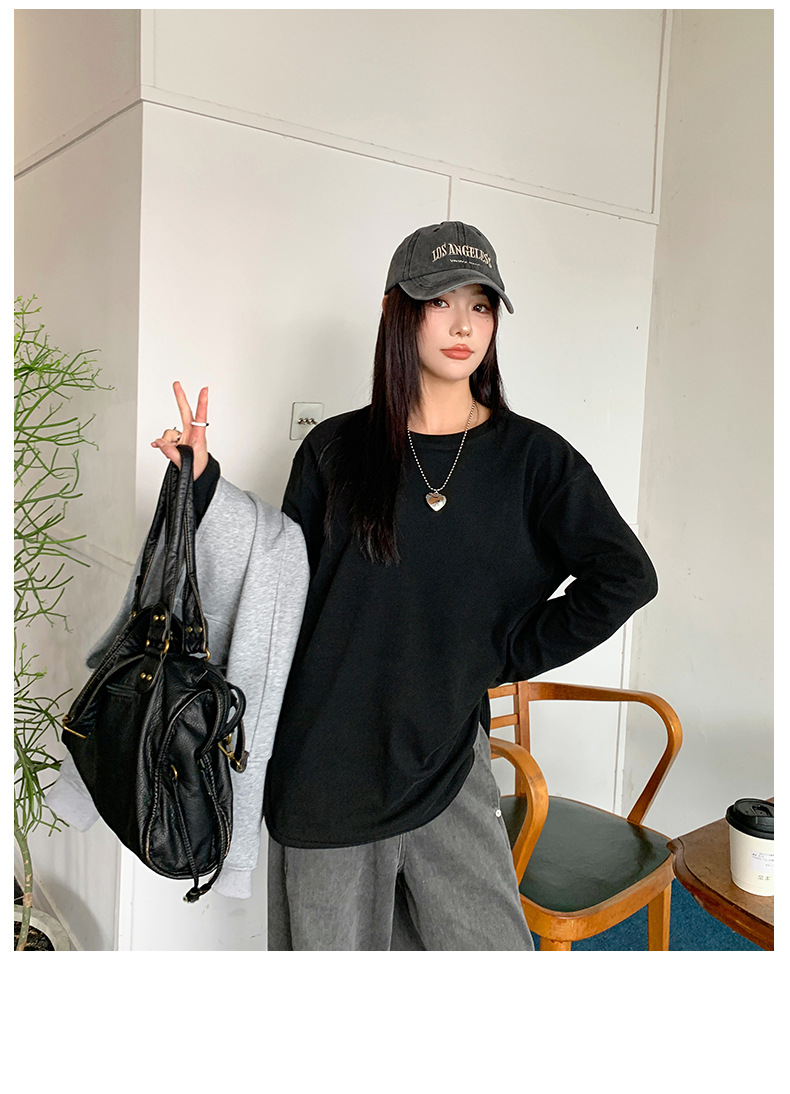 【叠穿百搭❗️弧形开叉打底T恤】显瘦遮肉,自带温柔滤镜,气质优雅!白色长袖女春秋简约宽松大码打底衫内搭纯色体恤上衣