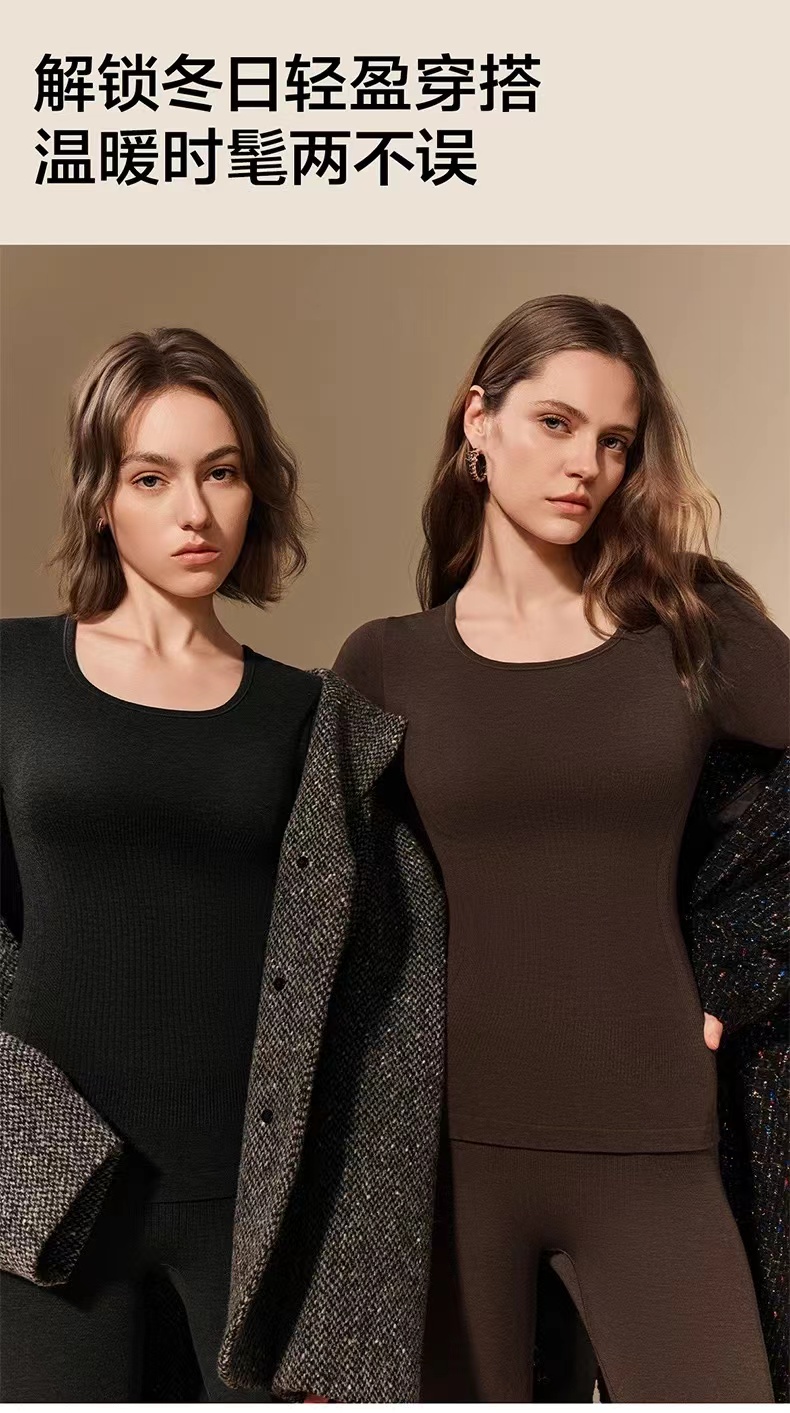 山茶花保暖套装,专为女性身形设计的修身剪裁暗藏心机:前片微收腹部,后片自然提臀,侧边巧妙收腰,穿上即刻勾勒腰臀曲线,搭配毛衣、大衣也无臃肿感,轻松穿出"薄款也藏肉"的视觉效果。高弹力面料经多次拉伸仍能恢复原状,从80斤到130斤都能适配,宽肩带设计更能悄悄遮副乳,单穿体面、内搭隐形,满足通勤、约会等多重场景需求。