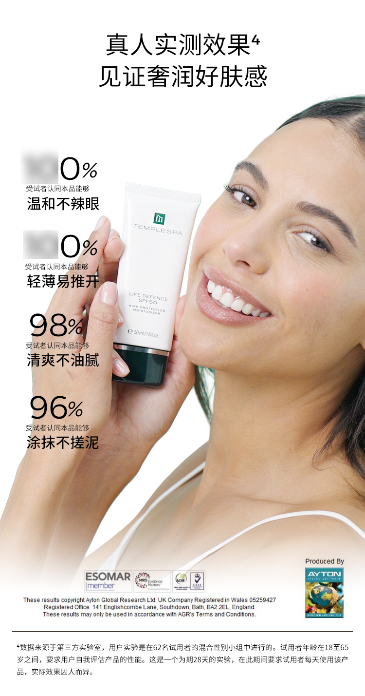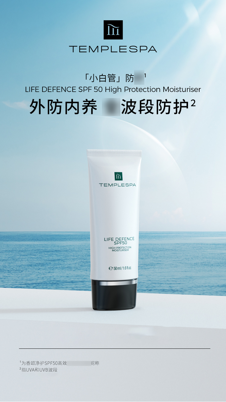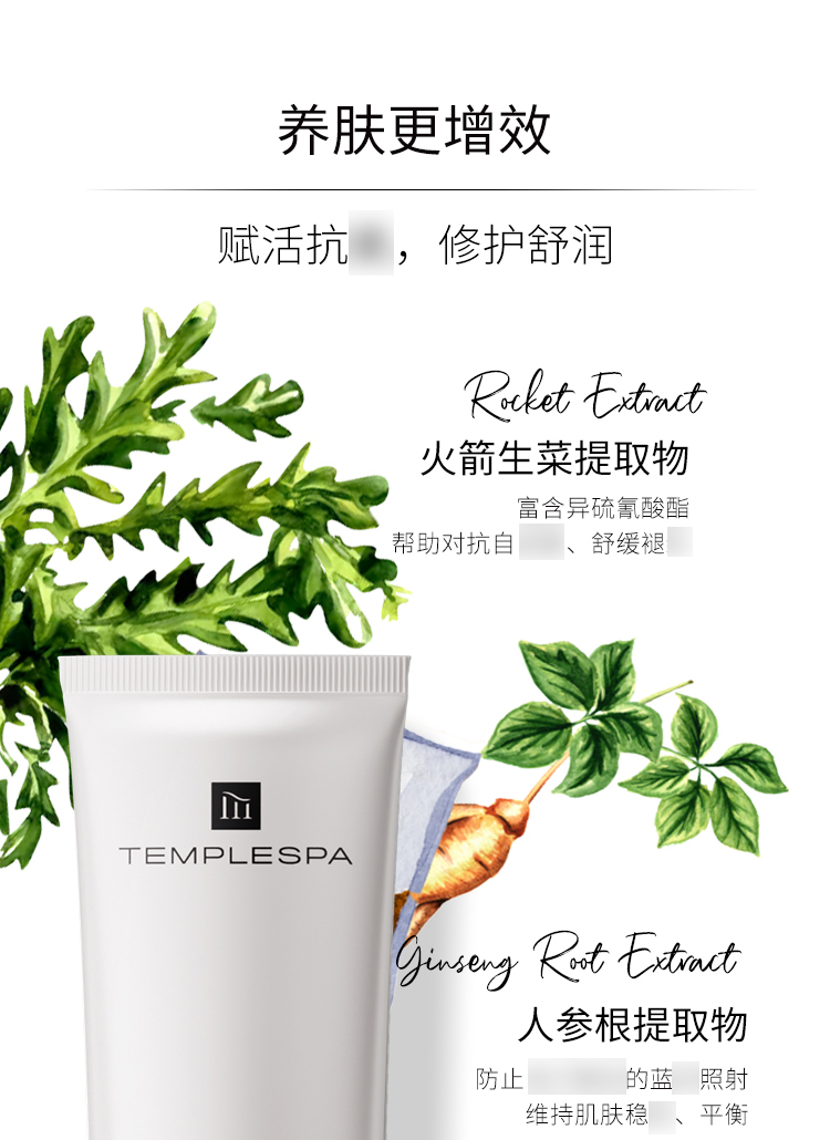 「加赠同品牌润唇膏5ml」英国TEMPLESPA ·香颂净护SPF50高效防晒保湿霜 小白管隔离UVA UVB多效防护霜|保税