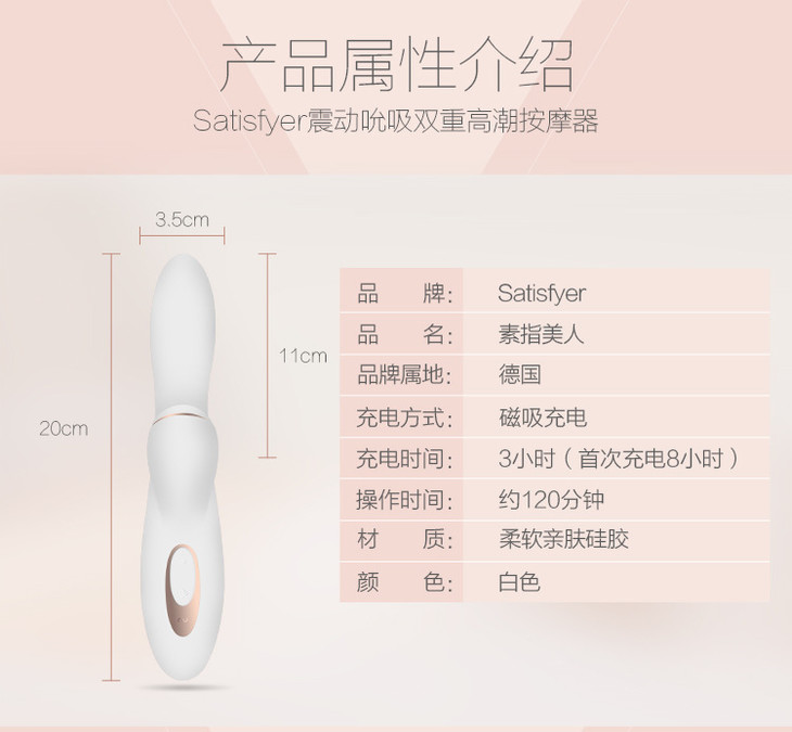 德国satisfyer素指美人脉冲震动棒女用性用品 震动棒shun吸器 女用乳房按摩舌舔高潮自慰器具 多频振动av按摩棒 情趣用品成人用品 素指美人 (脉冲shun吸+震动)