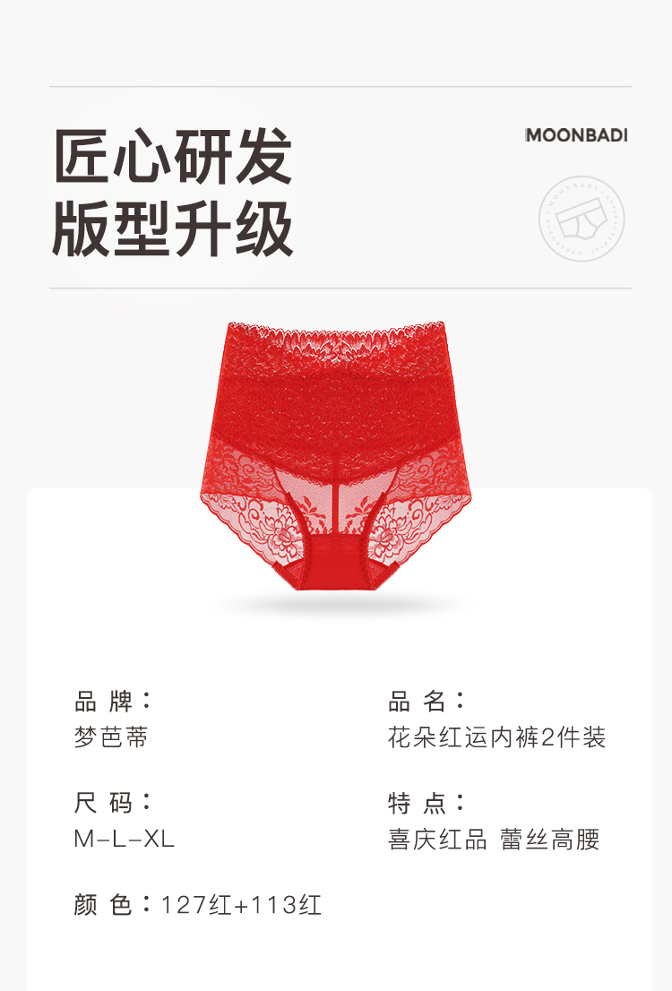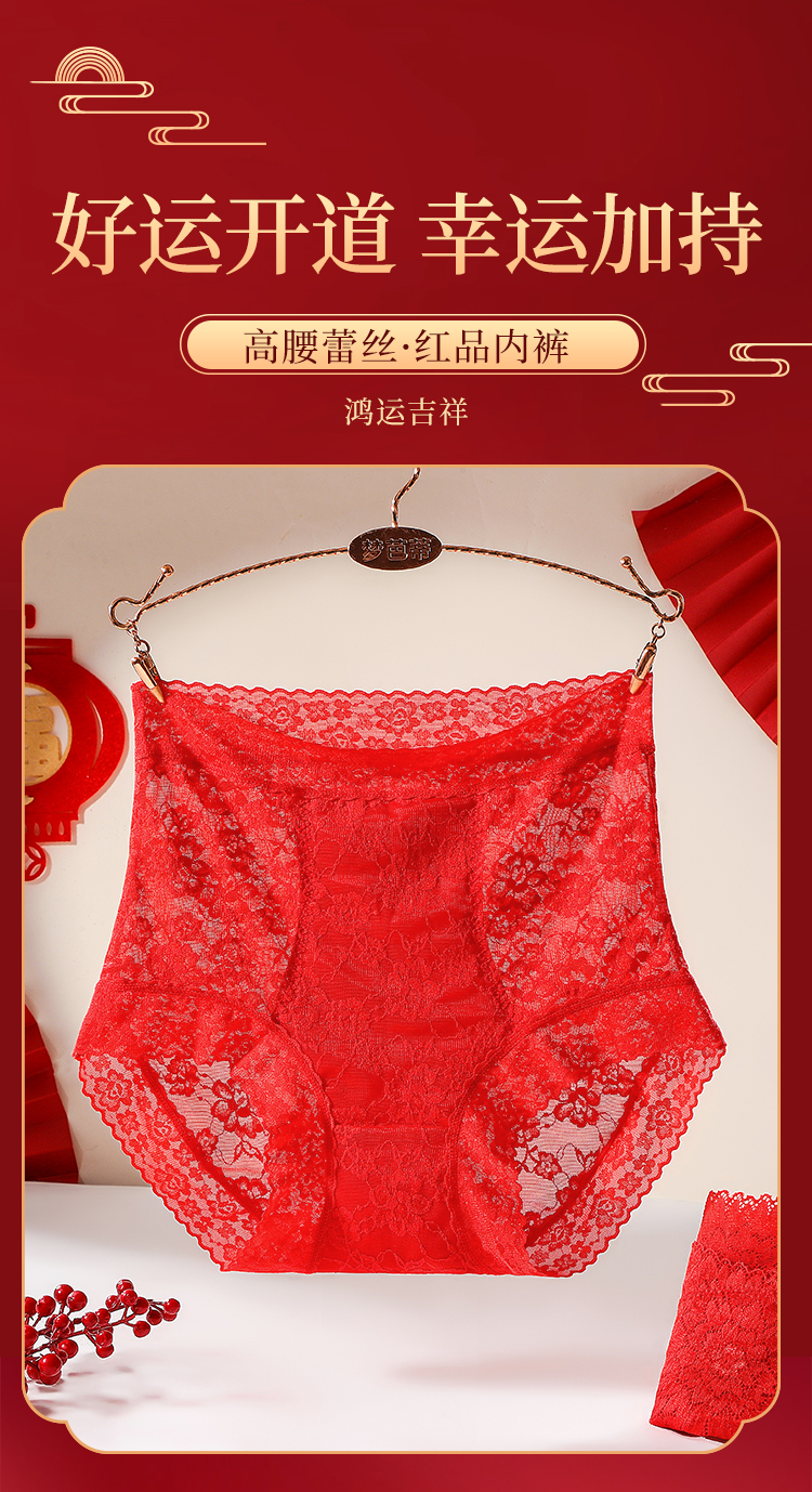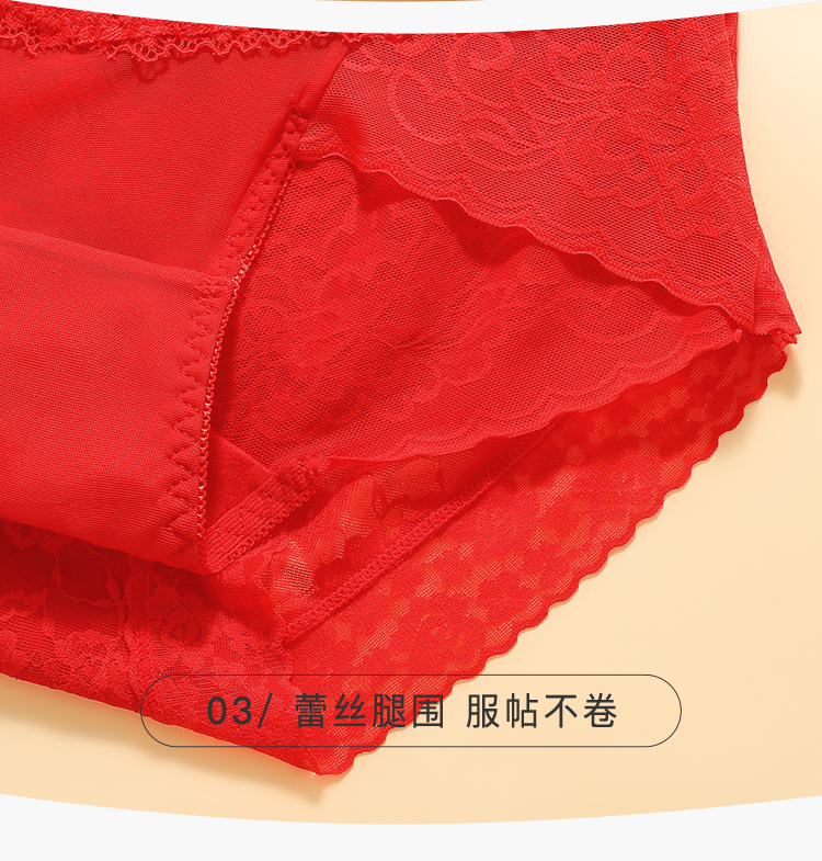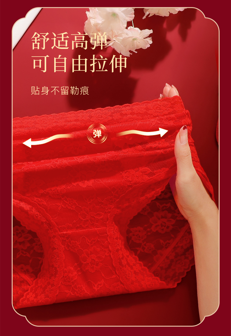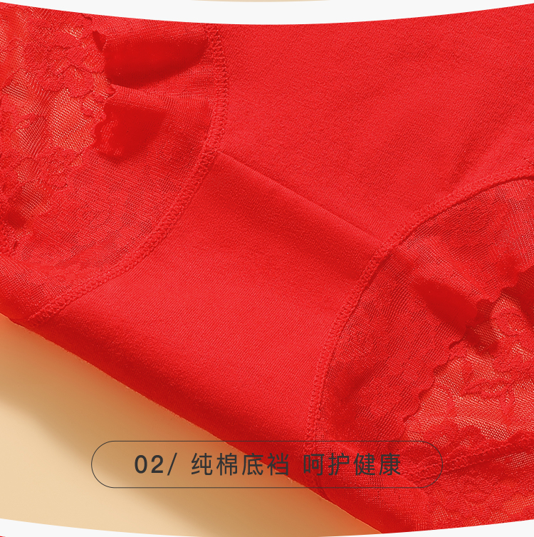 【2条装】本命年大红色新婚性感蕾丝高腰收腹内裤女100%棉裆花朵红运内裤