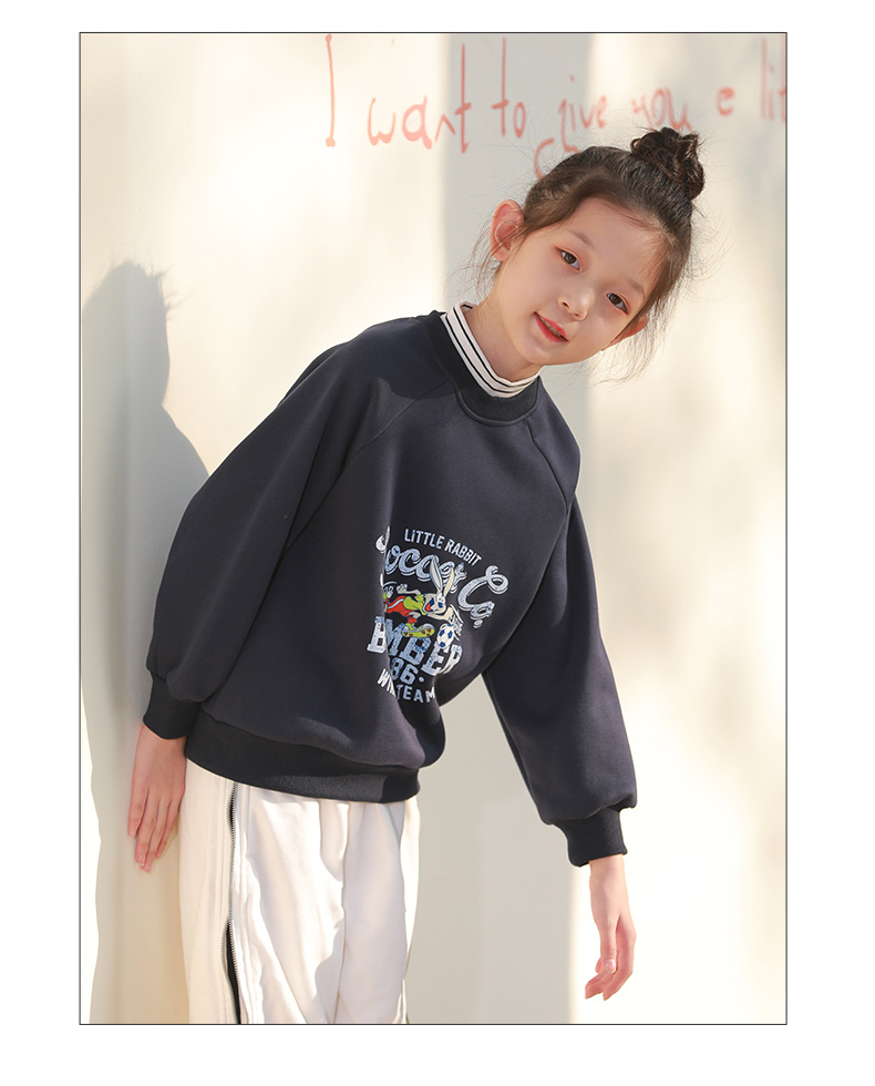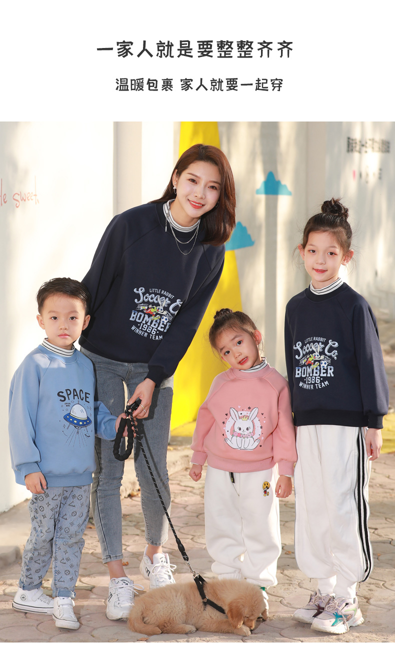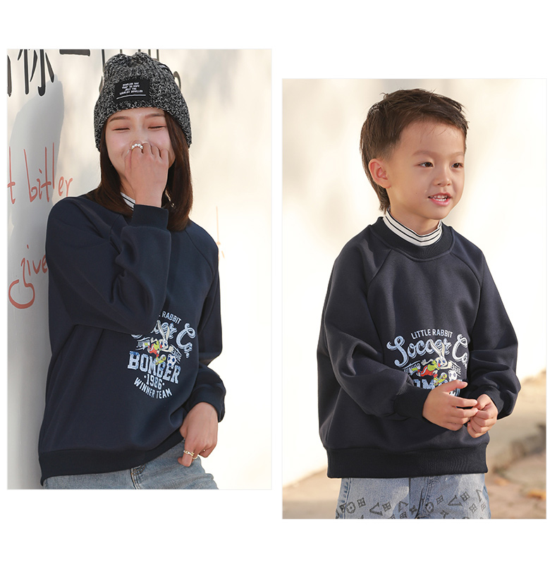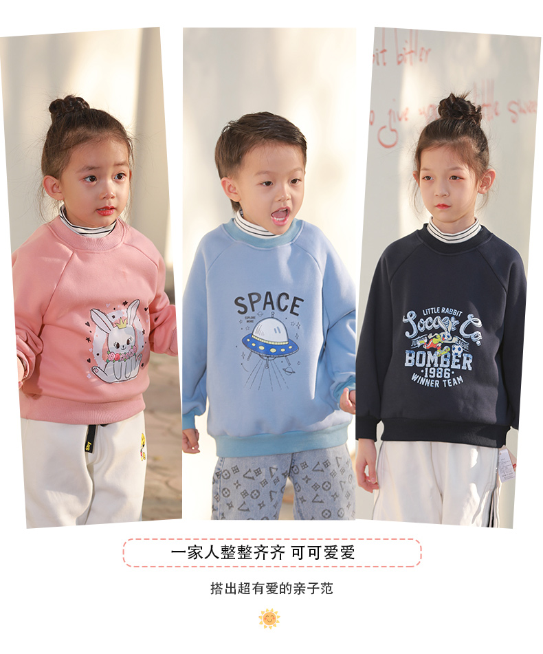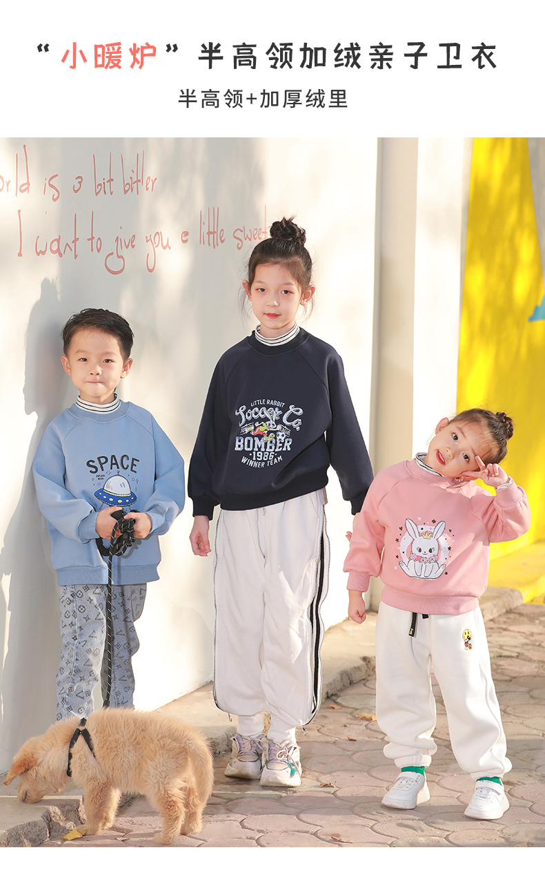 反季清仓!龙之涵 亲子款半高领印花加绒卫衣 中大童保暖上衣 精美印花 A类标准