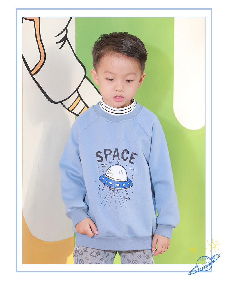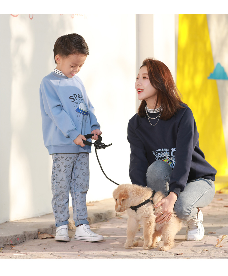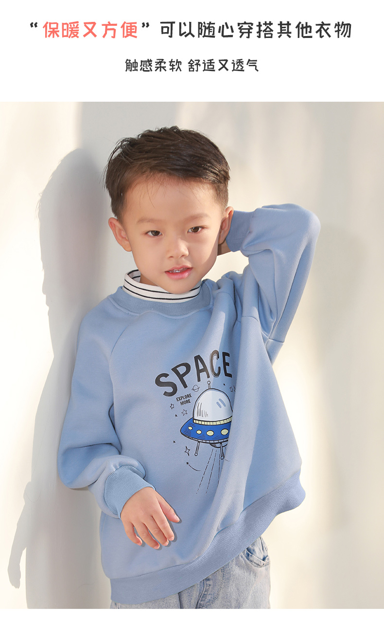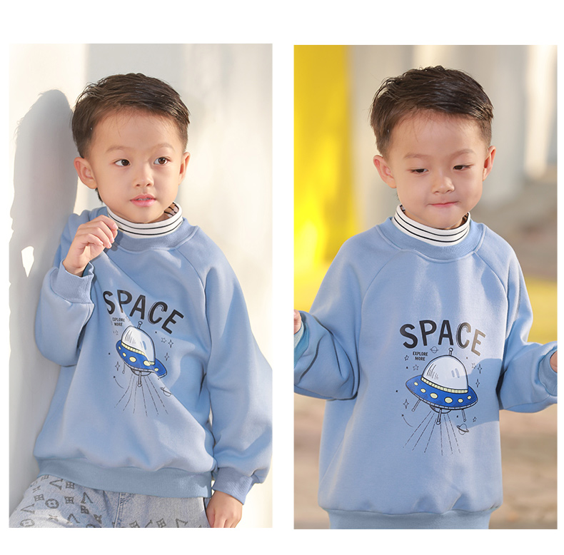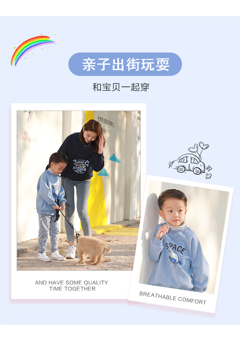 反季清仓!龙之涵 亲子款半高领印花加绒卫衣 中大童保暖上衣 精美印花 A类标准