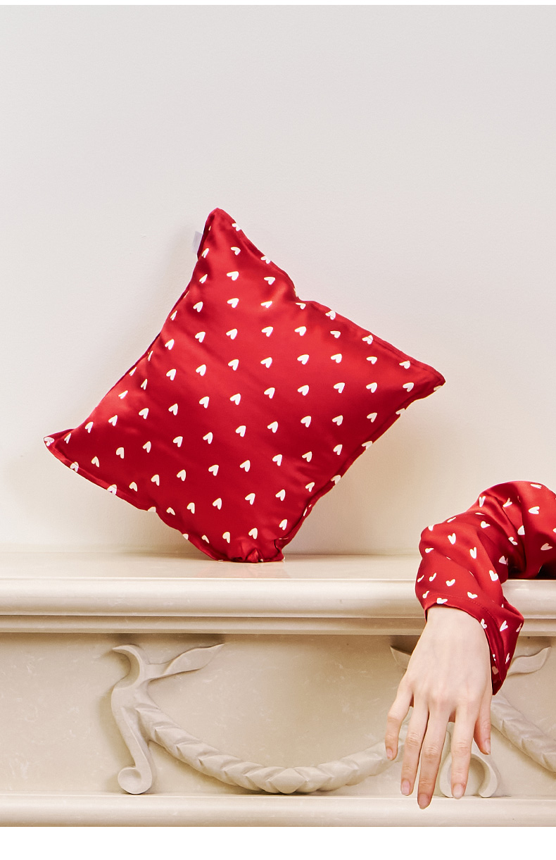 红运当头』桑罗爱心印花真丝多用途抱枕100%桑蚕丝可拆洗送礼首选