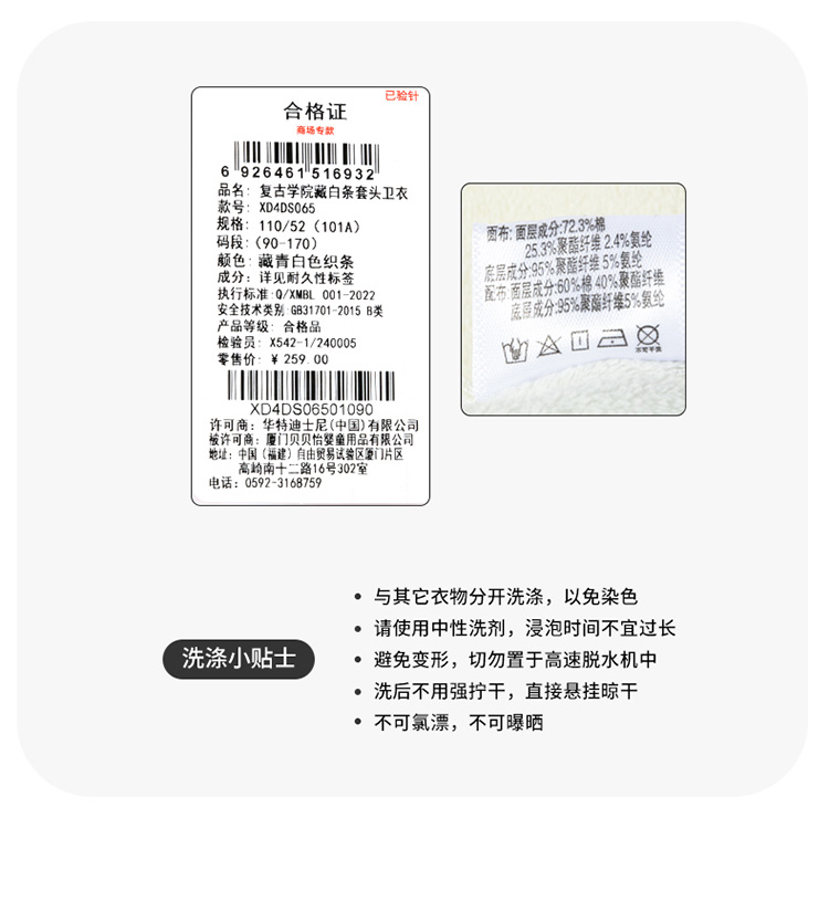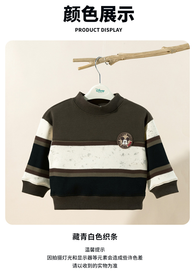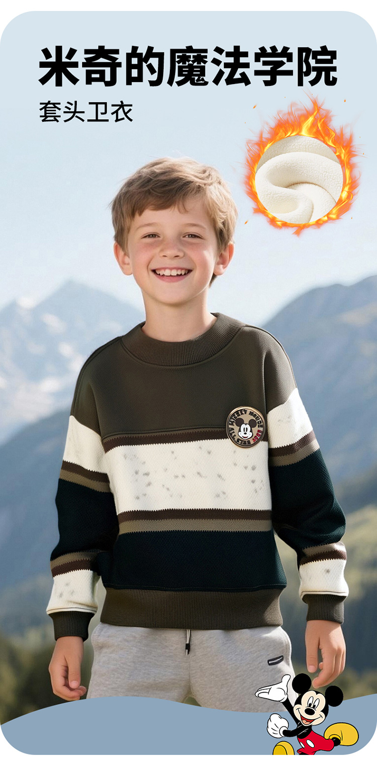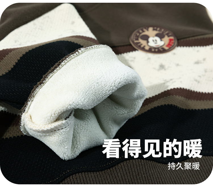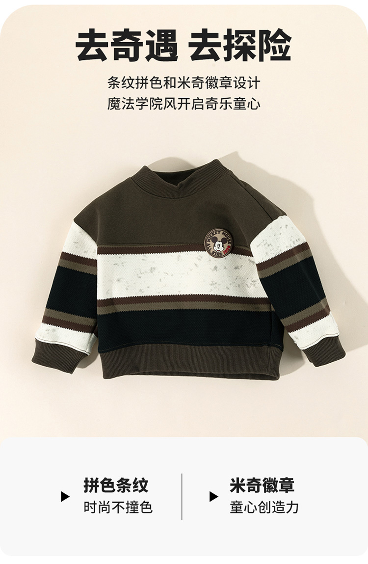 迪士尼25秋冬季新款条纹撞色卫衣男童上衣中大童加绒保暖休闲运动卫衣XD4DS065