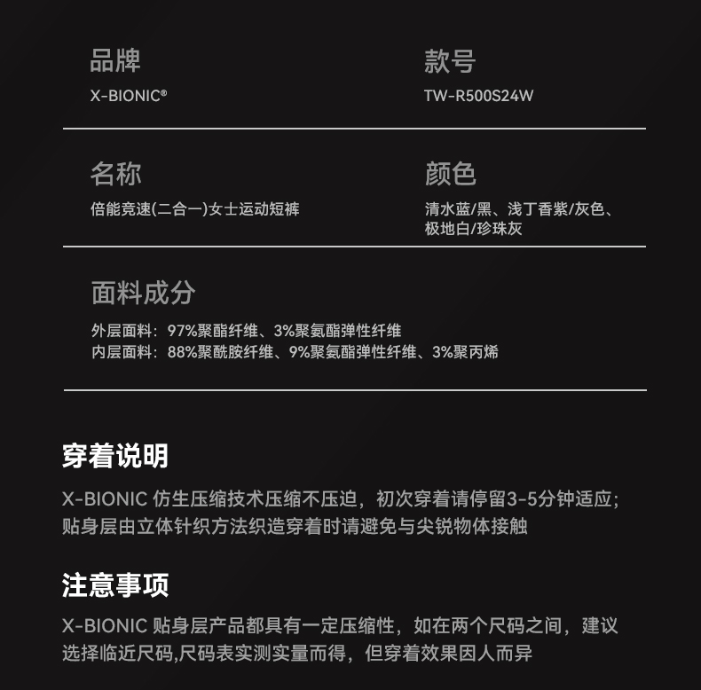 xbionic 倍能竞速女士短袖短裤 专业越野竞速路跑上衣