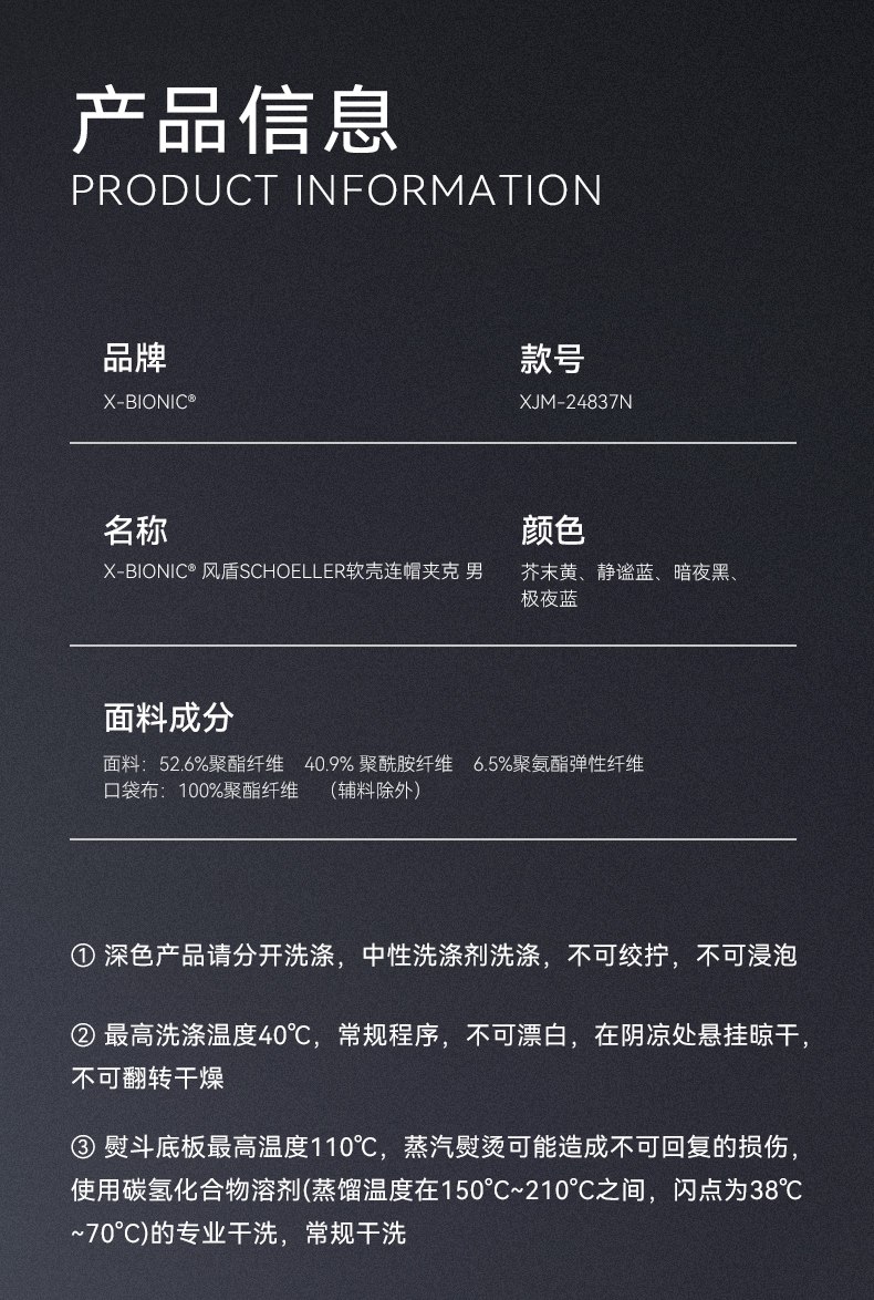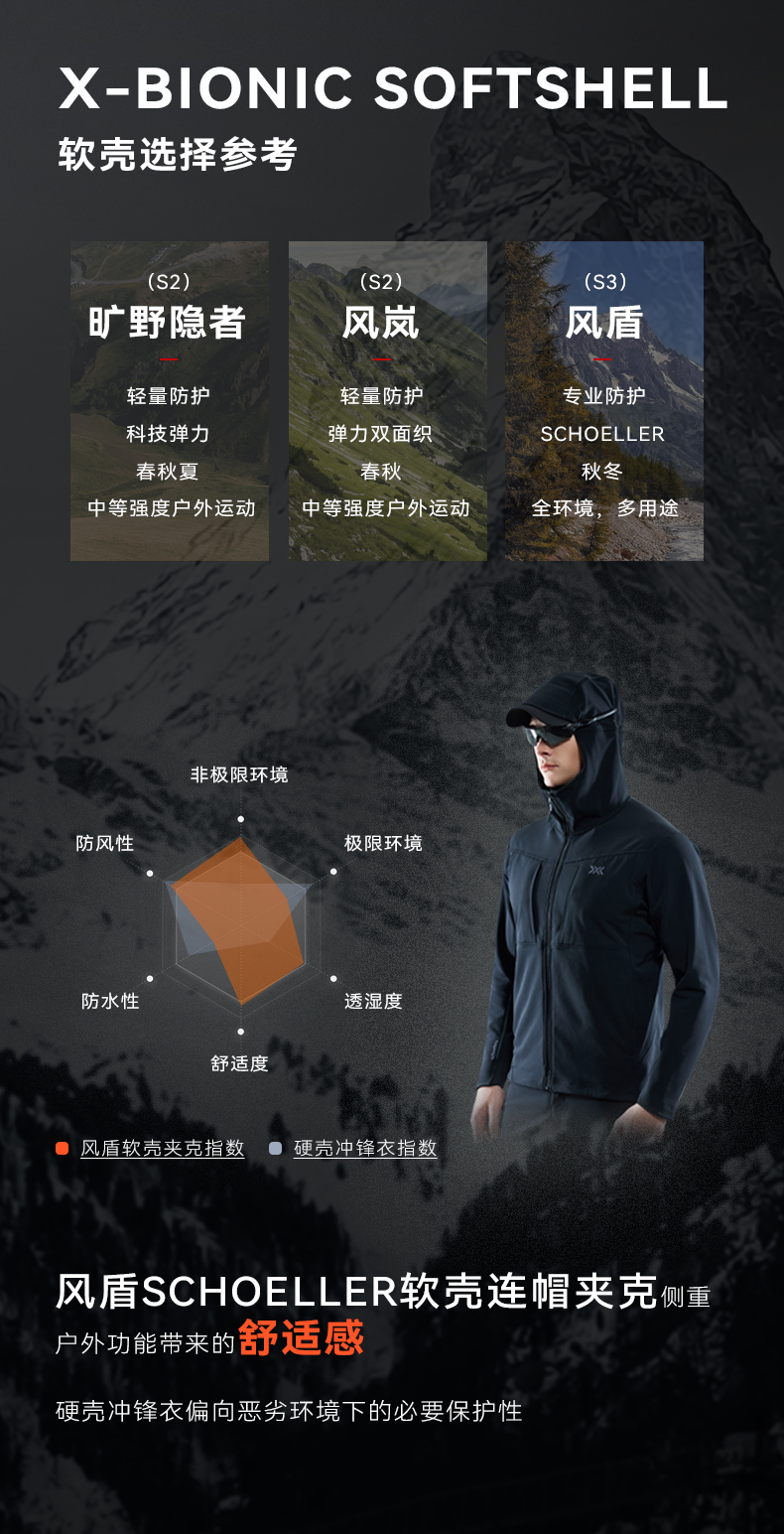 X-BIONIC风盾Schoeller软壳连帽夹克男(S3) 秋冬防风耐磨软壳衣 24837N