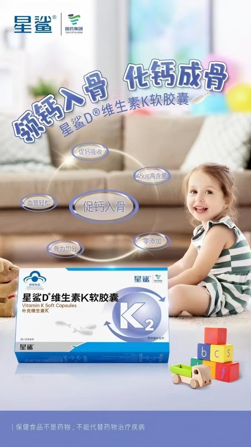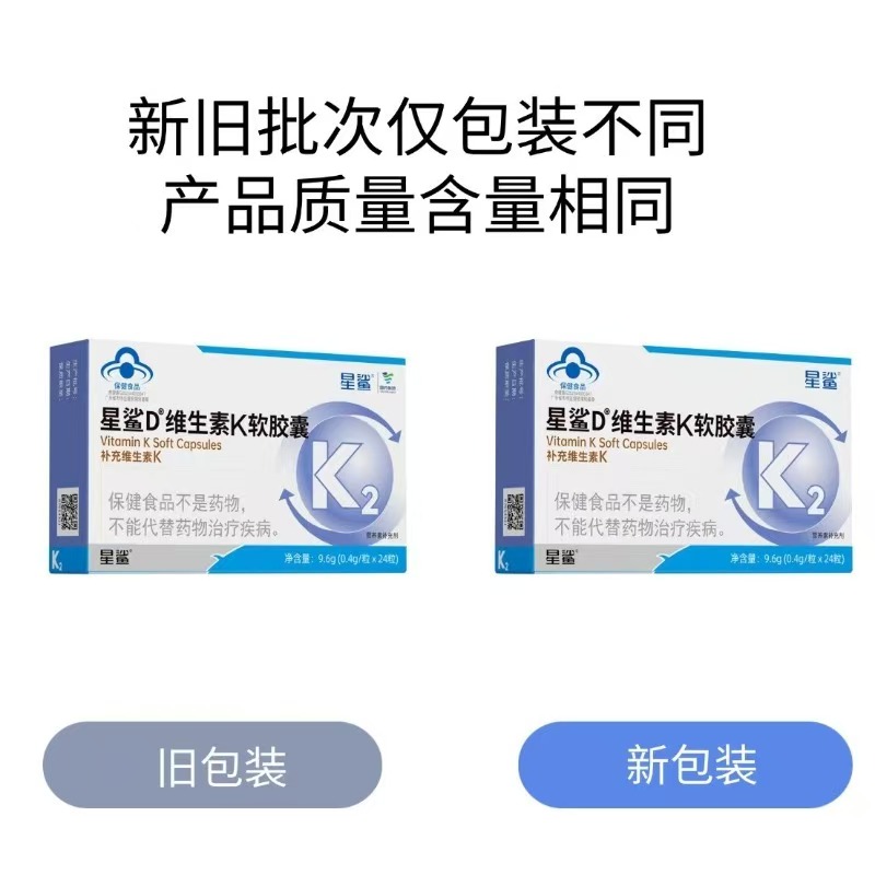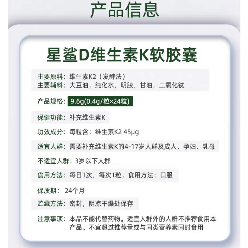 星鲨D维生素K2软胶囊发酵法4岁儿童青少年成人补K胶囊24粒/盒