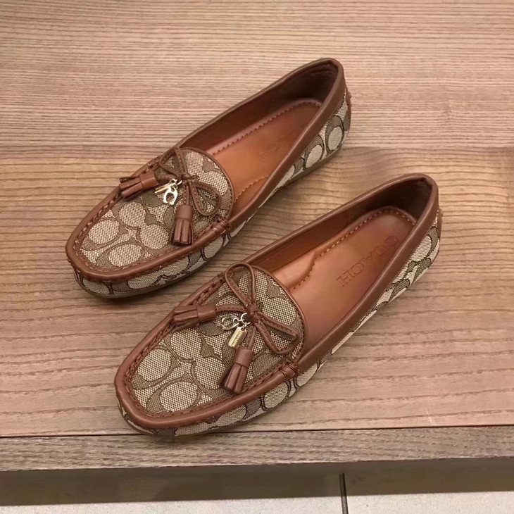 🌹899包邮!新款 Coach新款女士帆布logo豆豆鞋,真皮包边,真皮蝴蝶结吊坠设计。上脚舒适!