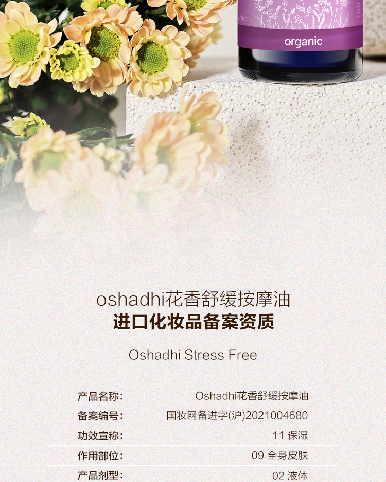 oshadhi德国O家花香舒缓按摩油 身体按摩油 肌肤保湿 精华油 以油养肤
