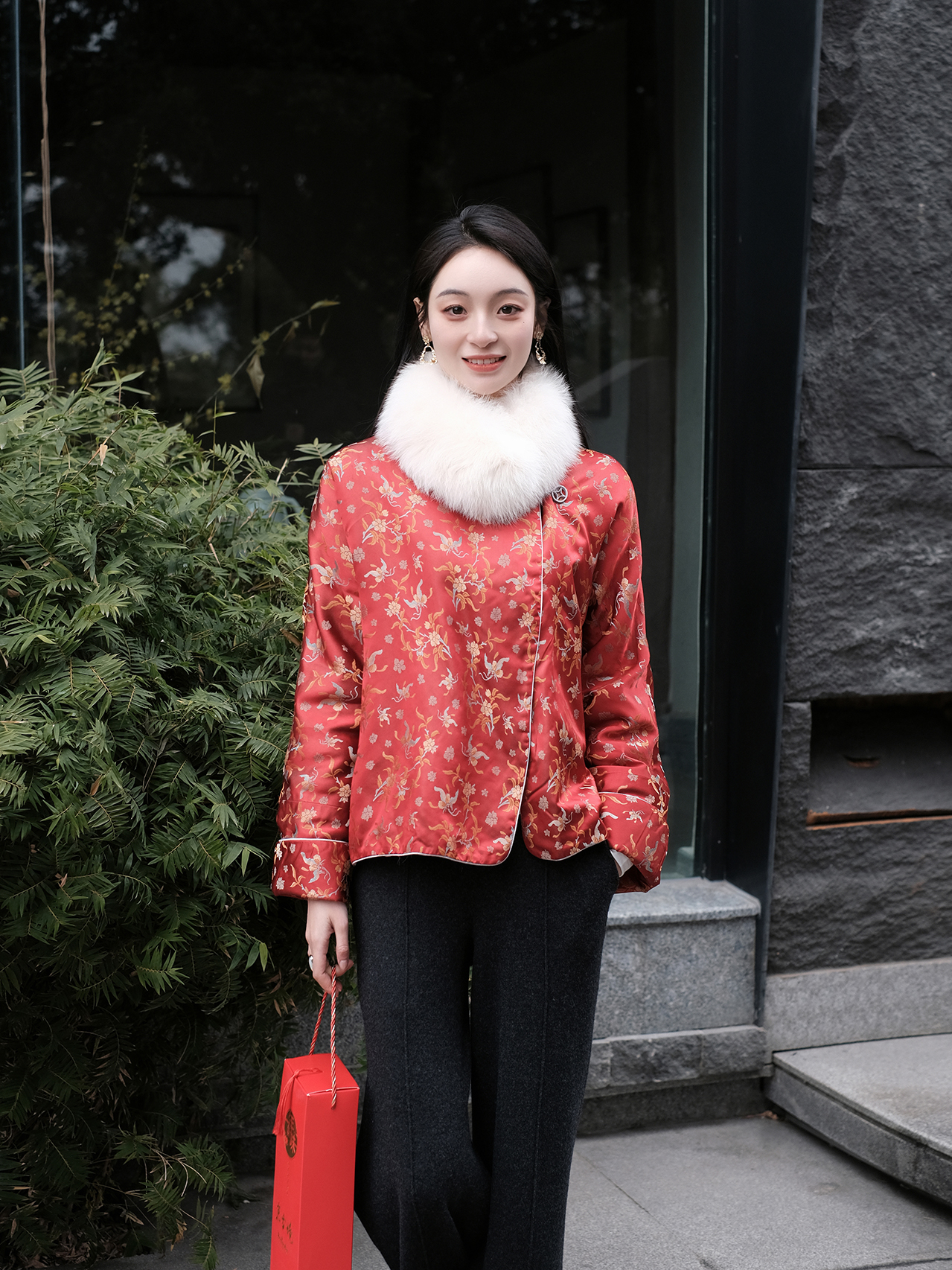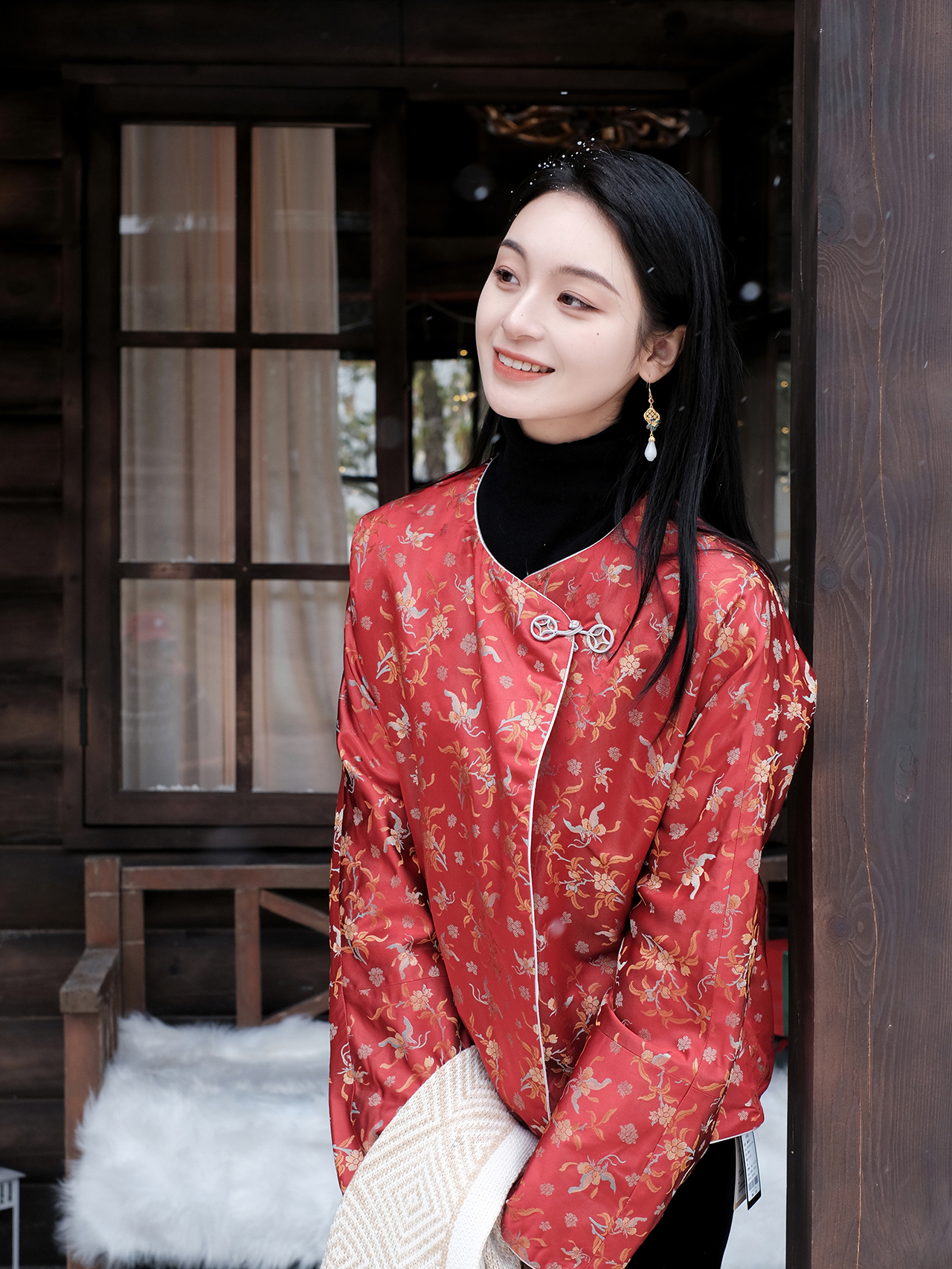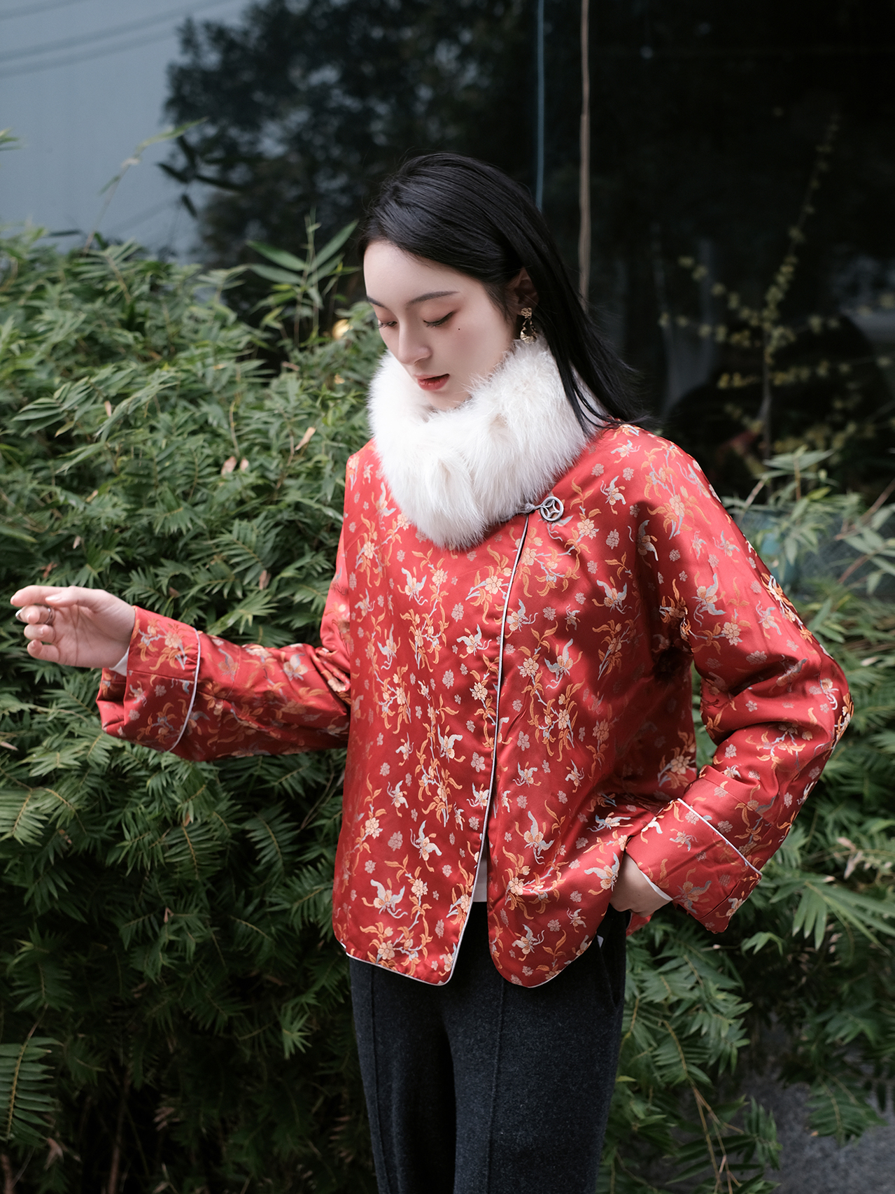 盛唐牡丹 |宋锦散花纹夹棉外套