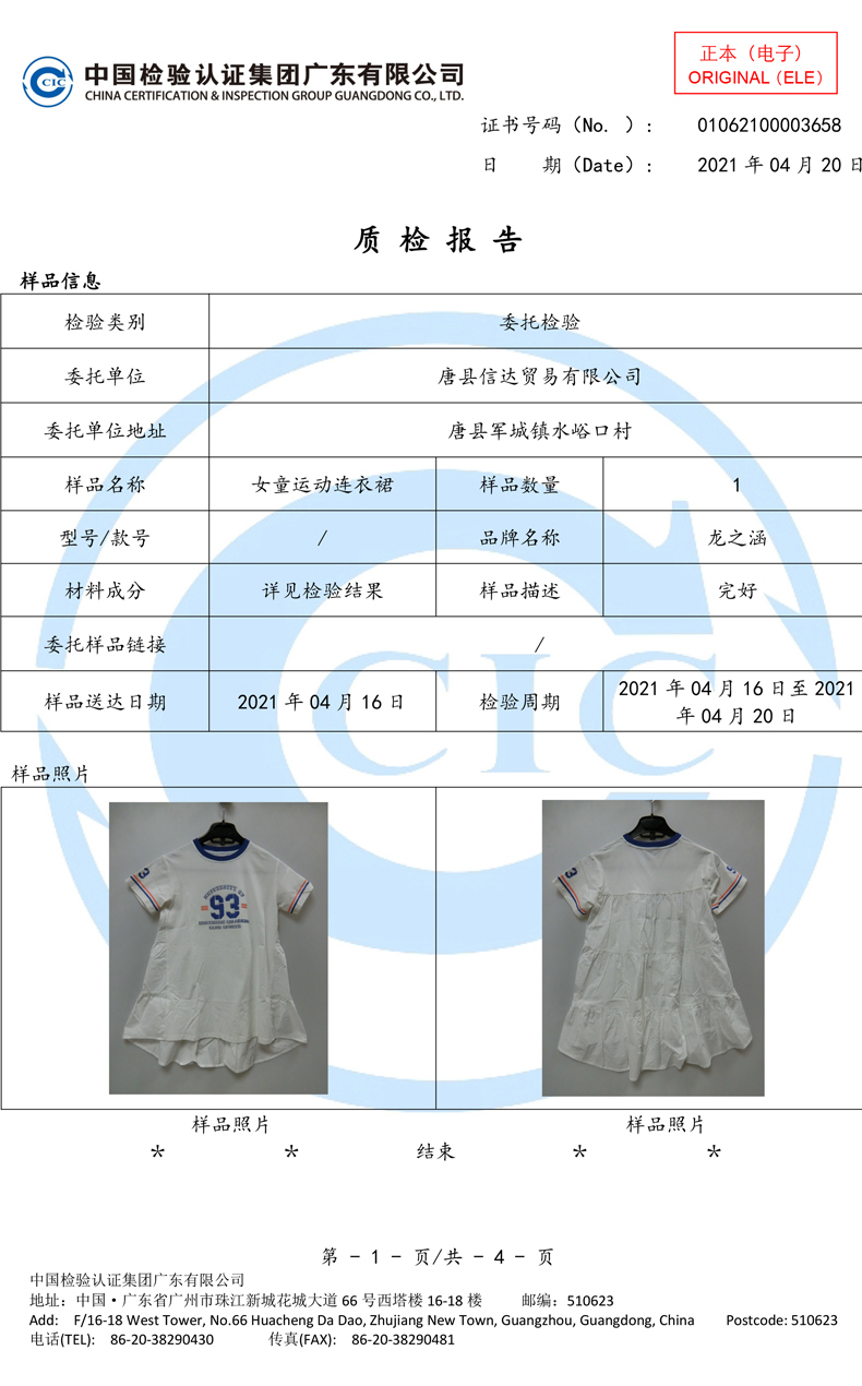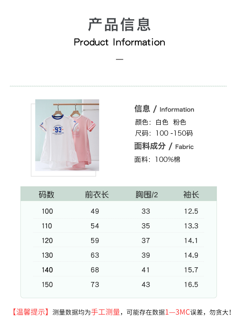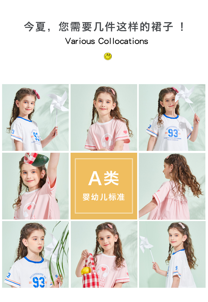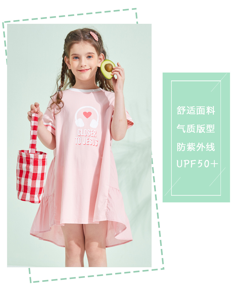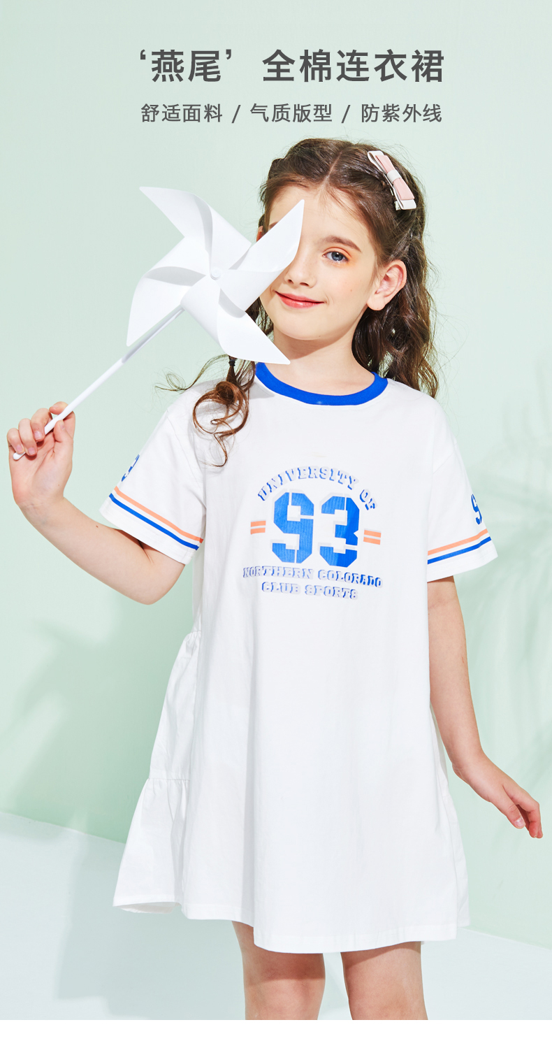 【特价清仓】龙之涵夏季 女童运动风短袖连衣裙 拼接款连衣裙 婴幼儿A类标准 防晒防紫外线 UPF50+