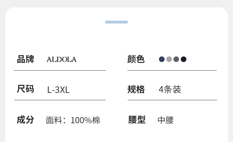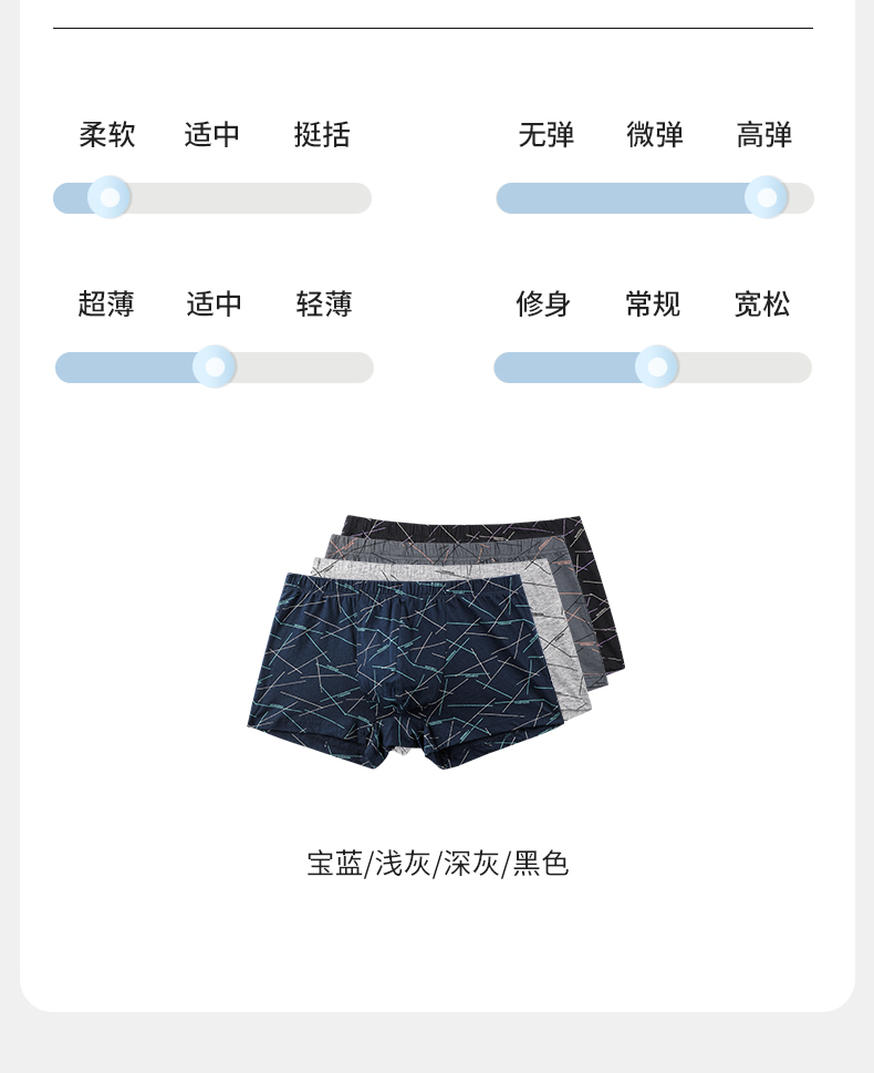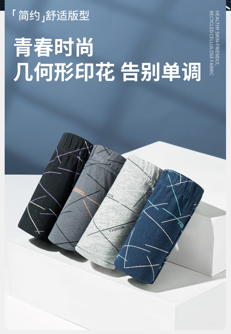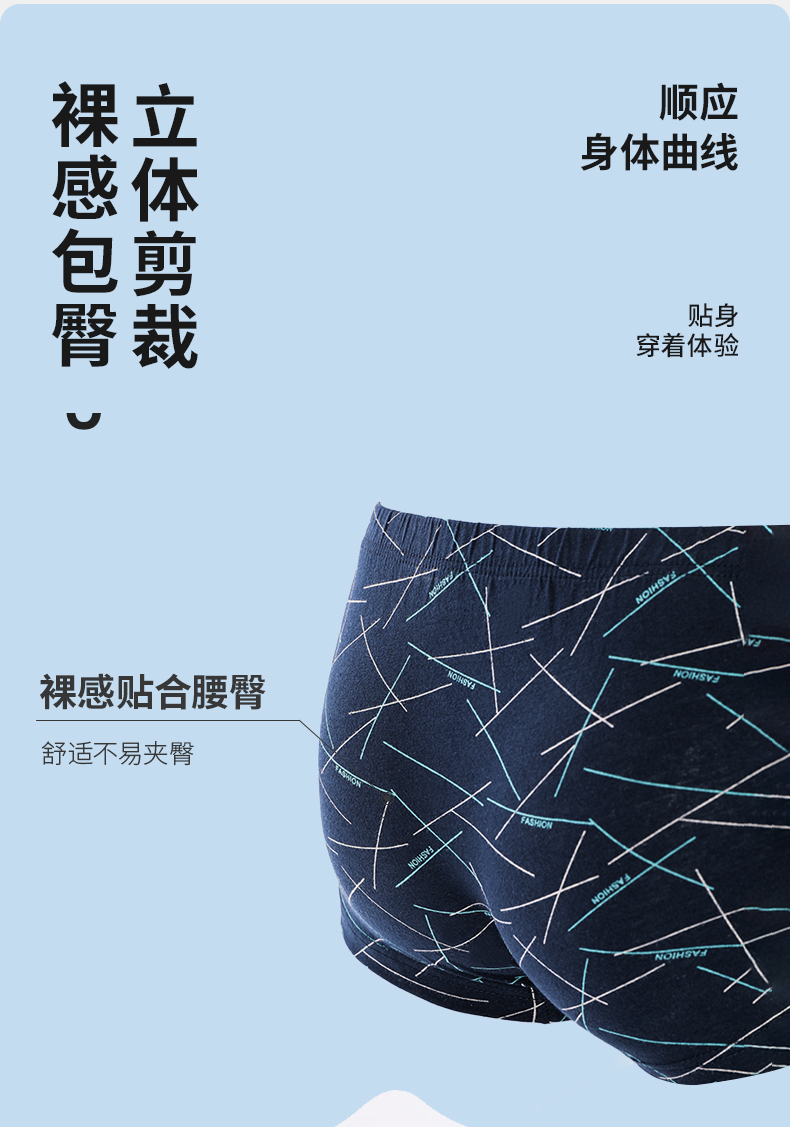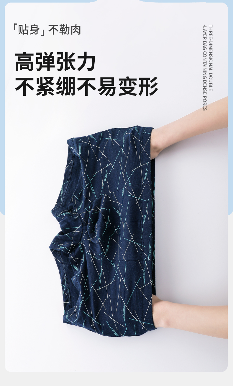 雅黛丽男士内裤纯棉四角裤男生中腰高弹舒适透气平角裤男大码短裤